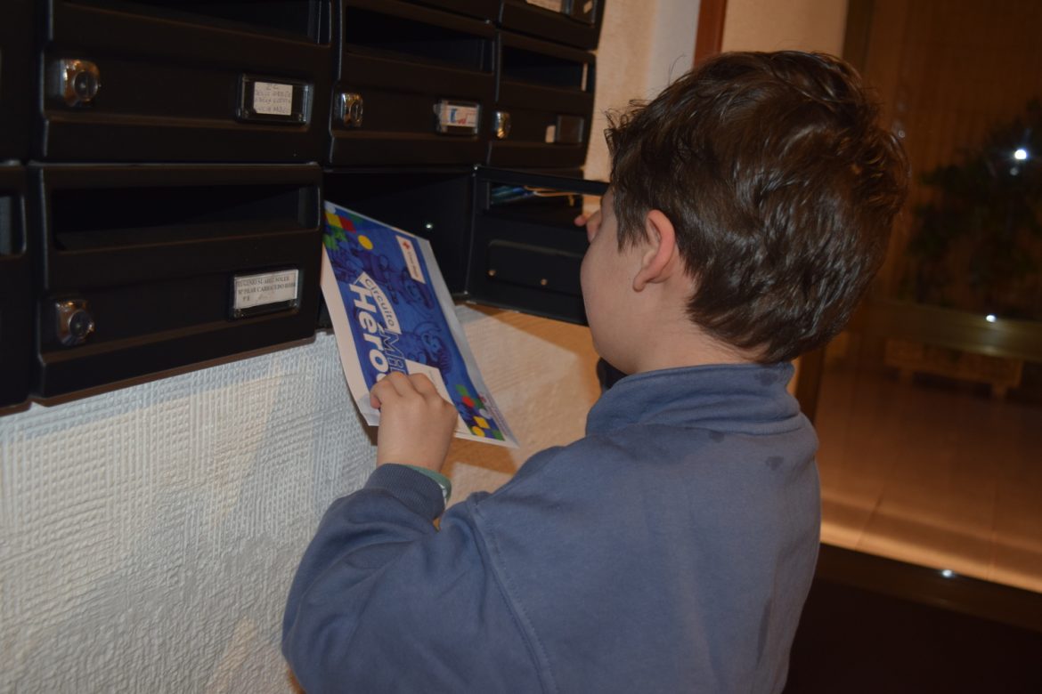 Los sobres utilizados para enviar la invitación han sido decorados por las niñas y los niños de los programas de refuerzo socioeducativo con pequeños corazones, como muestra de agradecimiento hacia las y los socios menores por su apoyo a la labor realizada por la organización humanitaria.