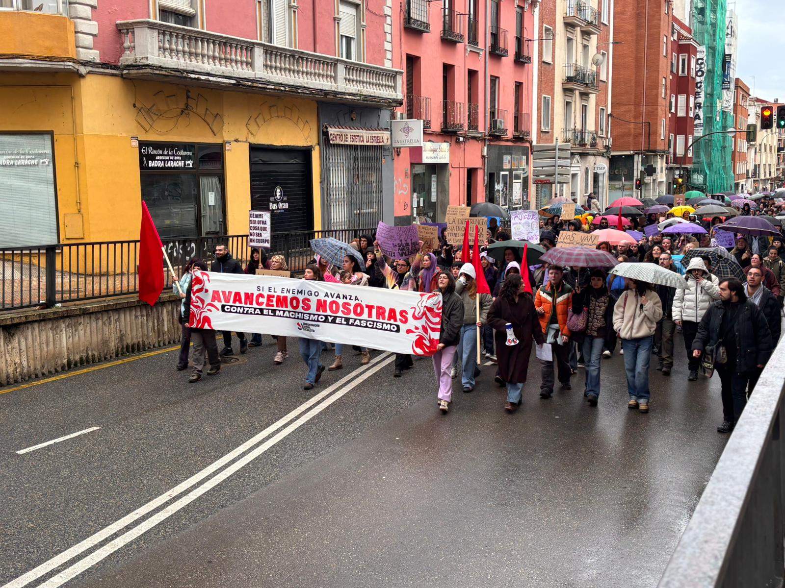 La movilización se ha convocado este año con el lema ‘Si el enemigo avanza, avancemos nosotras’ y en esa línea han ido las principales proclamas de las manifestantes, que han lanzado por las calles proclamas antifascistas para alertar de la amenaza de unas ideas de extrema derecha que, entre otras consecuencias, dan alas a los discursos machistas.