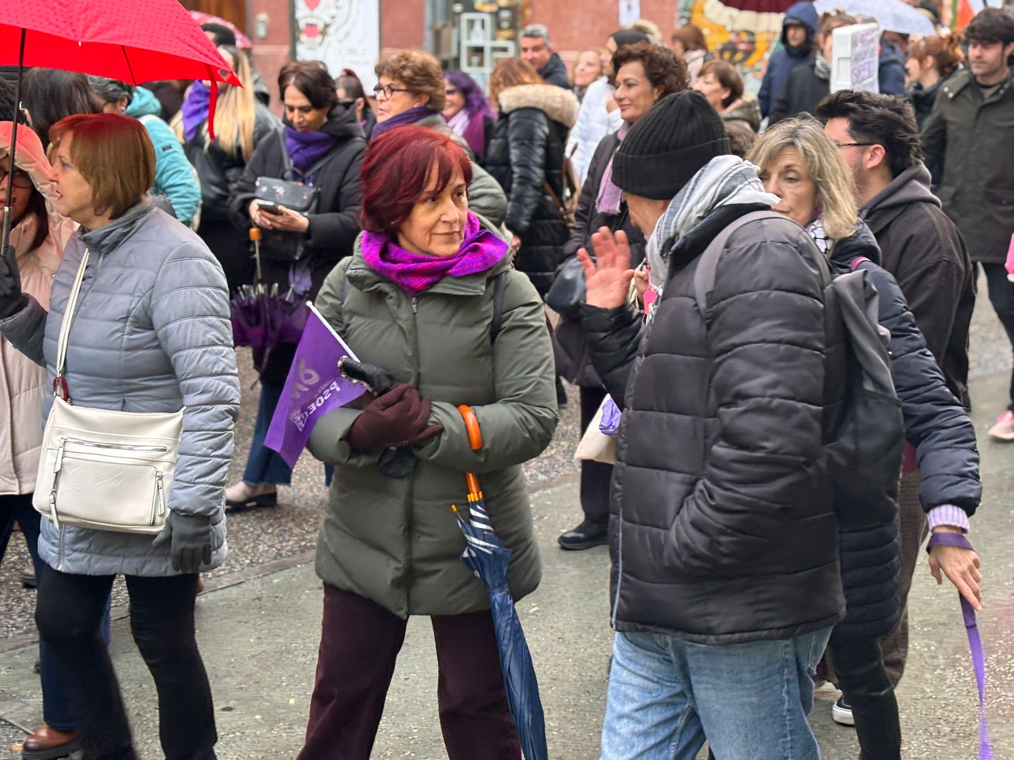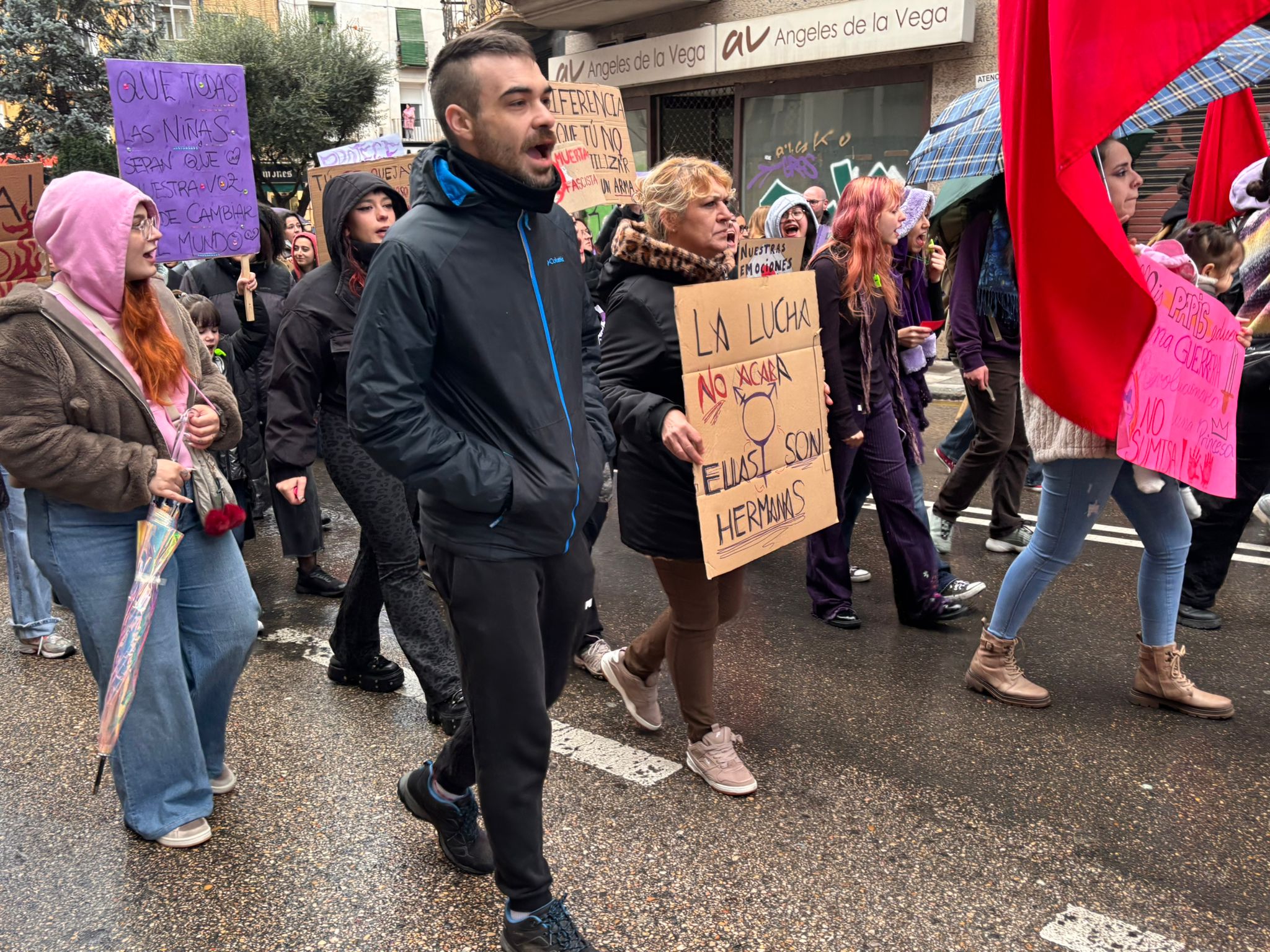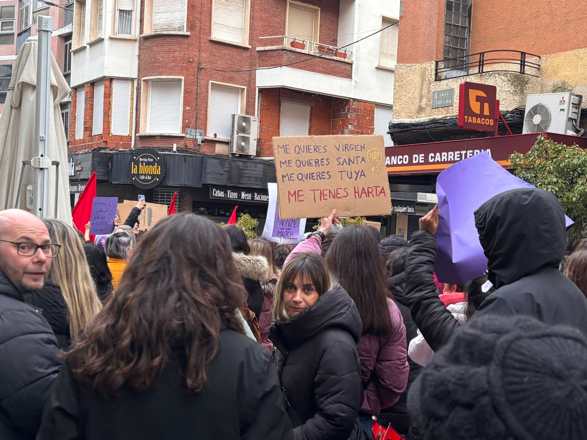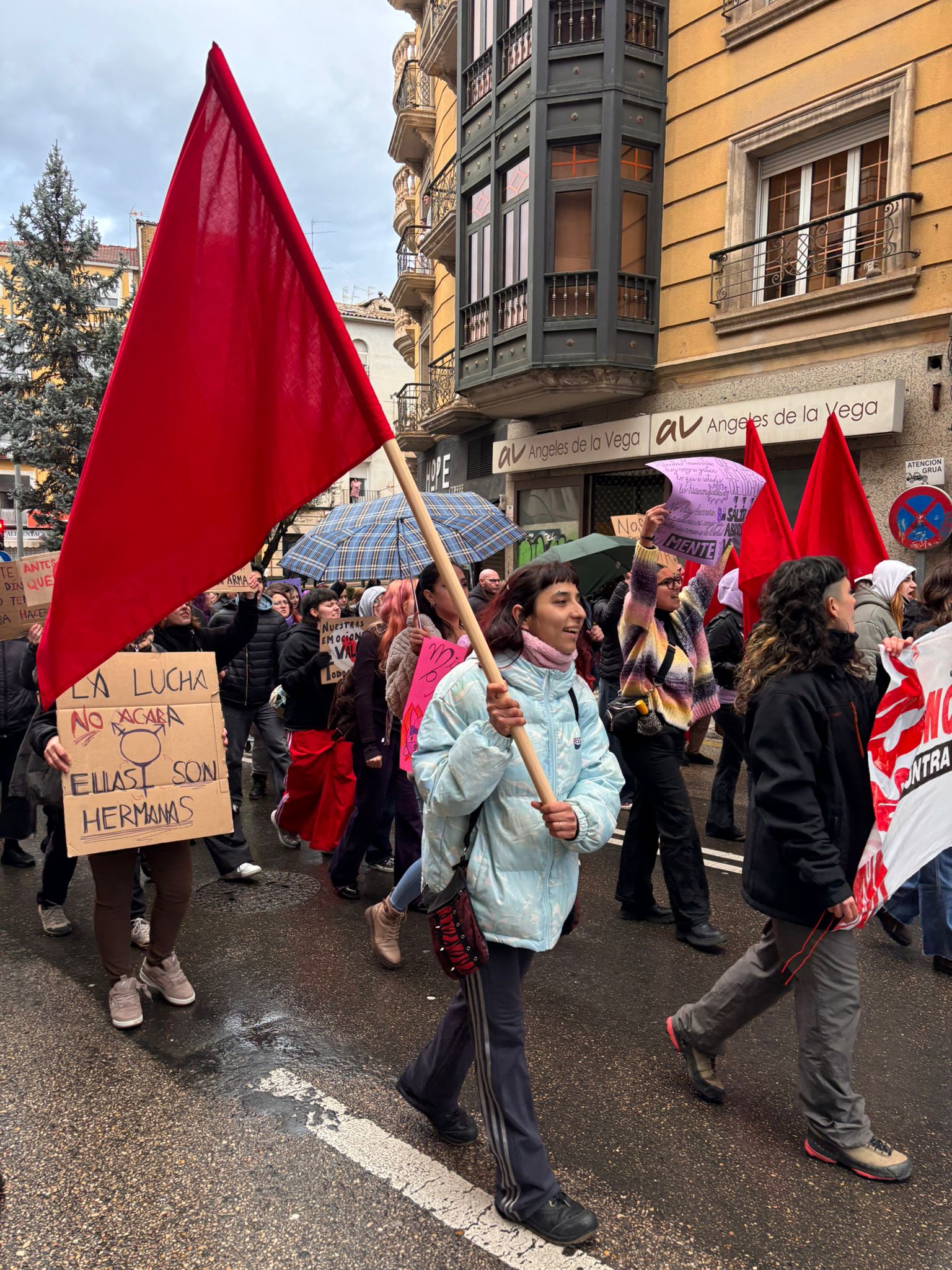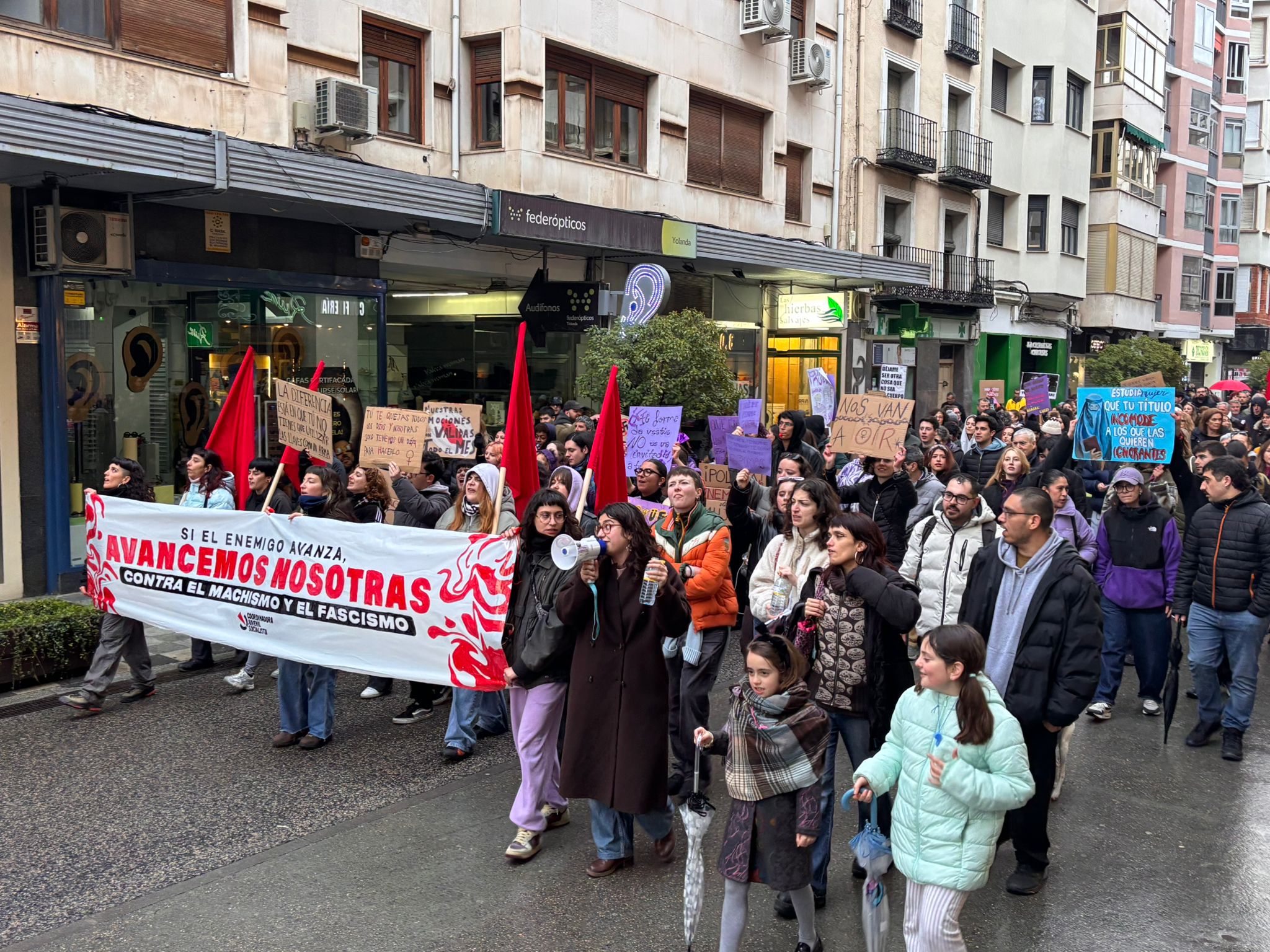 En esta marcha, los participantes en la manifestación han señalado a Vox como una de las formaciones que están contribuyendo al auge del fascismo y del antifeminismo. Al pasar delante de su sede, los asistentes dedicaron una sonora pitada y mostraron tarjetas rojas en dirección a su fachada al partido liderado a nivel nacional por Santiago Abascal, que este año no instaló mesa informativa en Carretería como hizo el 8 de marzo del año pasado.