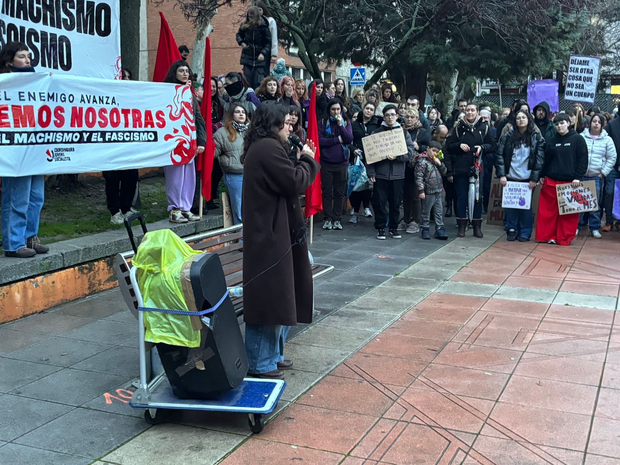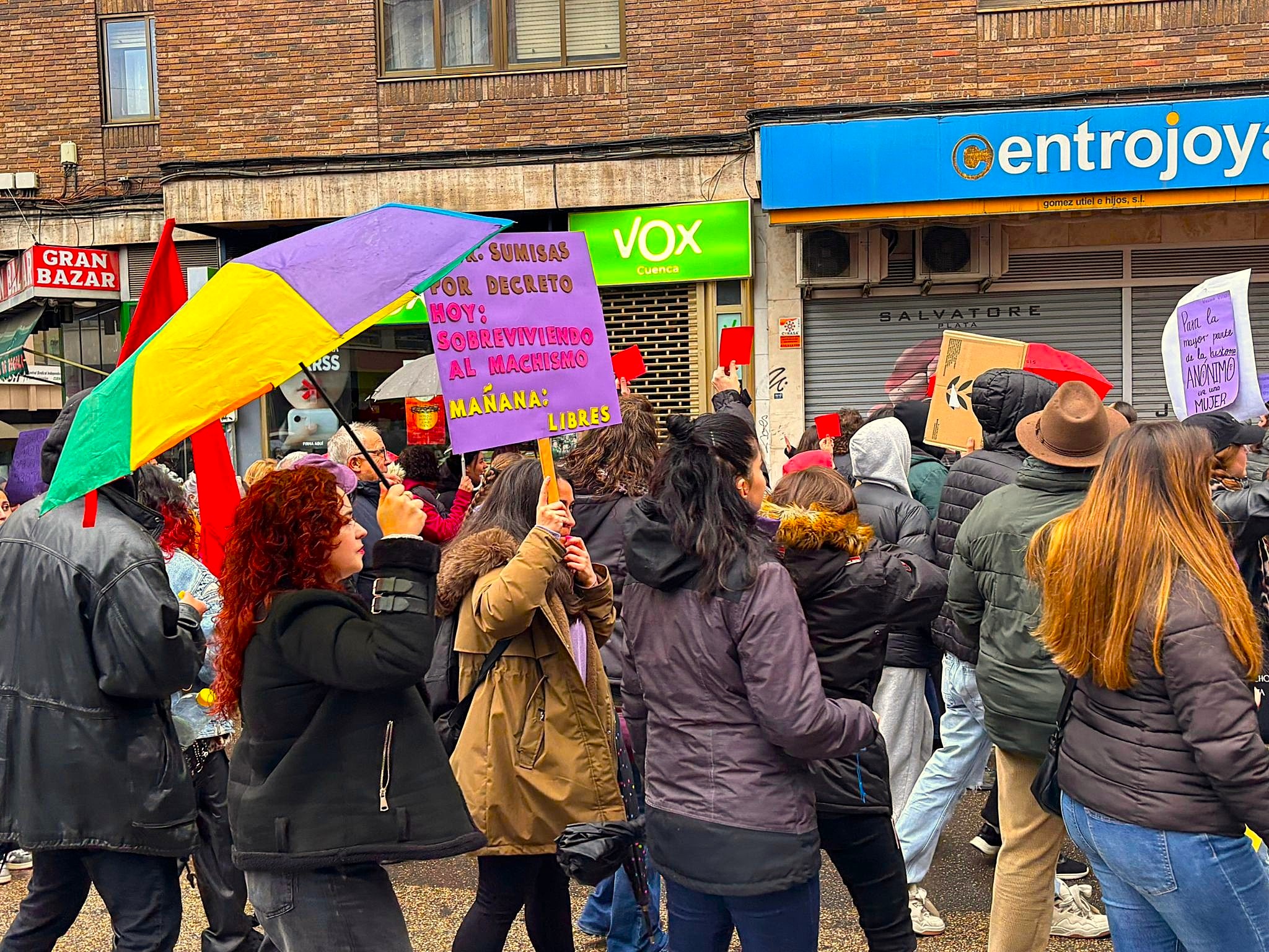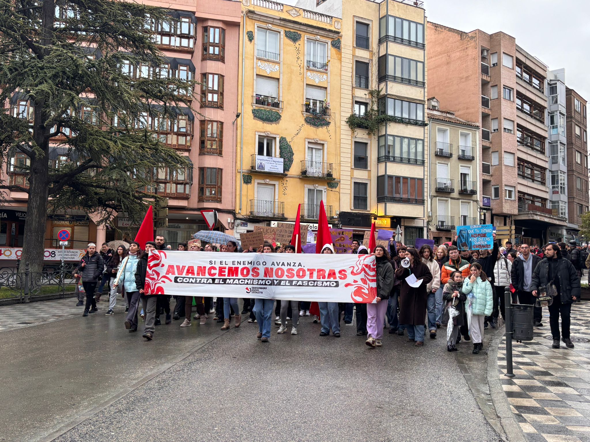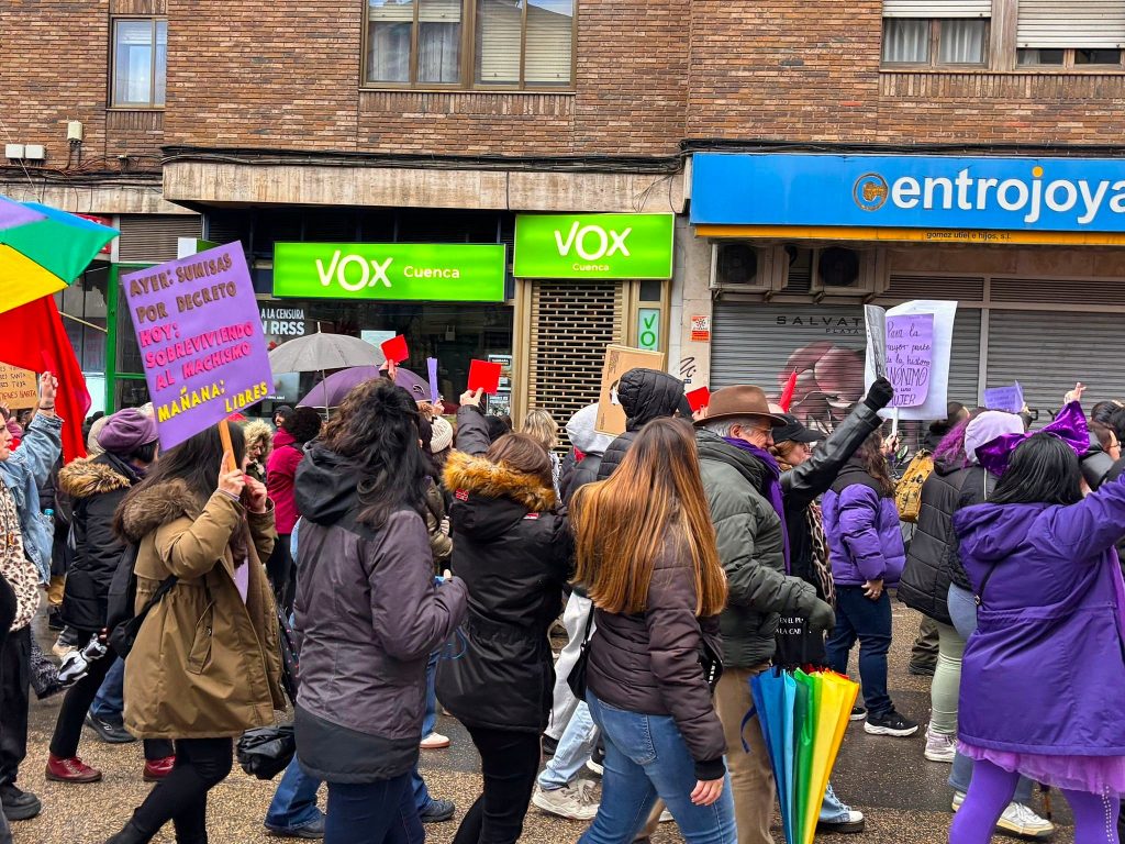 Representantes de formaciones como el PSOE e Izquierda Unida se sumaron a esta movilización impulsada por colectivos como la Coordinadora Juvenil Socialista que transcurrió, tras un recorrido sin incidentes en la Plaza de España, donde se leyó un manifiesto en el que se volvió a alertar del peligro de la normalización de los discursos de extrema derecha y se señalaron otras amenazas para la mujer, como la desigualdad salarial o la imposibilidad de ejercer en Cuenca, de una manera real, el derecho al aborto.