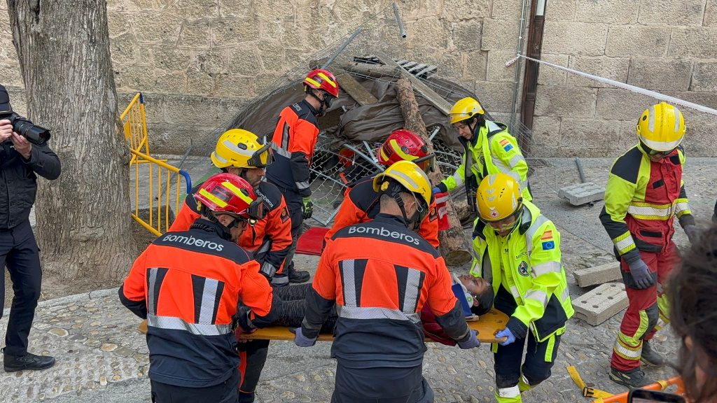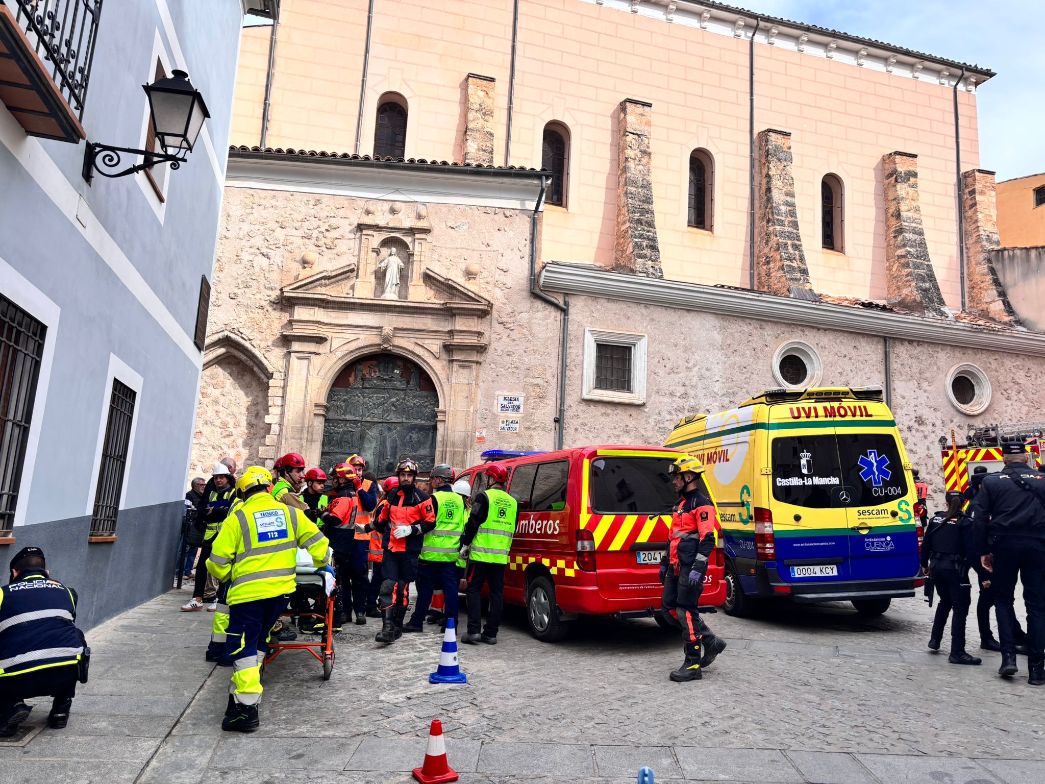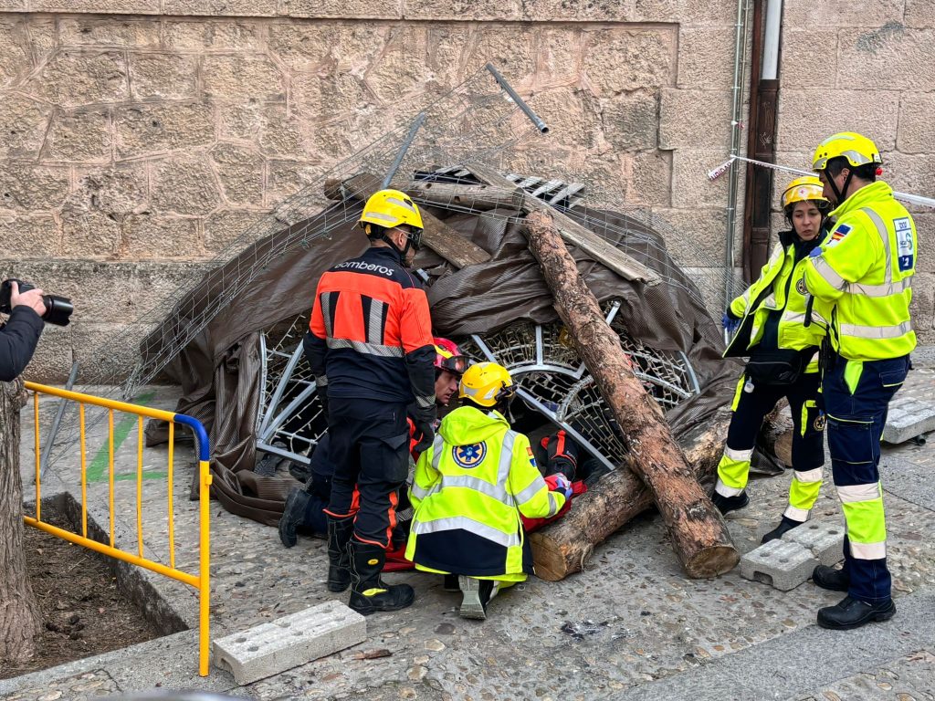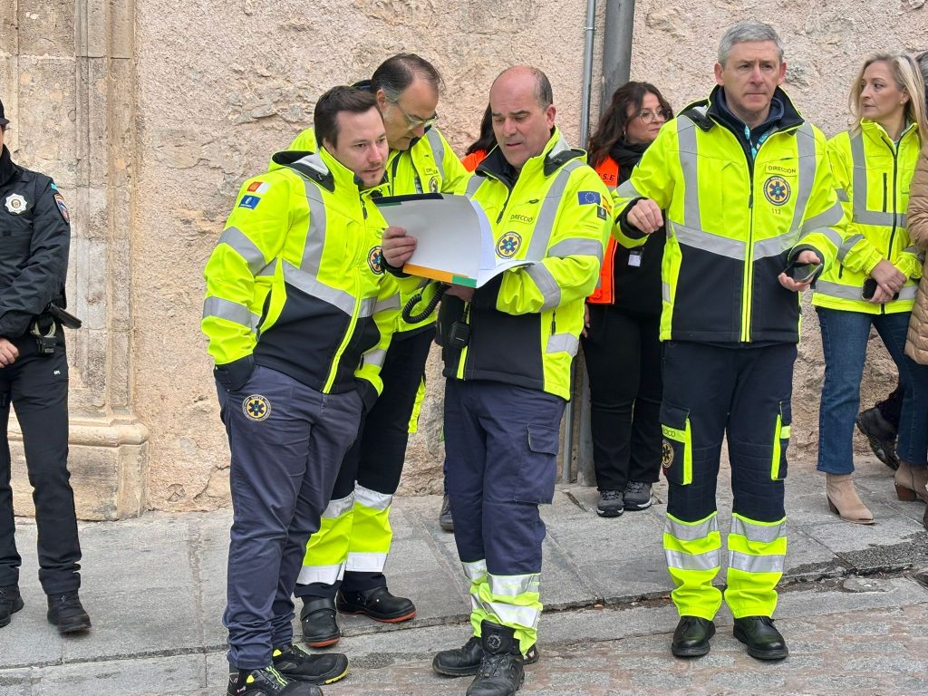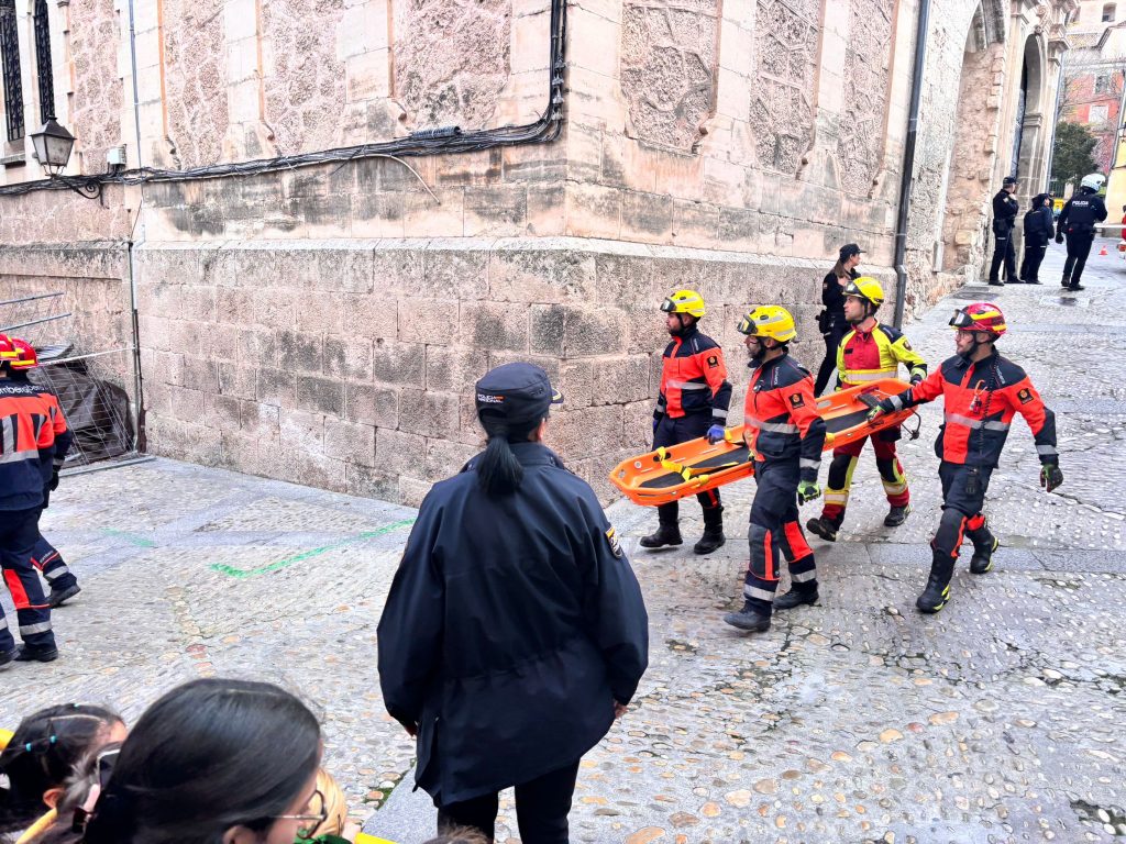 En este caso el simulacro se ha producido en un lugar simbólico como la plaza del Salvador, donde comienza la procesión de Camino del Calvario del Viernes Santo conquense, y todas las indicaciones de esta recreación permitirán tomar nota para mejorar la seguridad en la salida de este desfile.