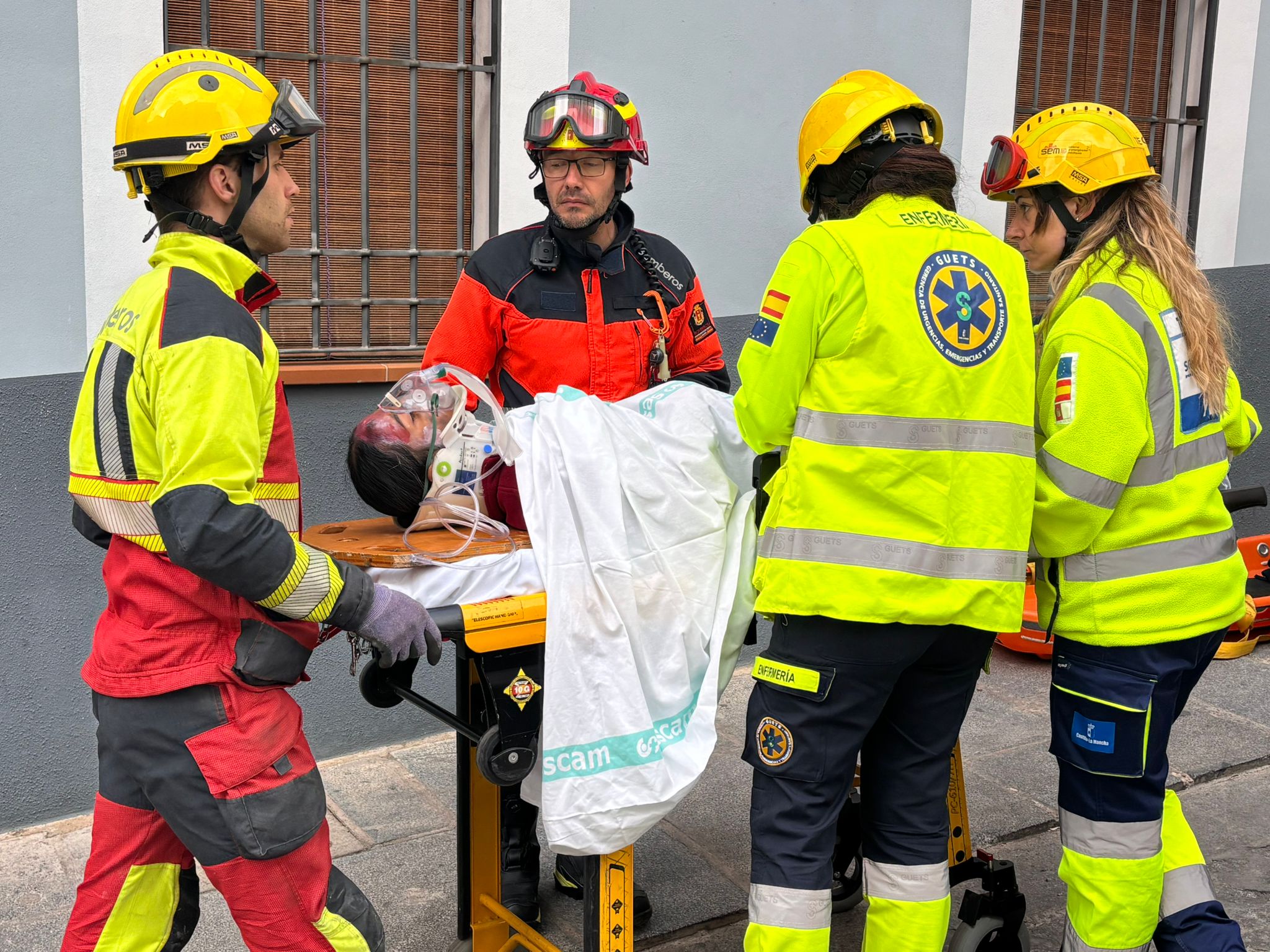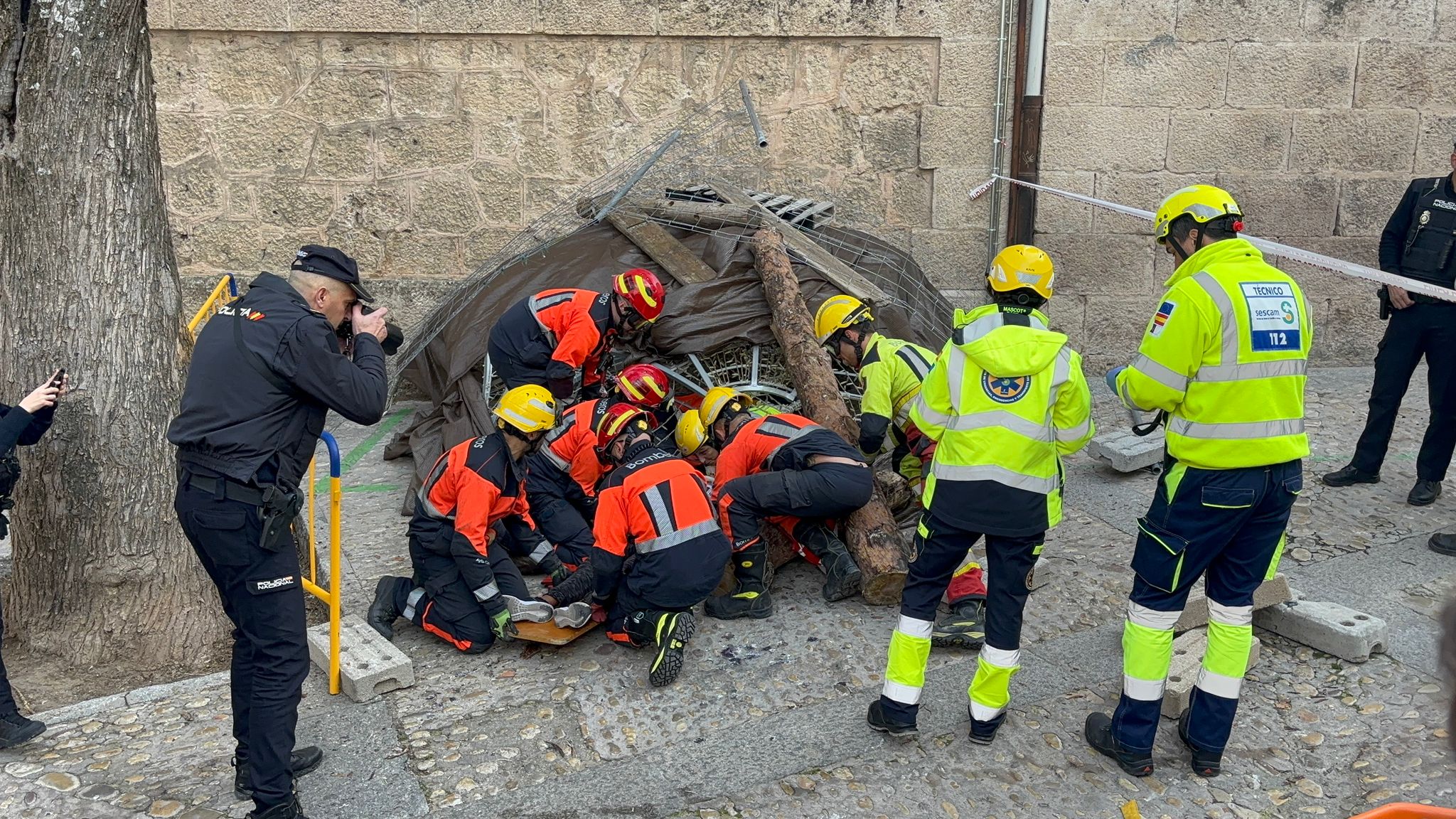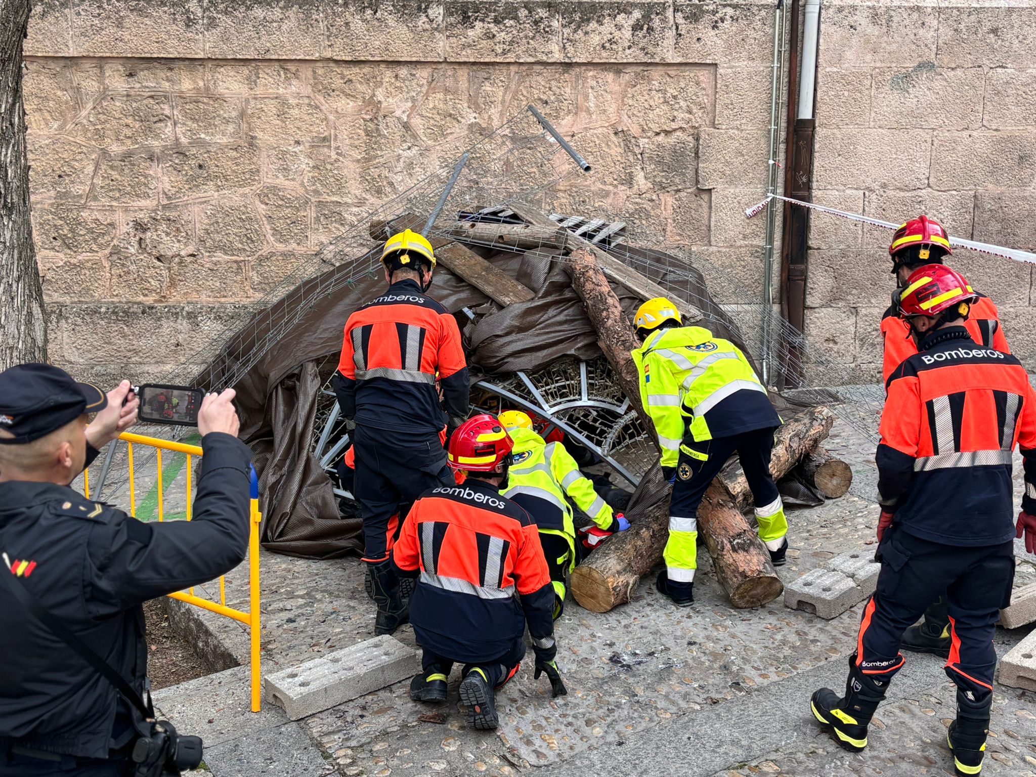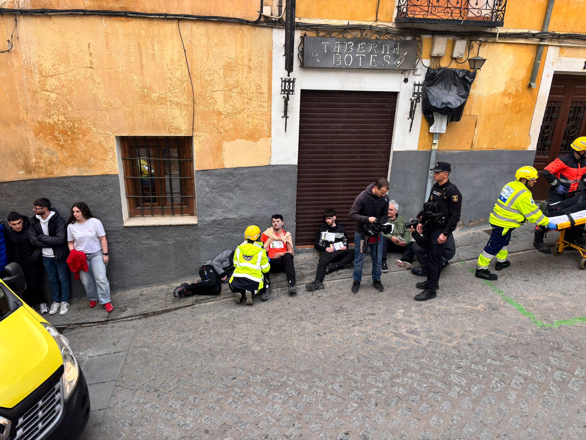 En este caso el simulacro se ha producido en un lugar simbólico como la plaza del Salvador, donde comienza la procesión de Camino del Calvario del Viernes Santo conquense, y todas las indicaciones de esta recreación permitirán tomar nota para mejorar la seguridad en la salida de este desfile.