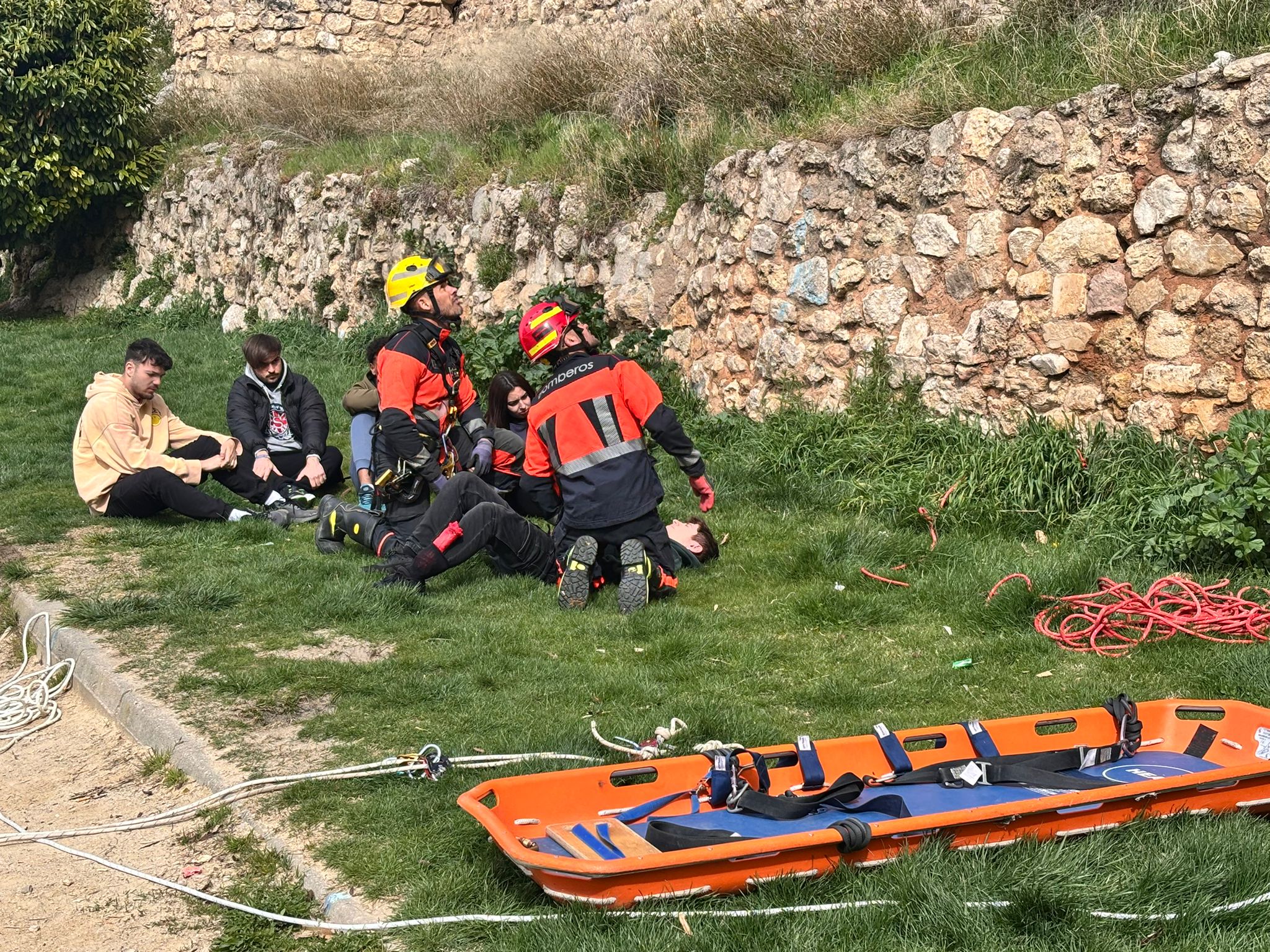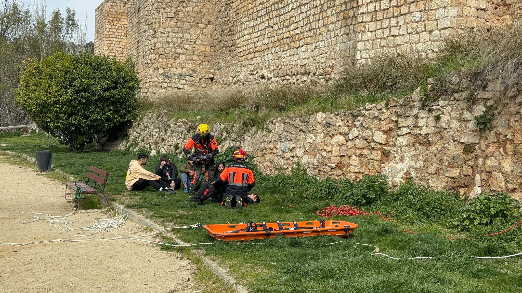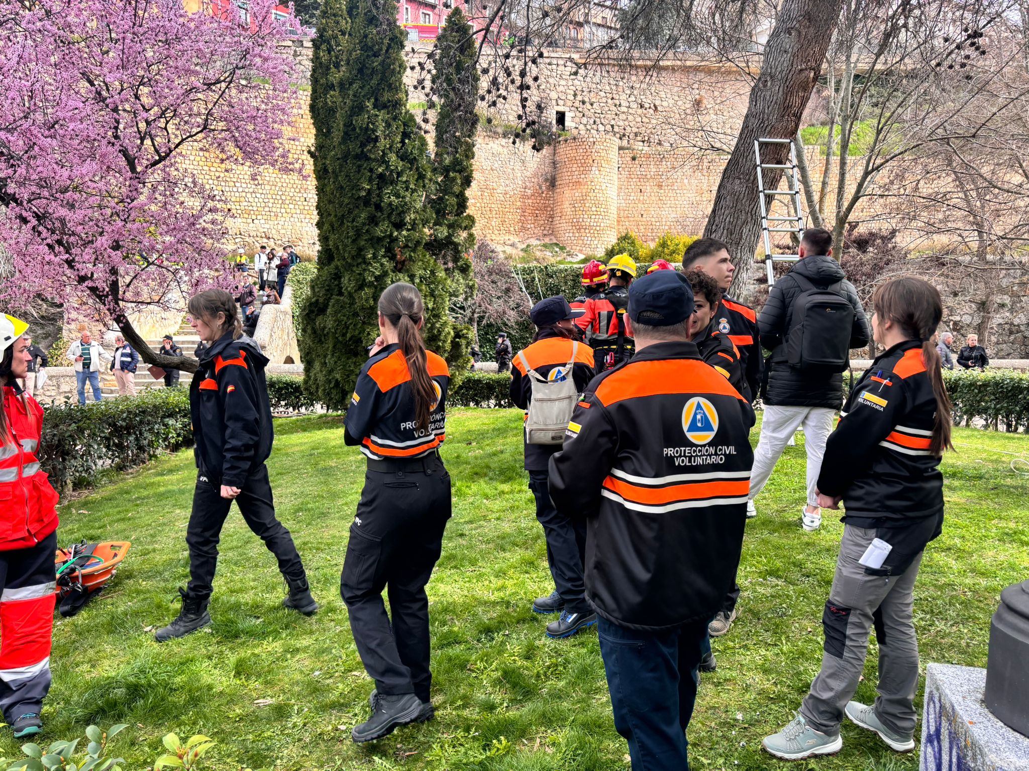 En este caso el simulacro se ha producido en un lugar simbólico como la plaza del Salvador, donde comienza la procesión de Camino del Calvario del Viernes Santo conquense, y todas las indicaciones de esta recreación permitirán tomar nota para mejorar la seguridad en la salida de este desfile.