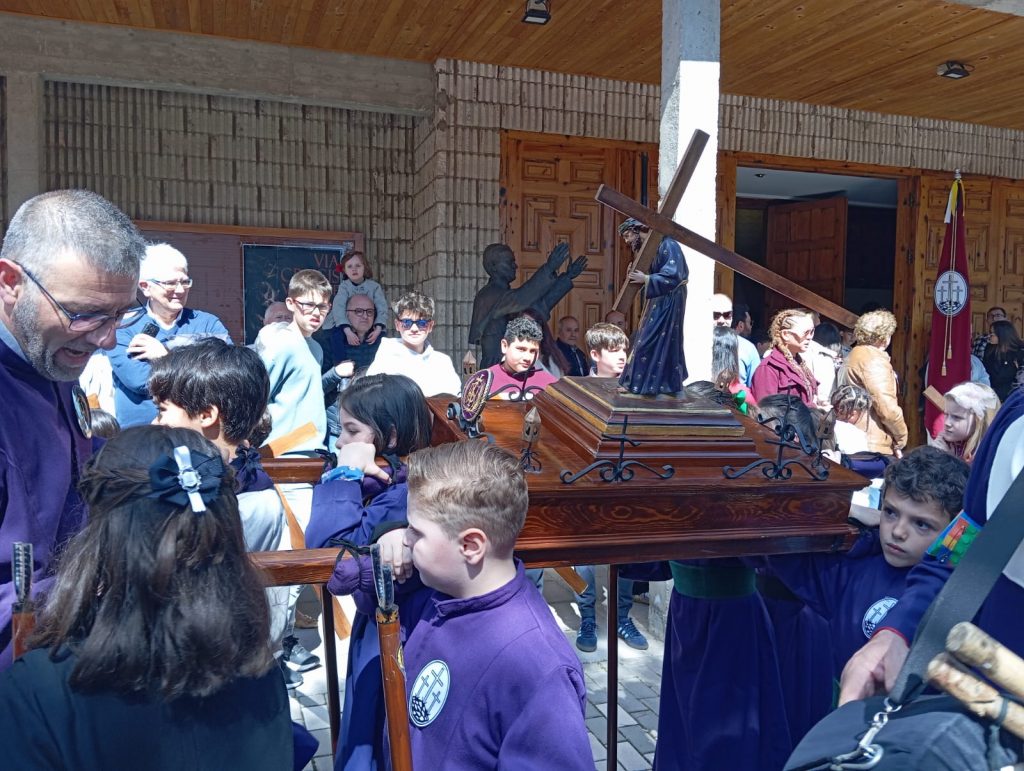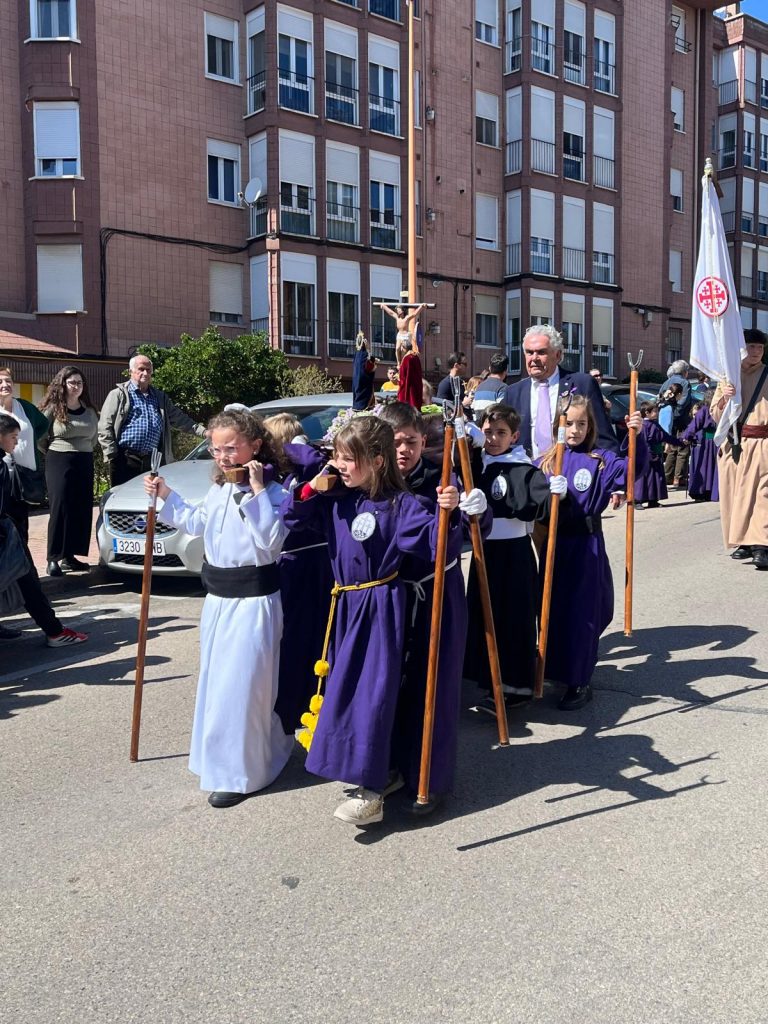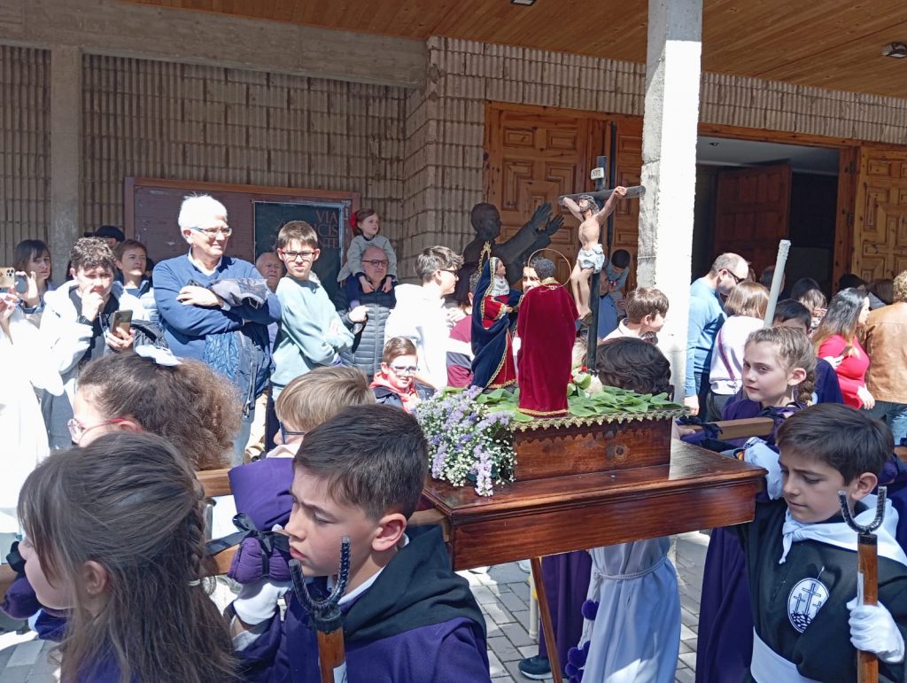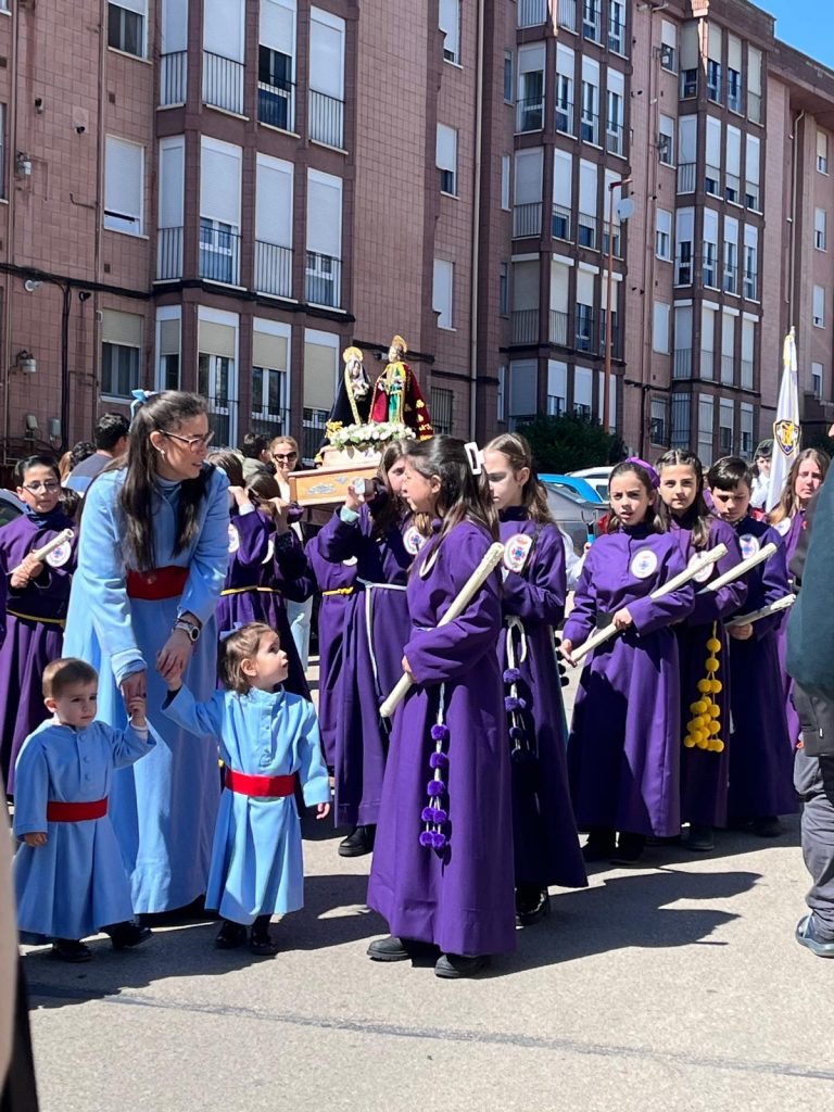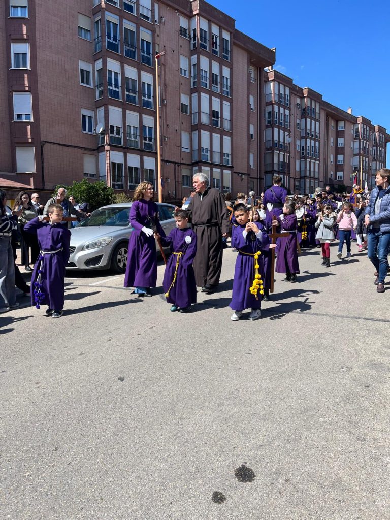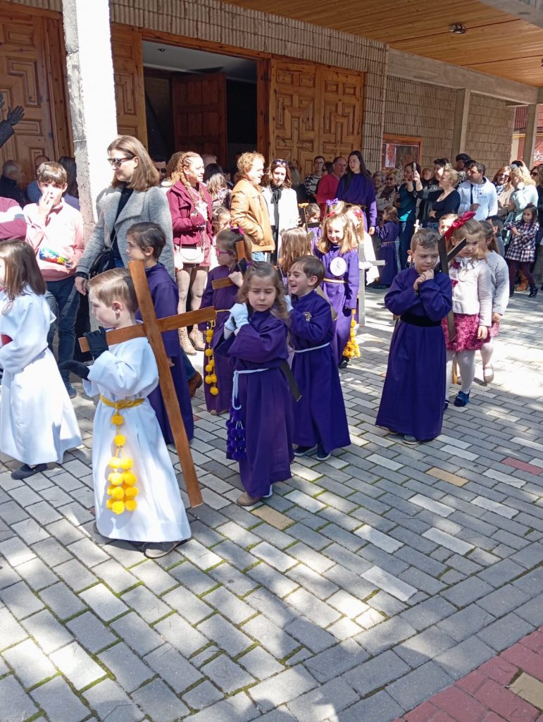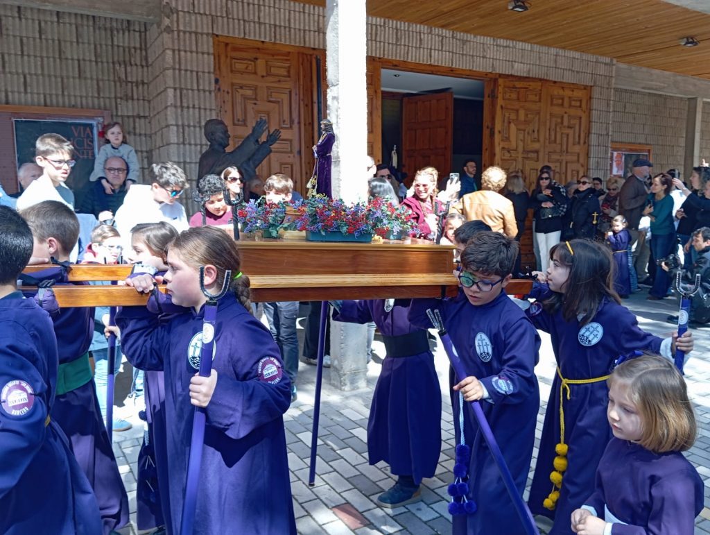 El barrio de la Fuente del Oro demostró un año más su espíritu nazareno en una procesión infantil tan vistosa y participativa como solemne, gracias a la implicación de los pequeños del barrio que se han puesto bajo el banzo.