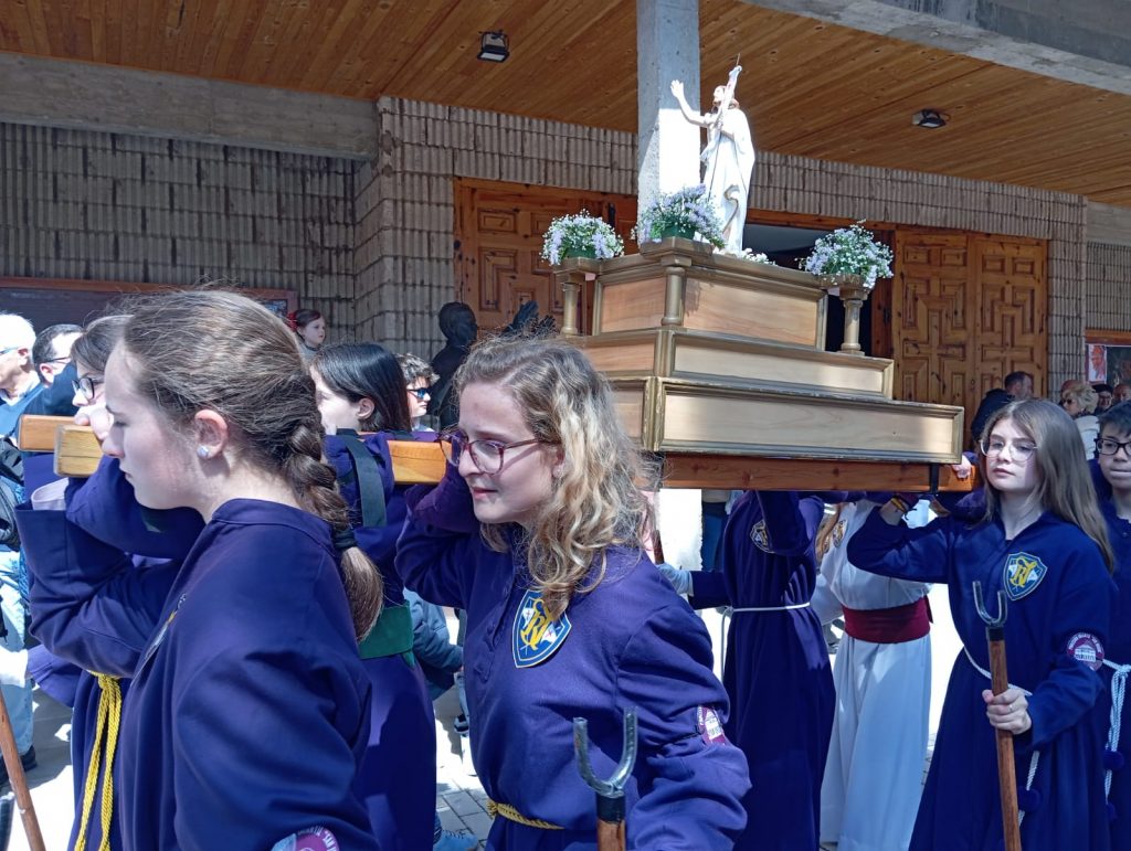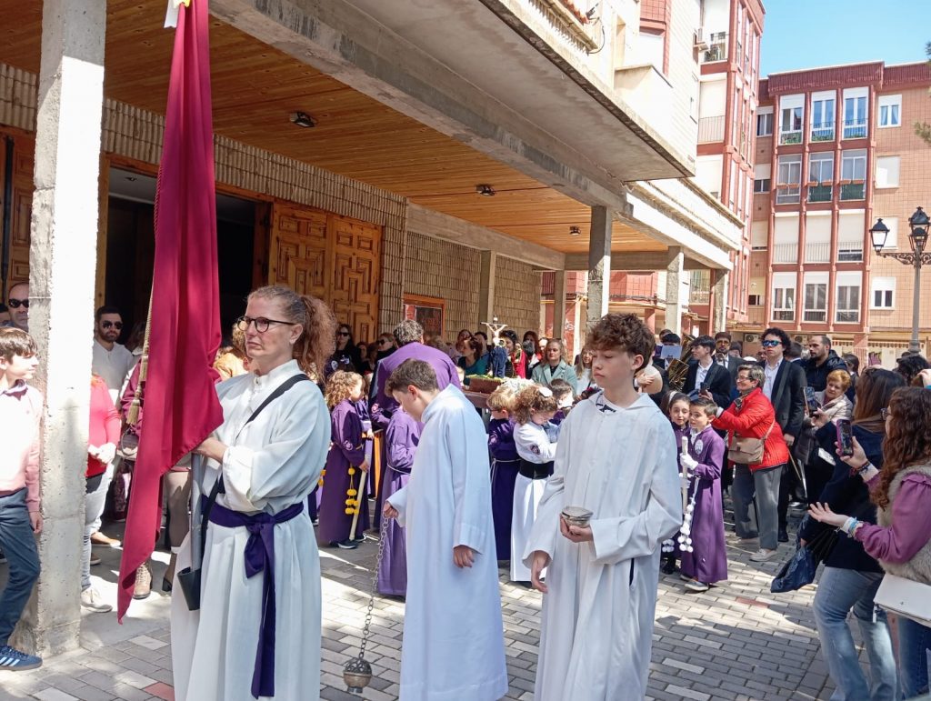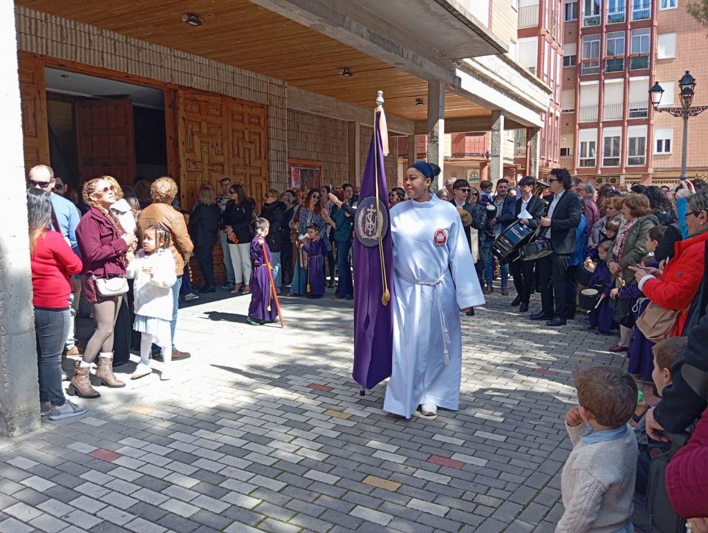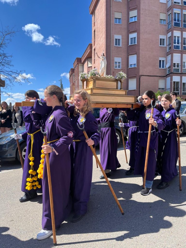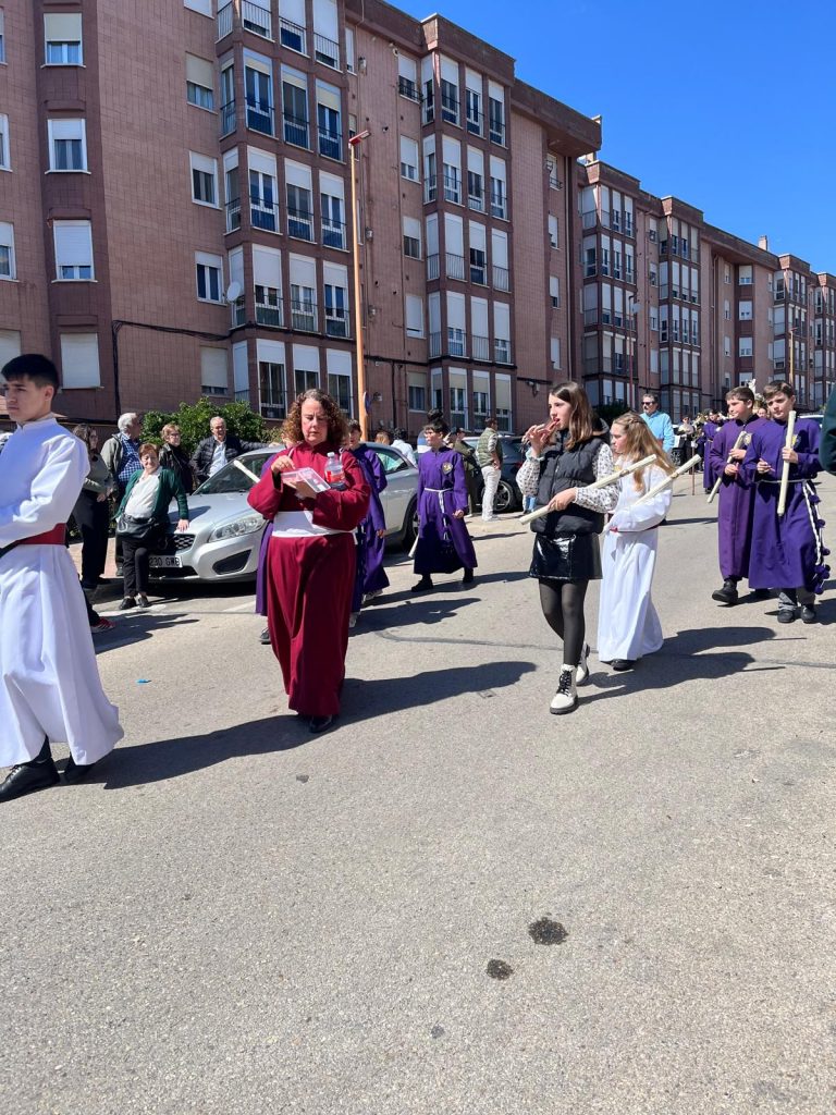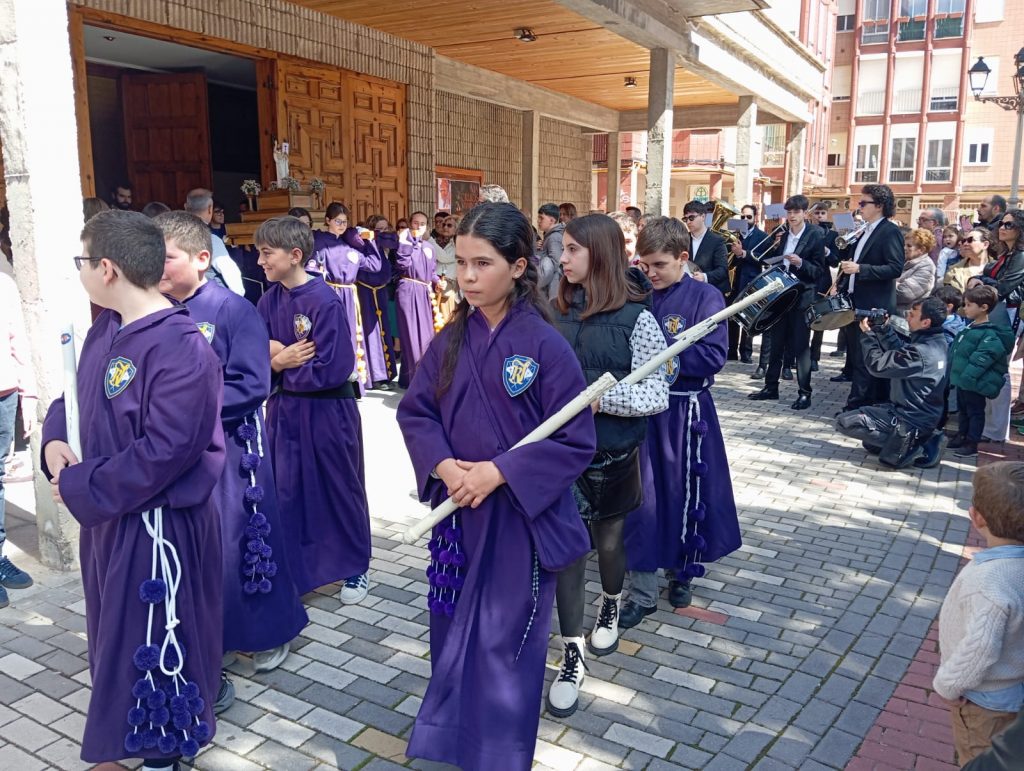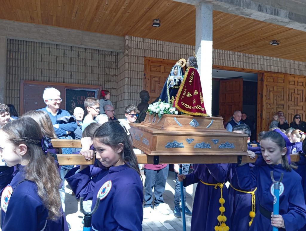 El barrio de la Fuente del Oro demostró un año más su espíritu nazareno en una procesión infantil tan vistosa y participativa como solemne, gracias a la implicación de los pequeños del barrio que se han puesto bajo el banzo.