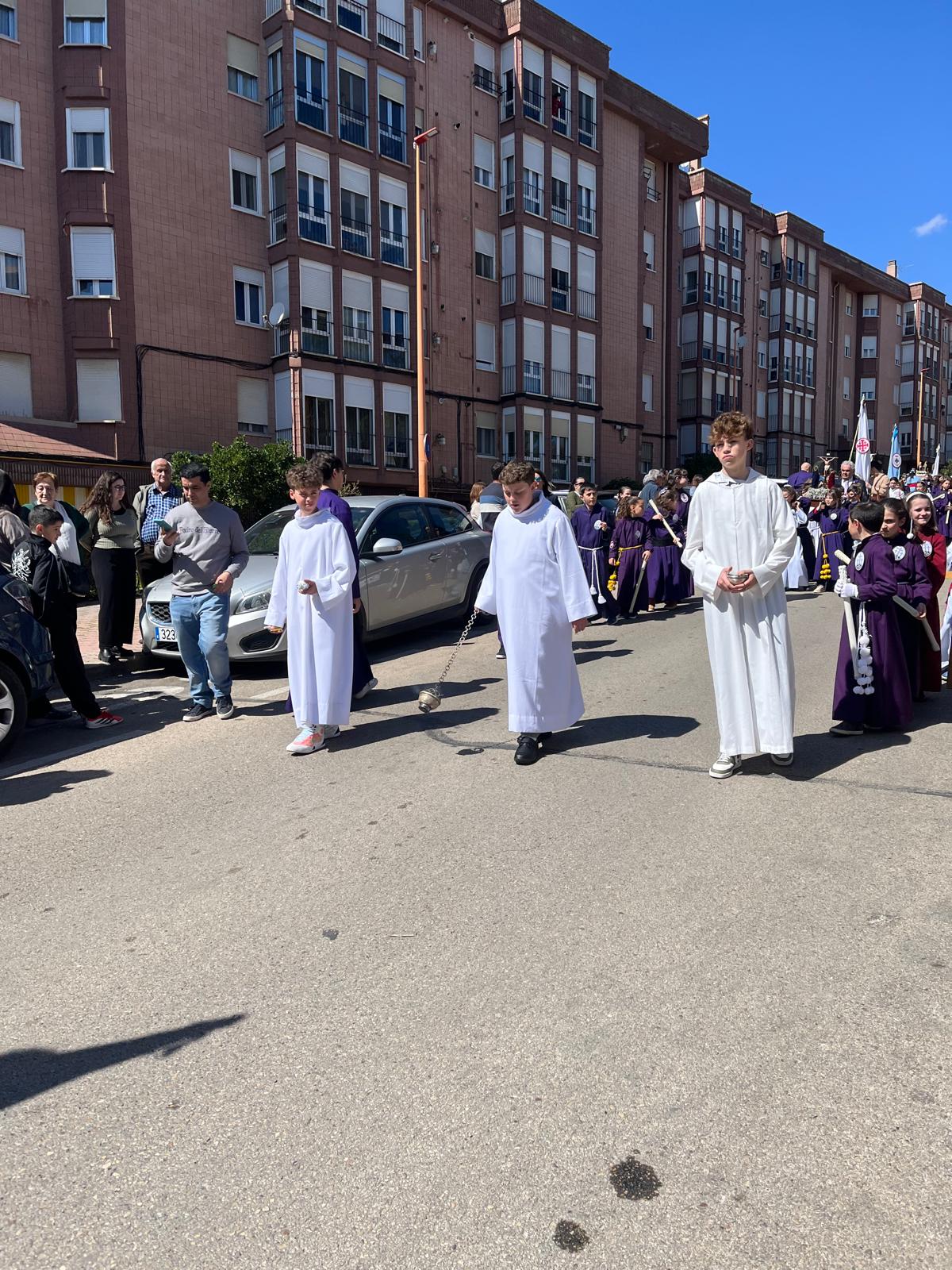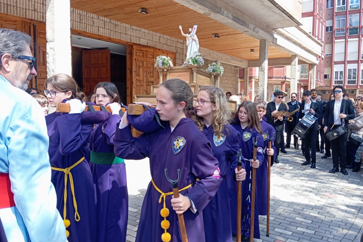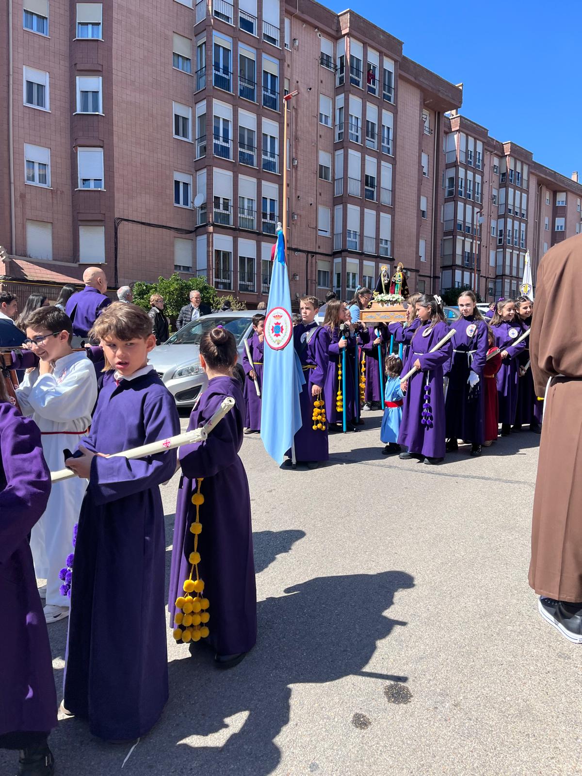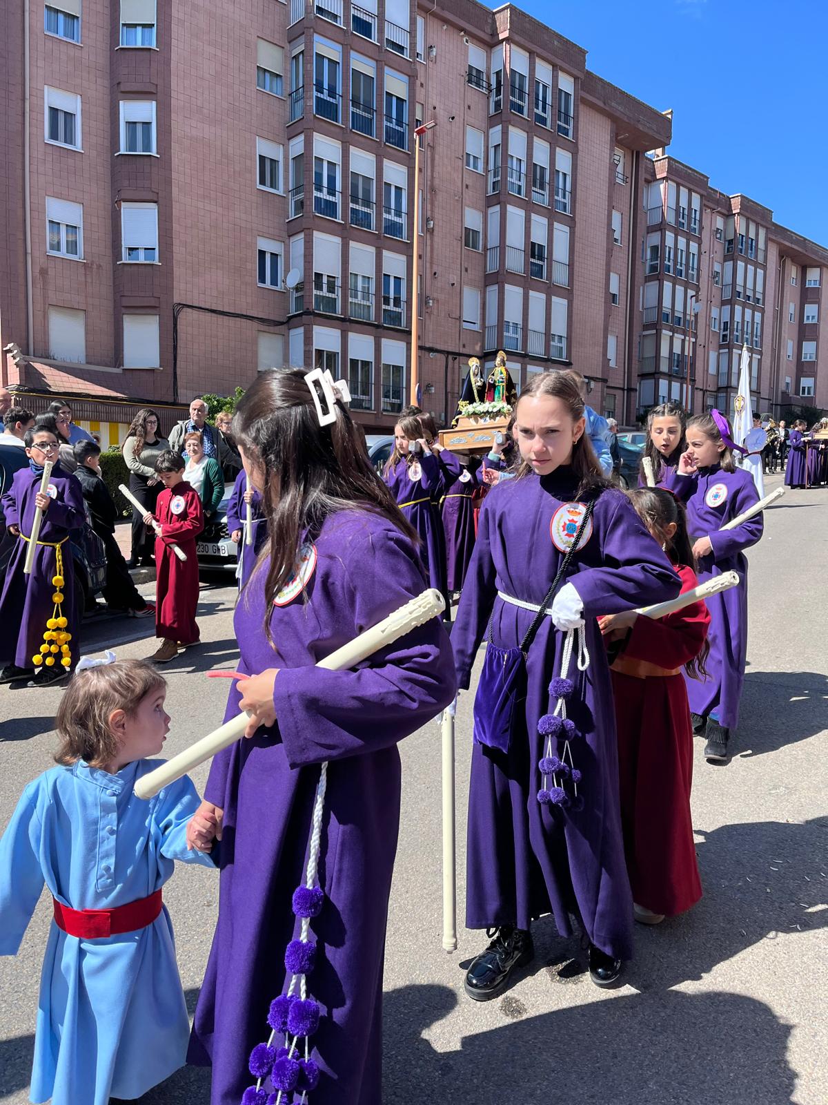 El barrio de la Fuente del Oro demostró un año más su espíritu nazareno en una procesión infantil tan vistosa y participativa como solemne, gracias a la implicación de los pequeños del barrio que se han puesto bajo el banzo.