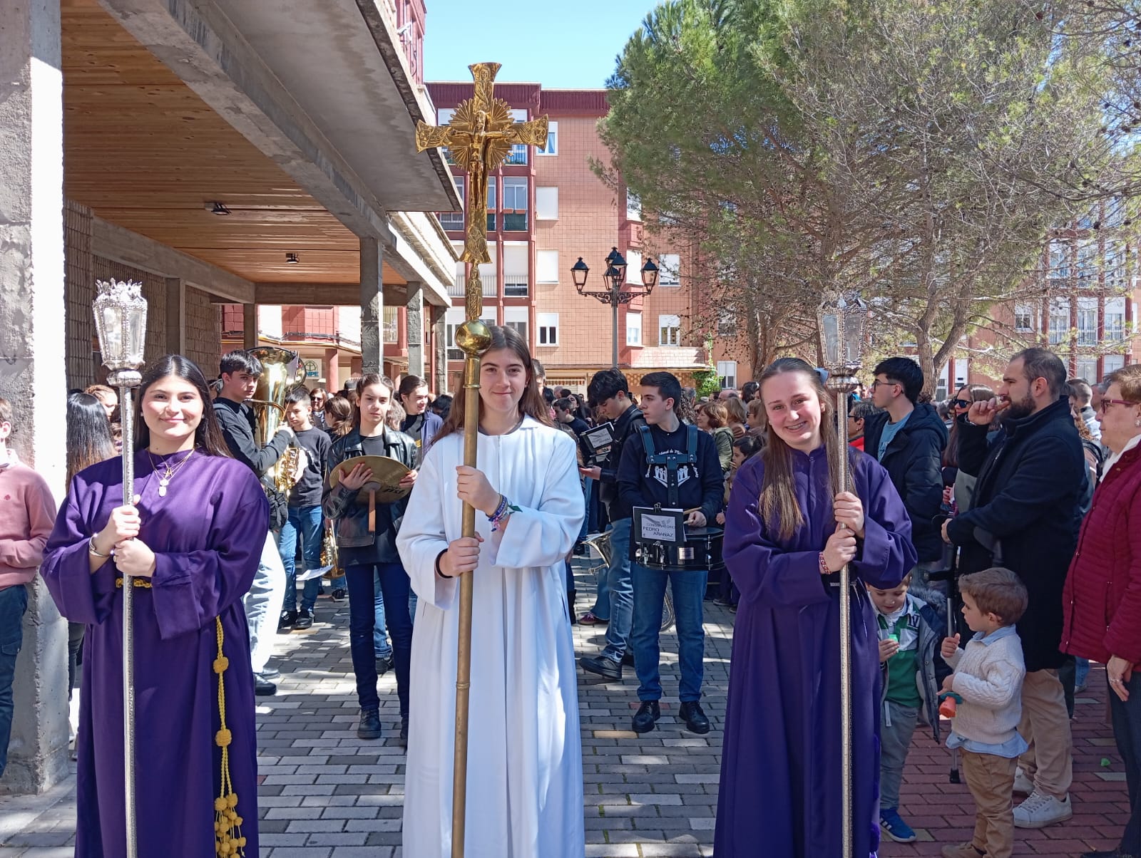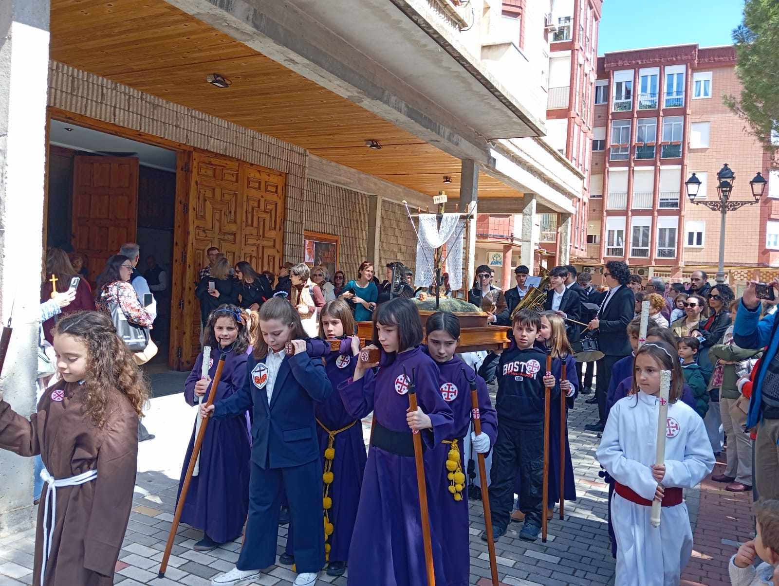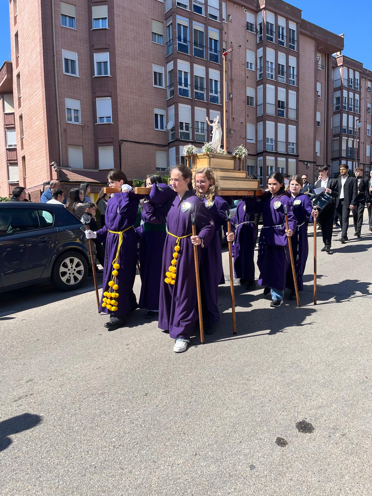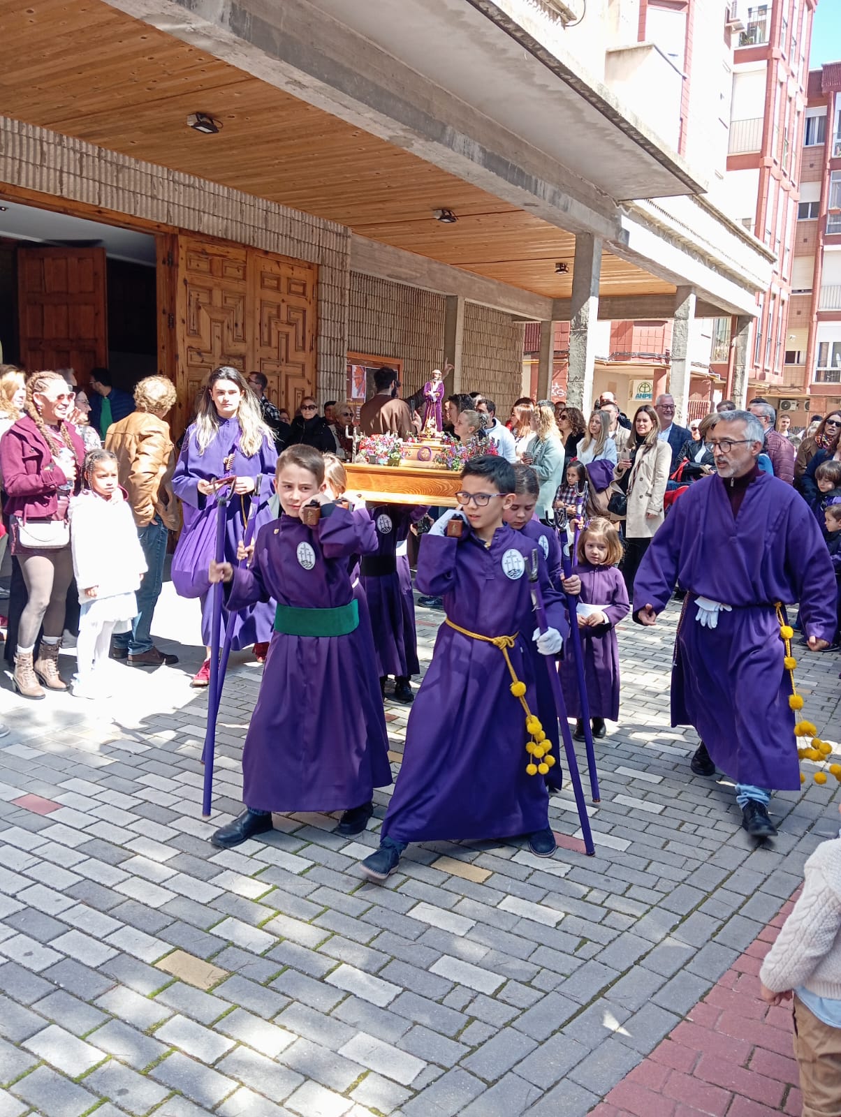 El barrio de la Fuente del Oro demostró un año más su espíritu nazareno en una procesión infantil tan vistosa y participativa como solemne, gracias a la implicación de los pequeños del barrio que se han puesto bajo el banzo.