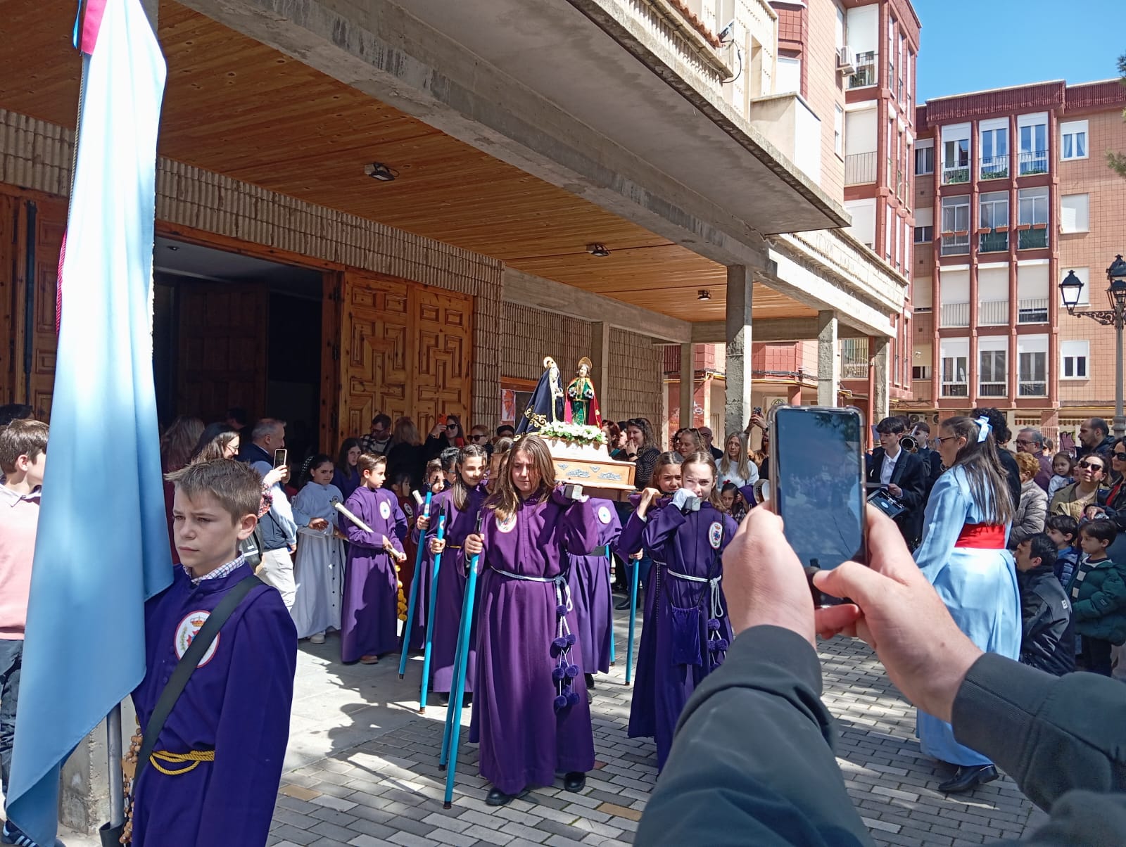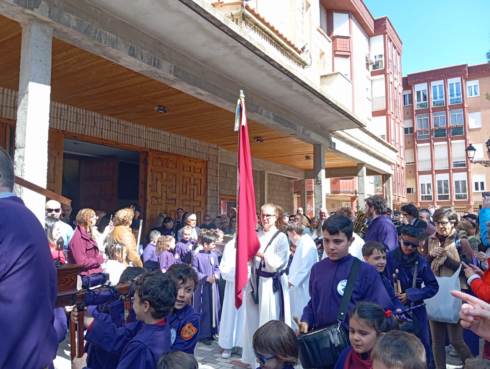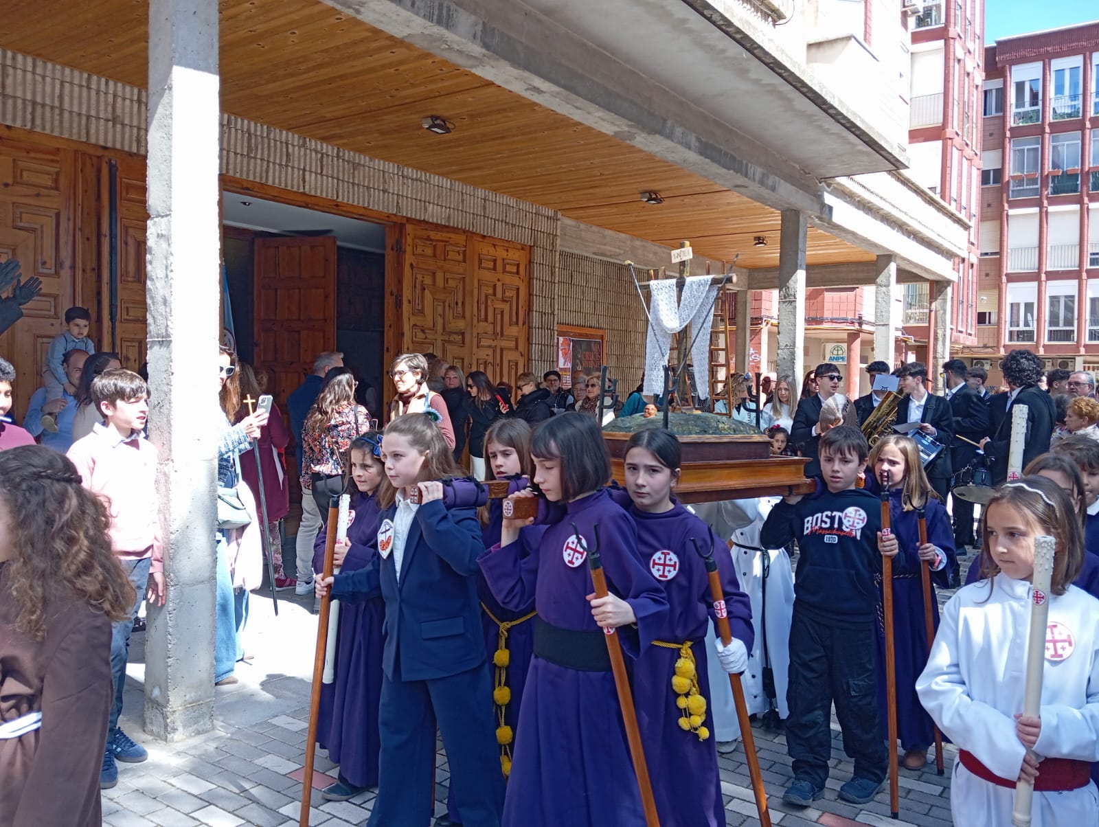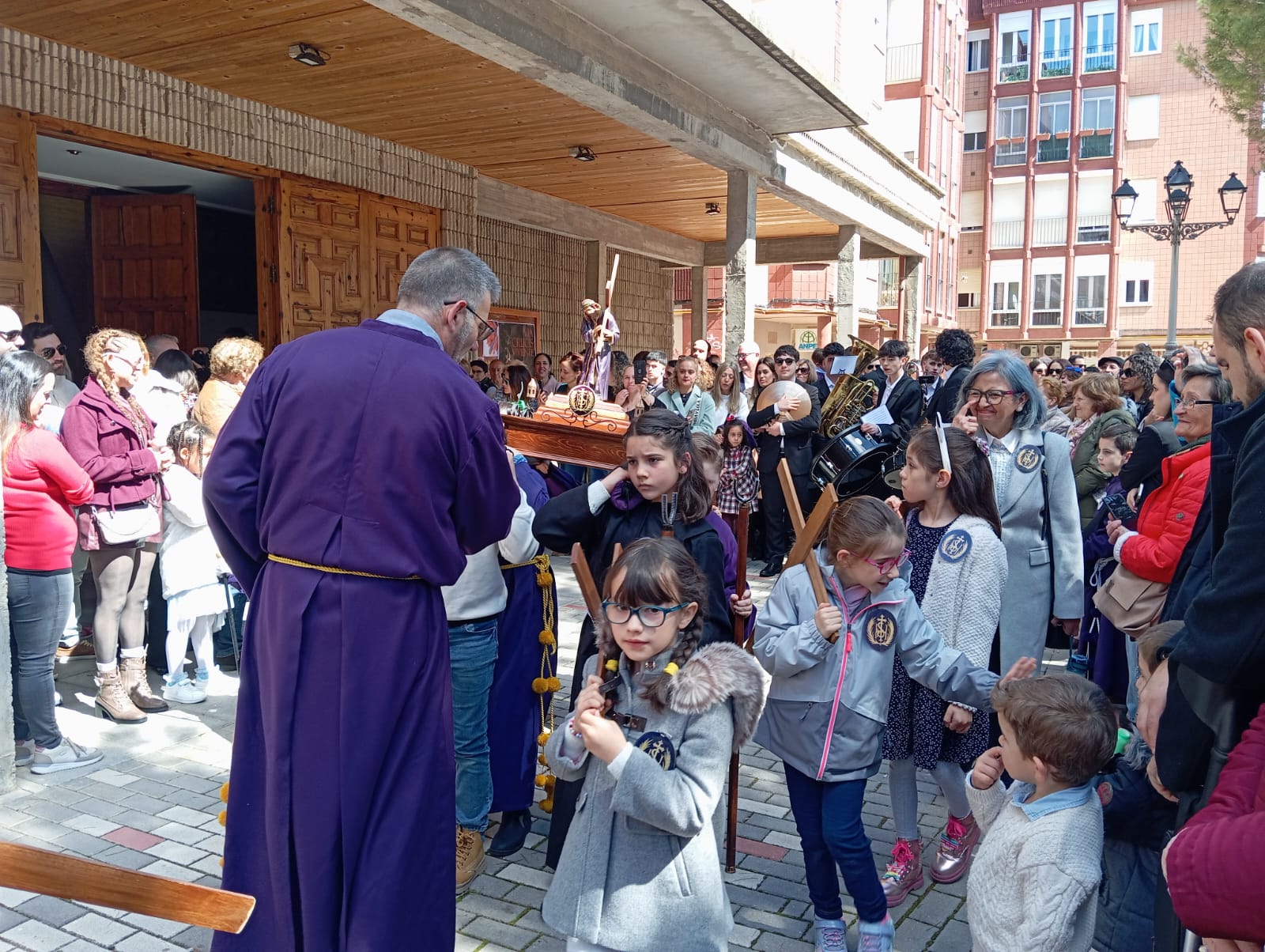 El barrio de la Fuente del Oro demostró un año más su espíritu nazareno en una procesión infantil tan vistosa y participativa como solemne, gracias a la implicación de los pequeños del barrio que se han puesto bajo el banzo.