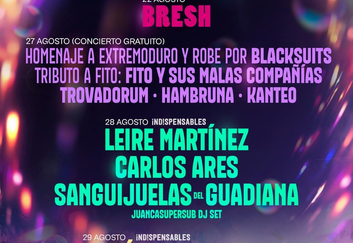 Por su parte, el viernes 28 de agosto será el turno de la primera jornada del festival ‘Indispensables’ con Leire Martínez, Carlos Ares, Sanguijuelas del Guadiana y Juancarsupersub DJ-SET.