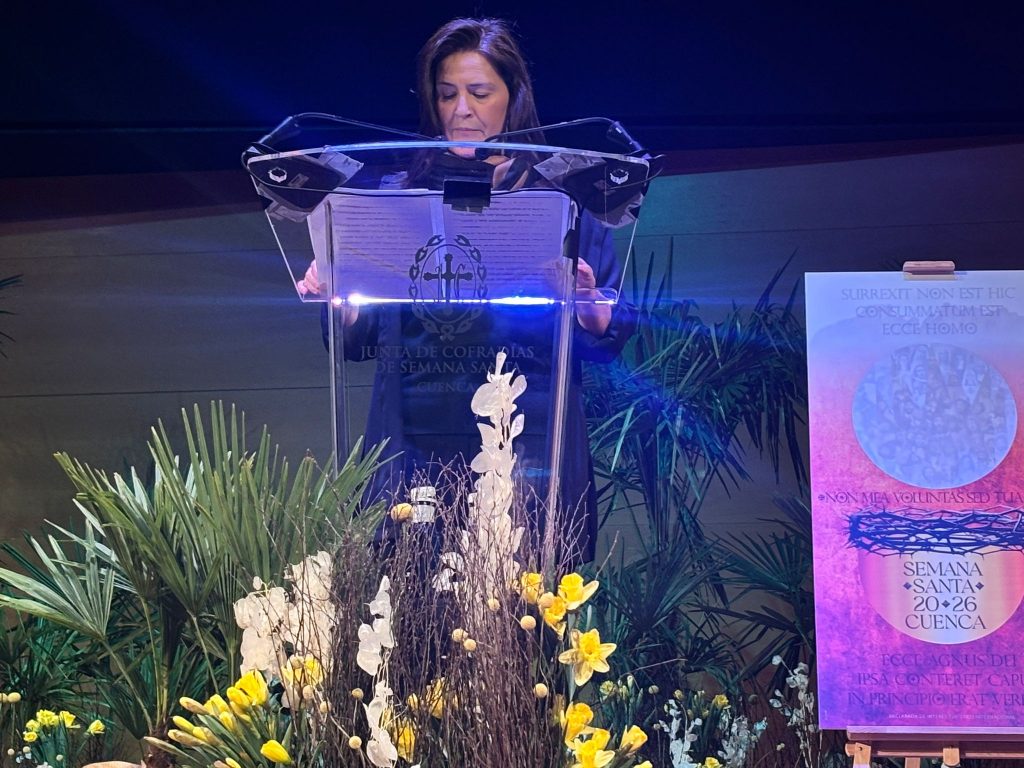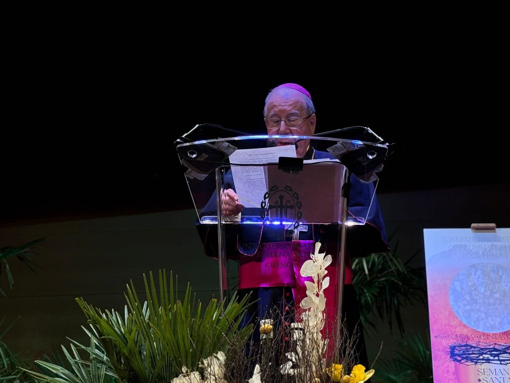 El riojano ha puesto también su mirada en el Cristo de los Espejos y su “luz que disipa tinieblas”; en el Jesús de Medinaceli “cautivo, pero libertador para todos” y en la Virgen de la Esperanza, de cuya procesión ha destacado el momento en el que, a la llegada a la Plaza Mayor, se refugia en el Palacio Episcopal. “Me iré de Cuenca cuando Dios quiera, pero ese momento vendrá conmigo”, ha asegurado.