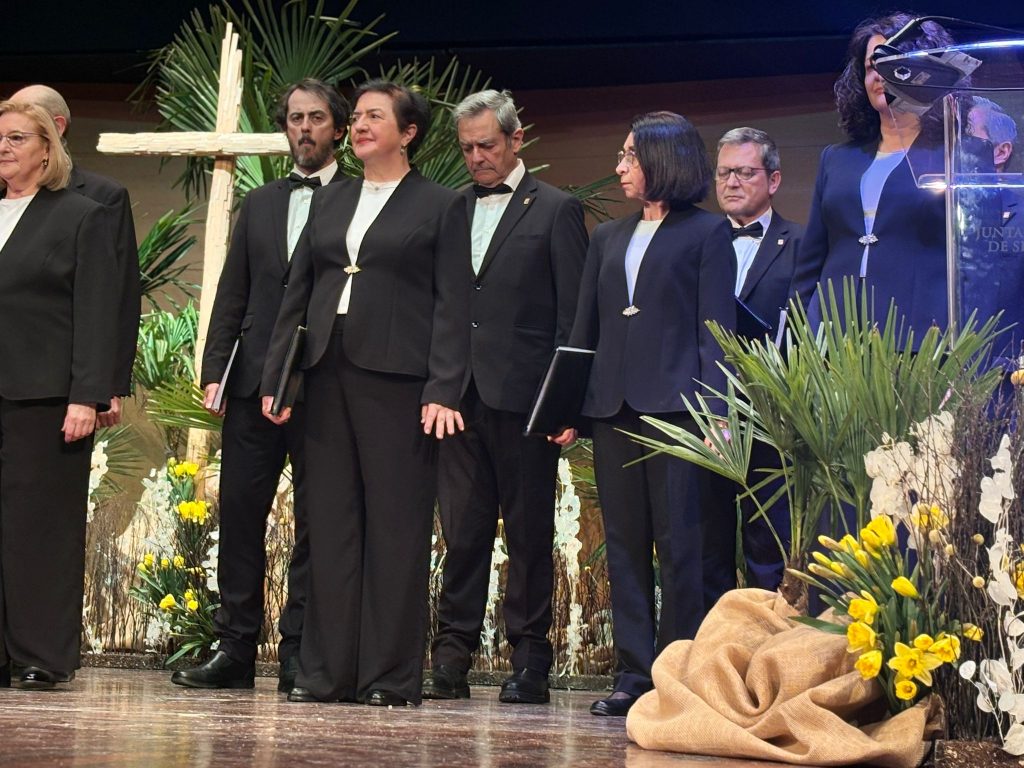 El pregonero también ha comentado la “bella imagen” que es el Jesús con la Caña; la mirada a lo alto del Ecce Homo de San Gil mientras se ha preguntado “¿quién puede expresar con palabras esa muda conversación con el Padre?” y la “valentía” de la Verónica, cuya escena le ha hecho pensar en cómo “se nos pide a los creyentes no tanto que hablemos de Cristo, sino que lo hagamos ver. Para eso es imprescindible que nosotros mismos seamos contempladores del rostro de Cristo”.