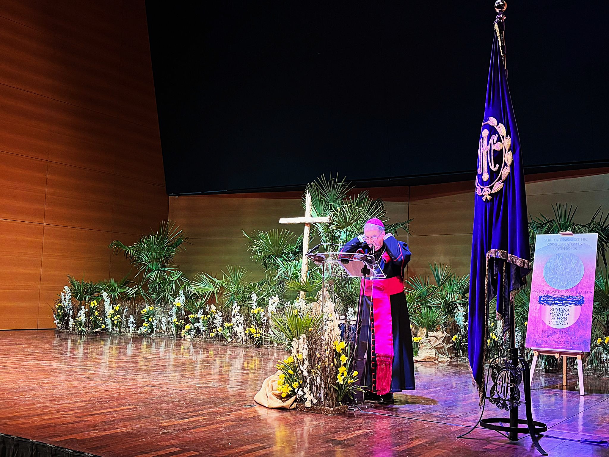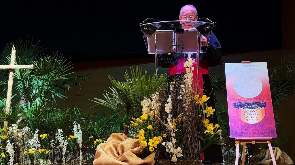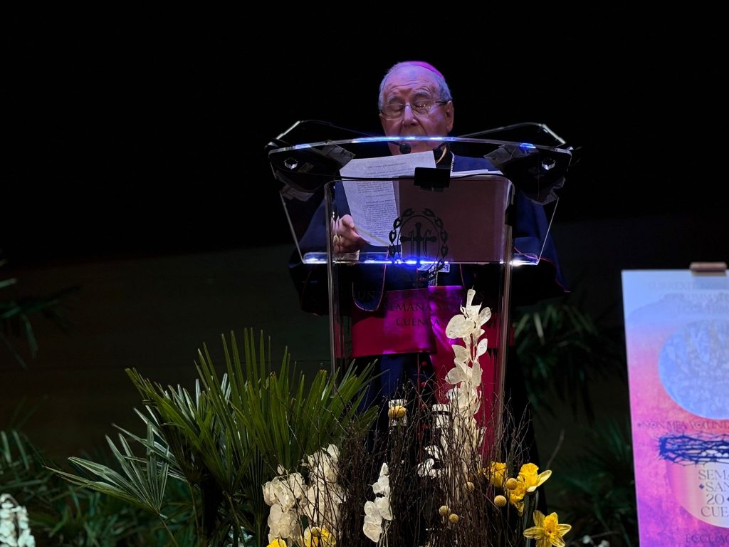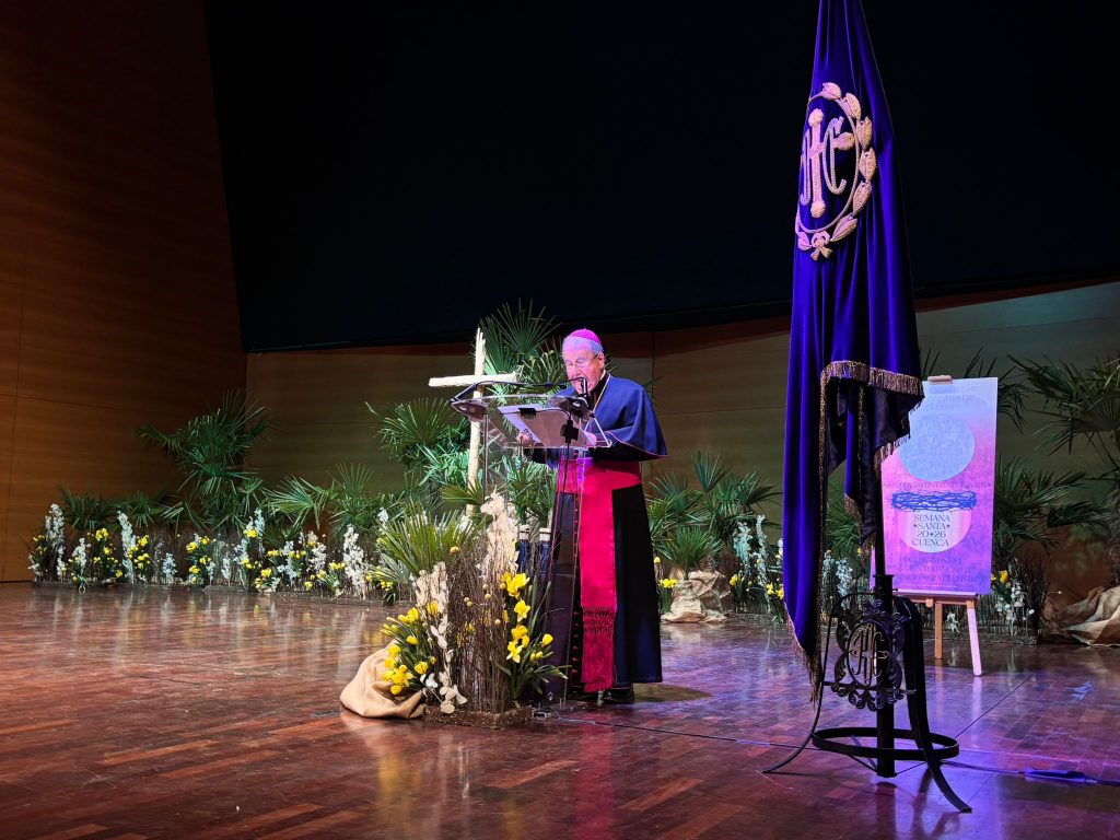El obispo de Cuenca, José María Yanguas, ha abierto la Semana Santa de Cuenca, con un pregón cronológico y evangelizador que ha recorrido, procesión a procesión y paso a paso, el significado de todos los momentos representados en la pasión conquense.