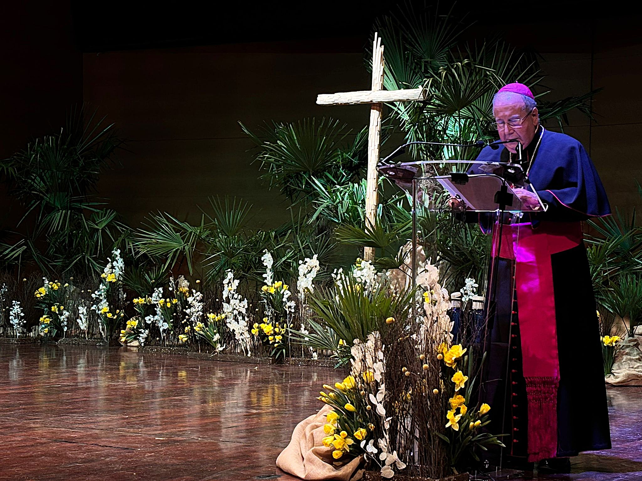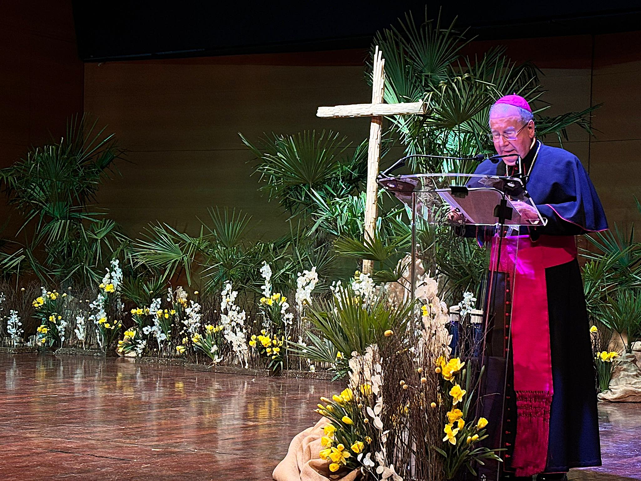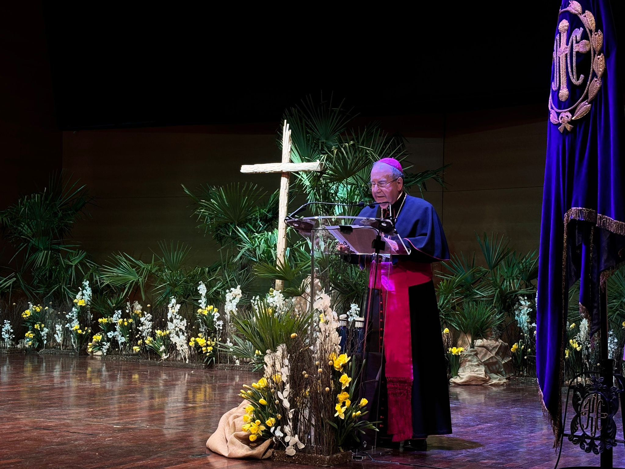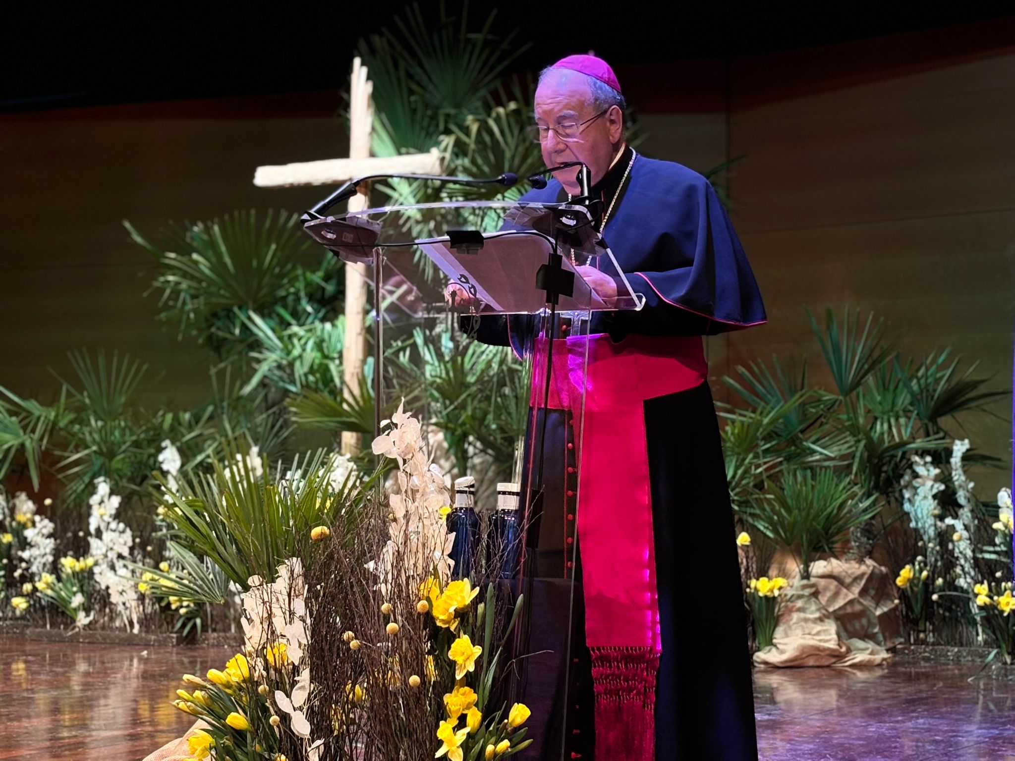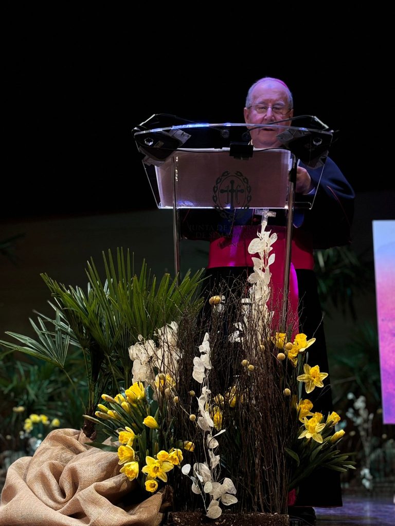 Sobre la procesión penitencial de la Vera Cruz, el obispo la ha calificado como una “celebración esencial, sin adornos” y ha compartido sus pensamientos en torno a esa imagen del Crucificado, que desfila “con la mirada apagada” y las Siete Palabras del sermón que articula esta procesión. referencias a las palabras que se pronuncian en el recorrido. En sus palabras se ha acordado de los jóvenes “rotos por la droga y la pornografia”, de los hijos “muertos por las armas” y los hombres y mujeres “humillados en su dignidad”