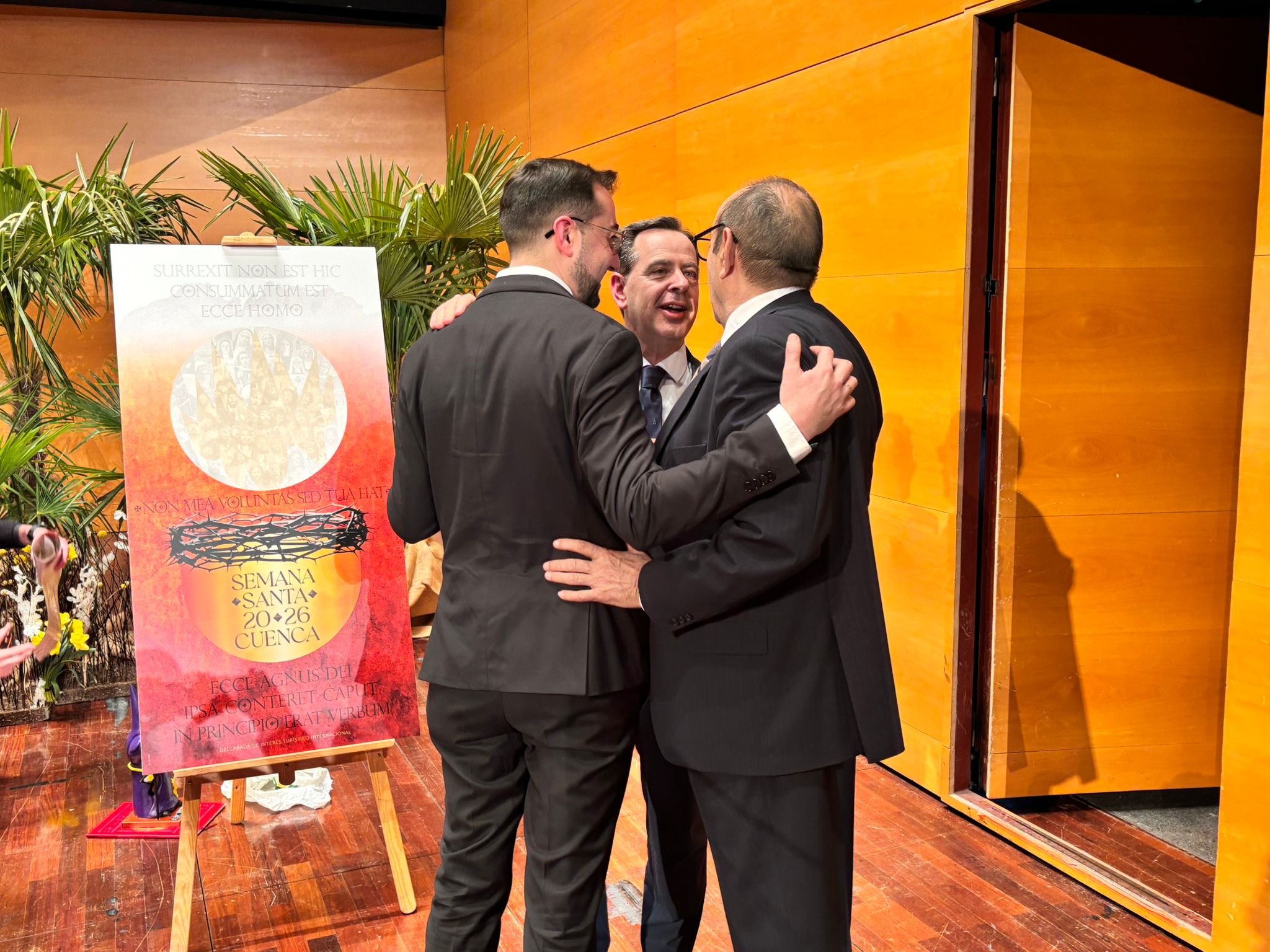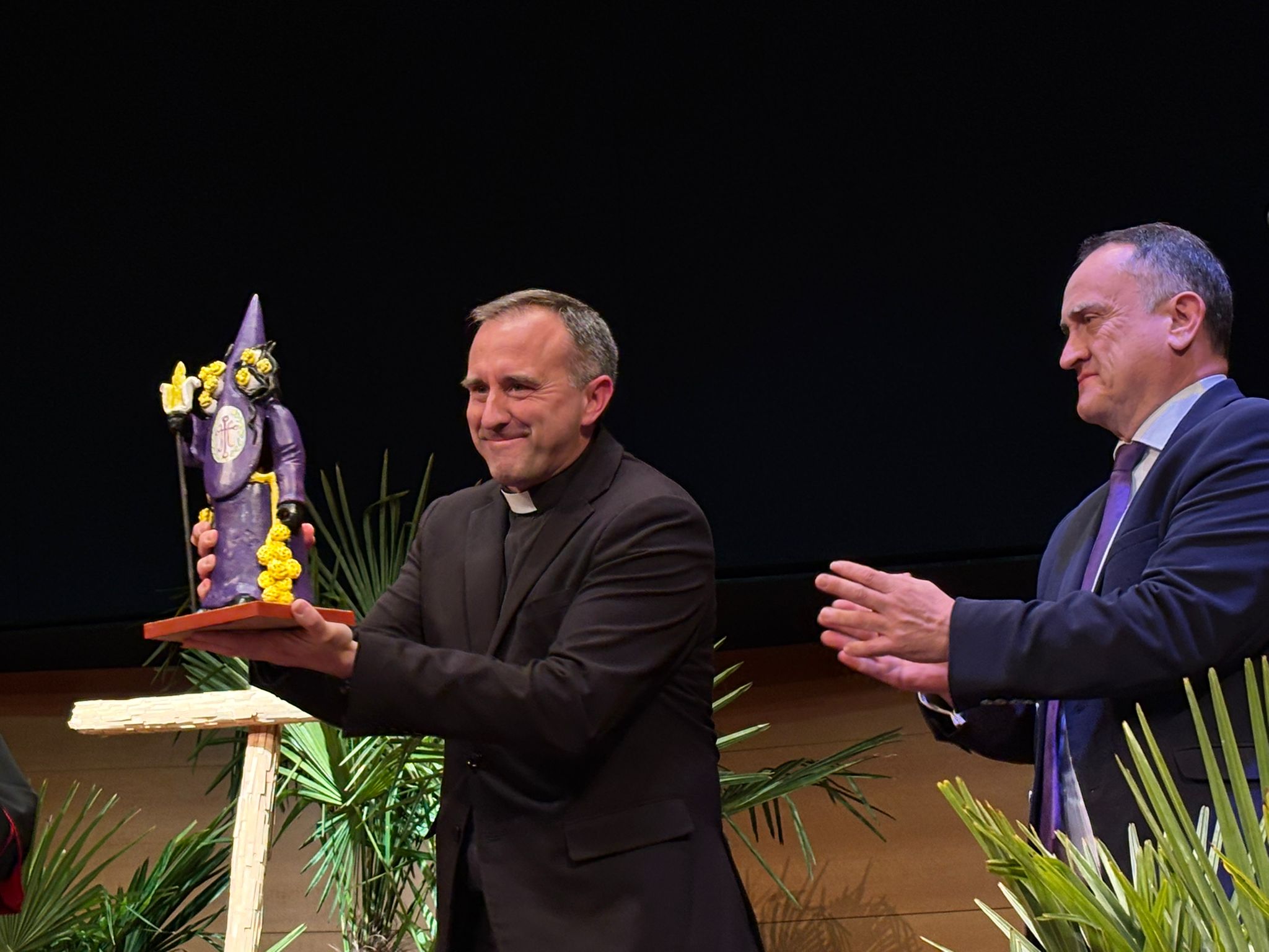 Al finalizar el acto se ha entregado un obsequio tanto al pregonero como al cartelista de la Semana Santa de Cuenca 2026, Pedro José Ruiz Soria.