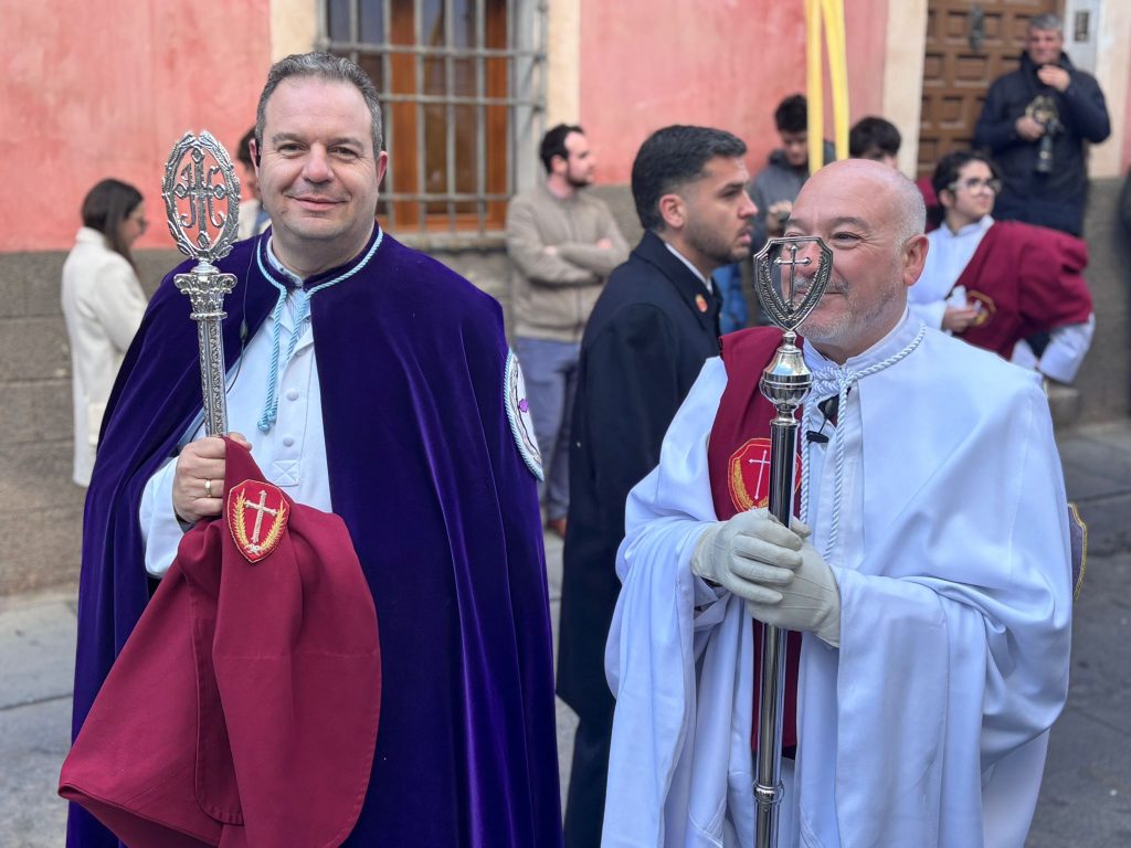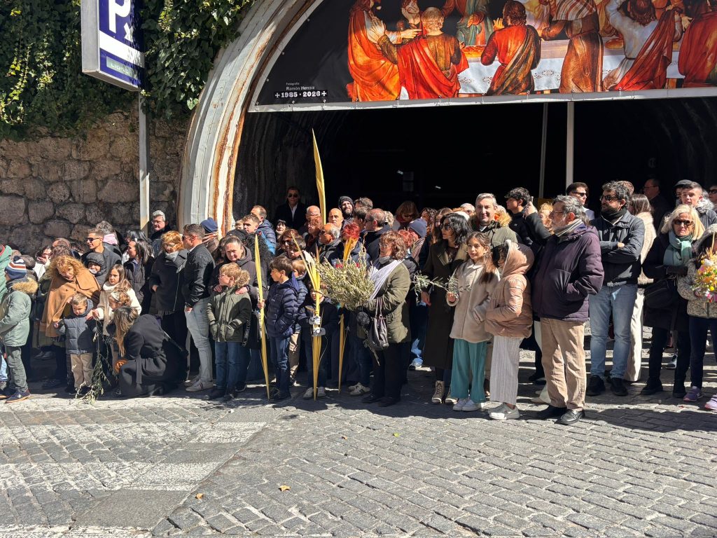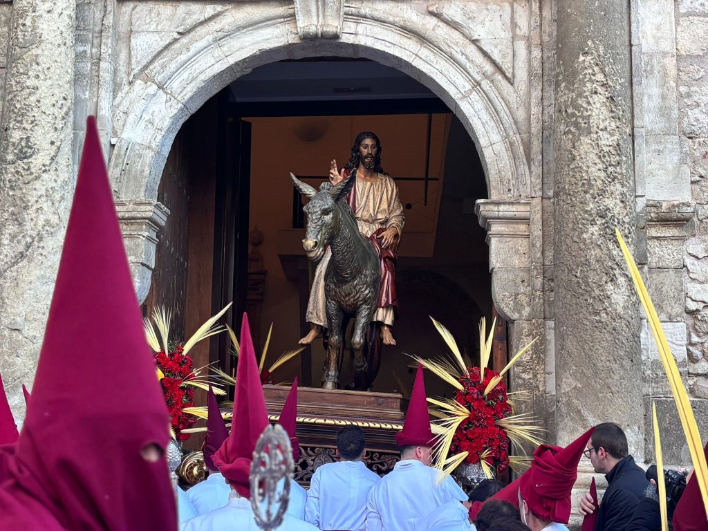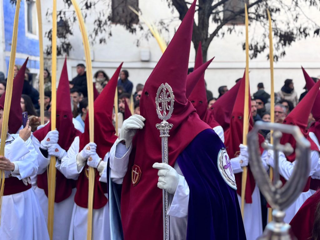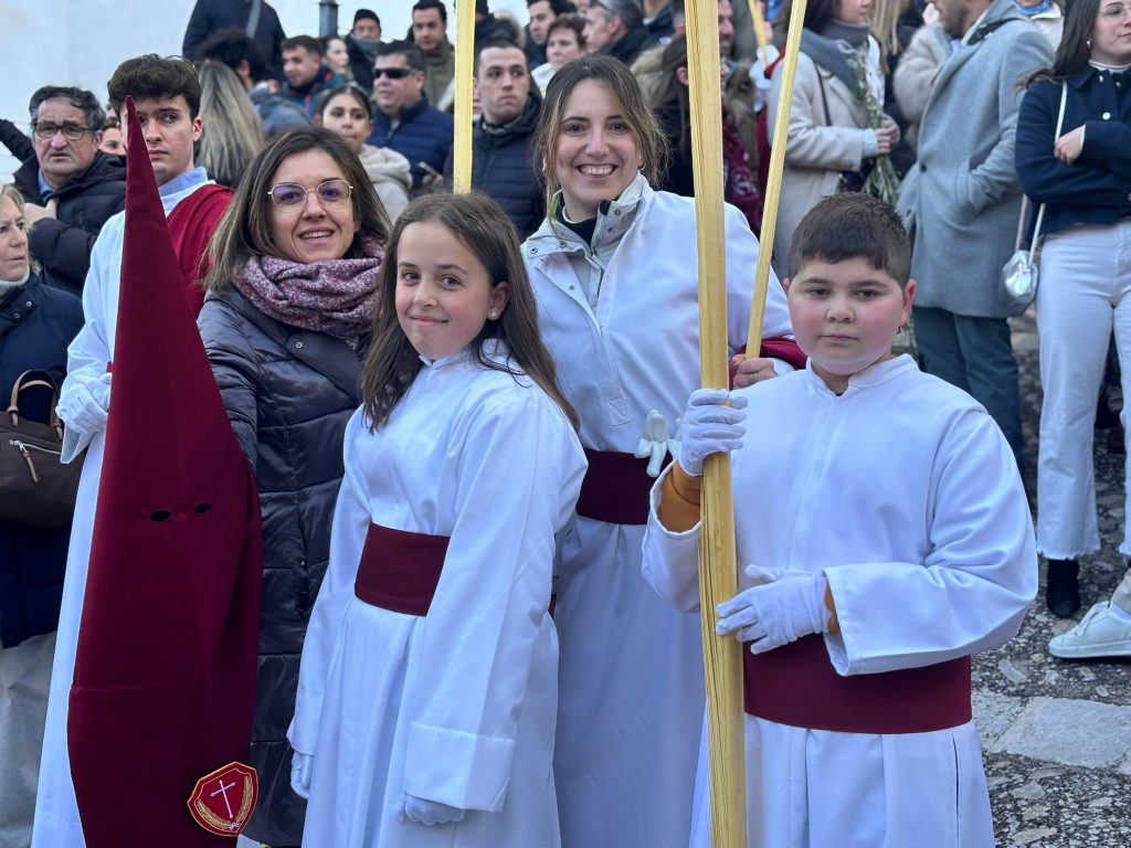 Pedro José Ruiz Soria, consiliario de la hermandad, trazó en su cartel la primera imagen de la Semana Santa 2026 y suyas han sido las últimas palabras antes de que la procesión del Hosanna se pusiera en marcha con puntualidad, a las 9:30 horas, cuando La Borriquilla ha acudido al reclamo de los dos golpes metálicos del portón de San Andrés.