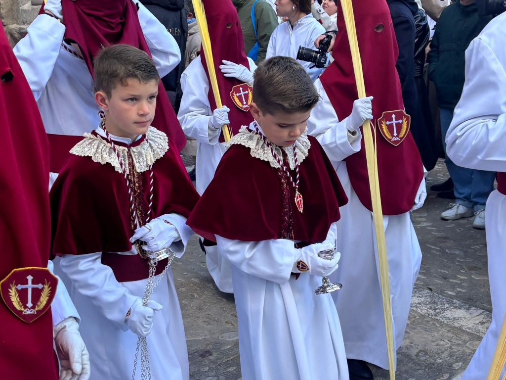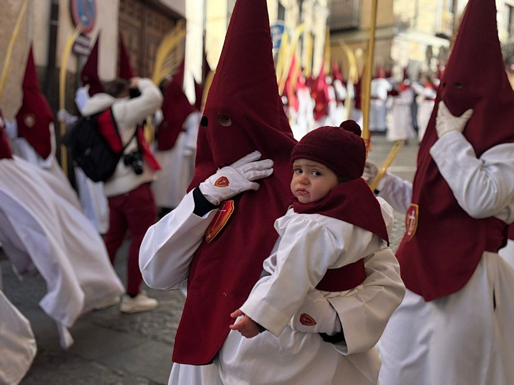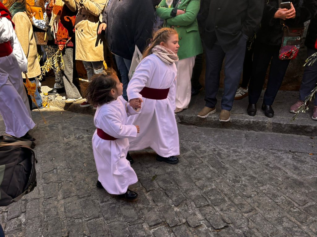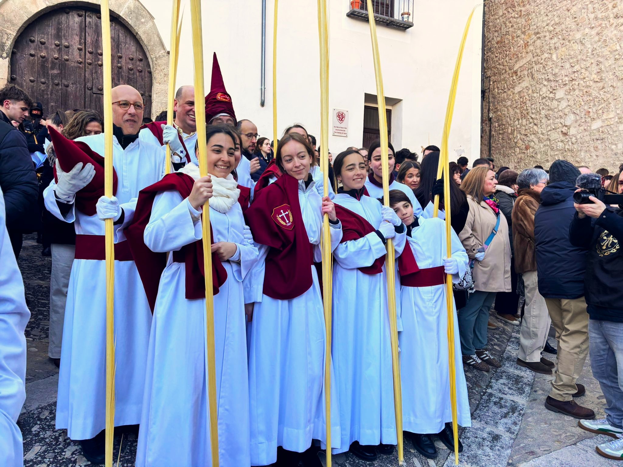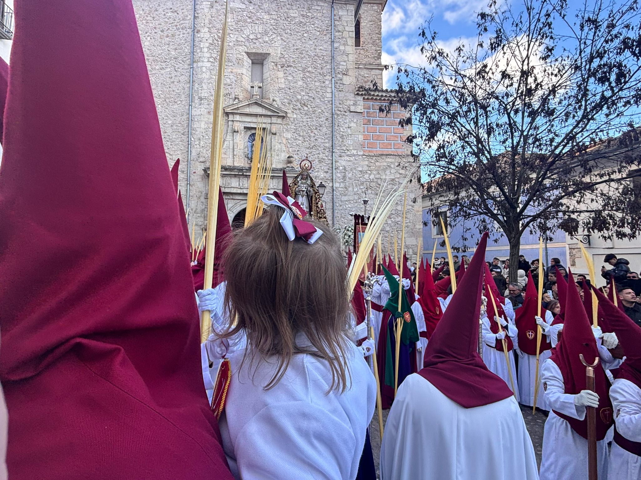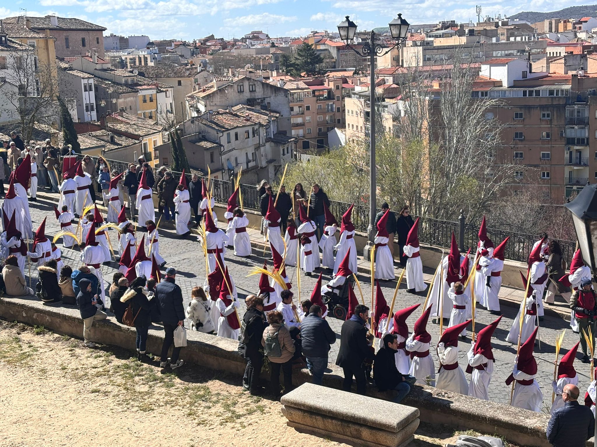 El sello de identidad del Domingo de Ramos de Cuenca son sus niños y niñas, este año bien abrigaditos para hacer frente a un frío que conspiraba con la fatiga. Los comentarios por la temperatura se multiplicaban en las aceras, pobladas pese a todo, porque la gente de esta tierra, como su ciudad, es impertérrita y hace falta algo más que un bravucón viento de componente norte para que un conquense se pierda la procesión del Hosanna.