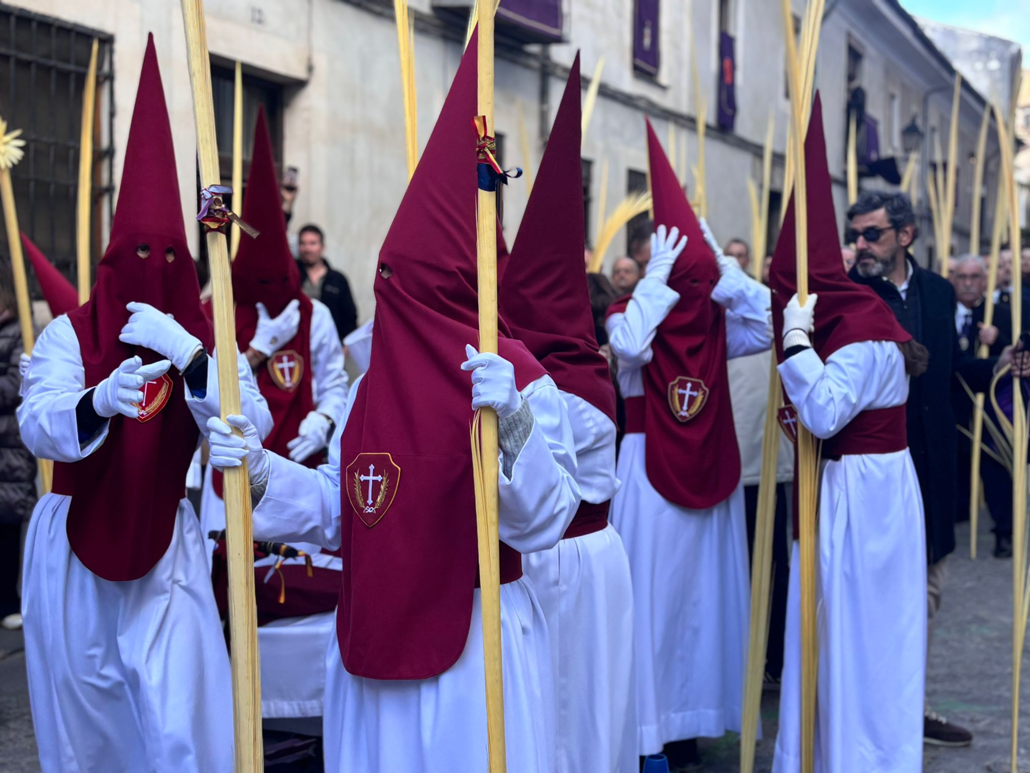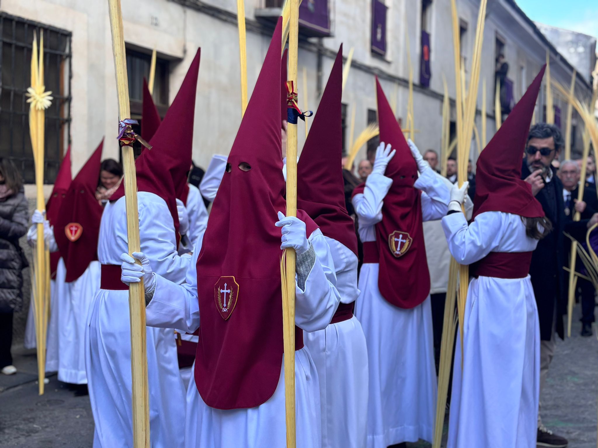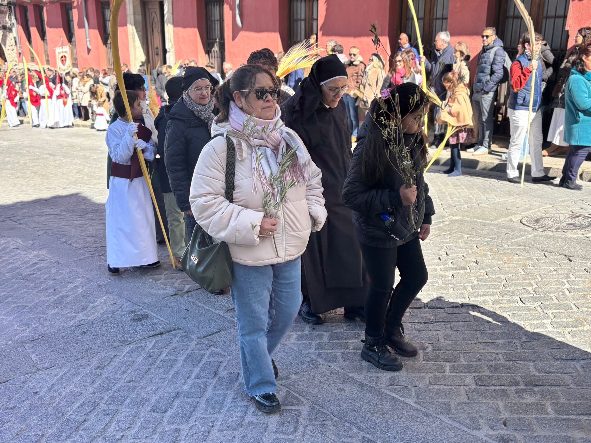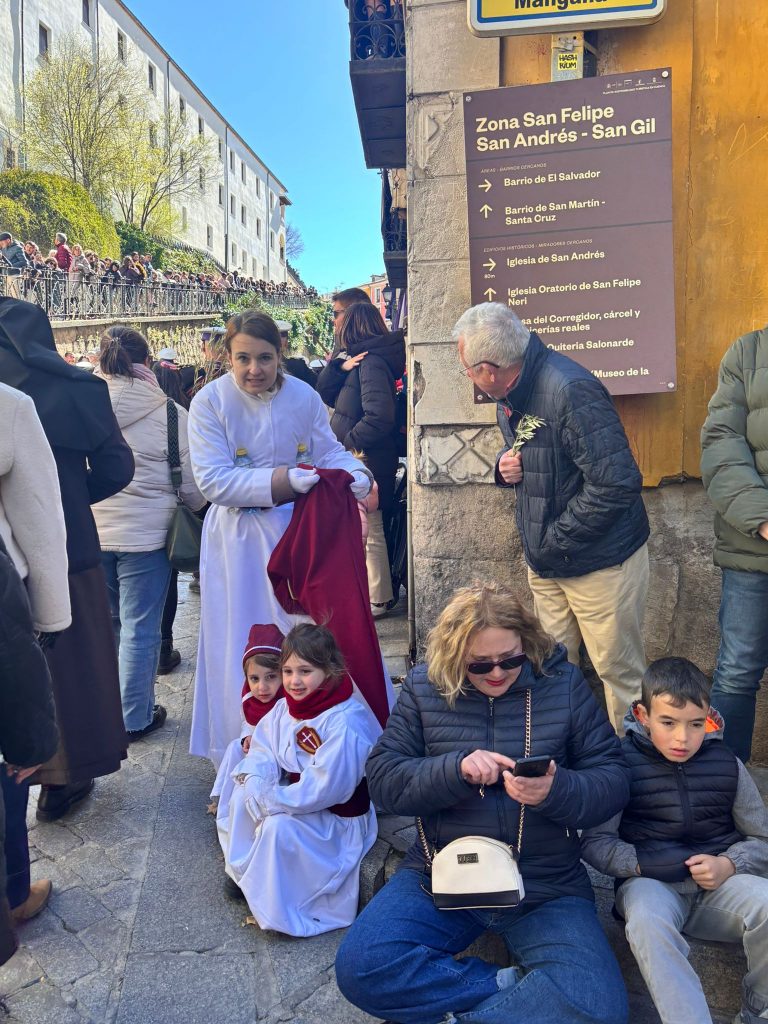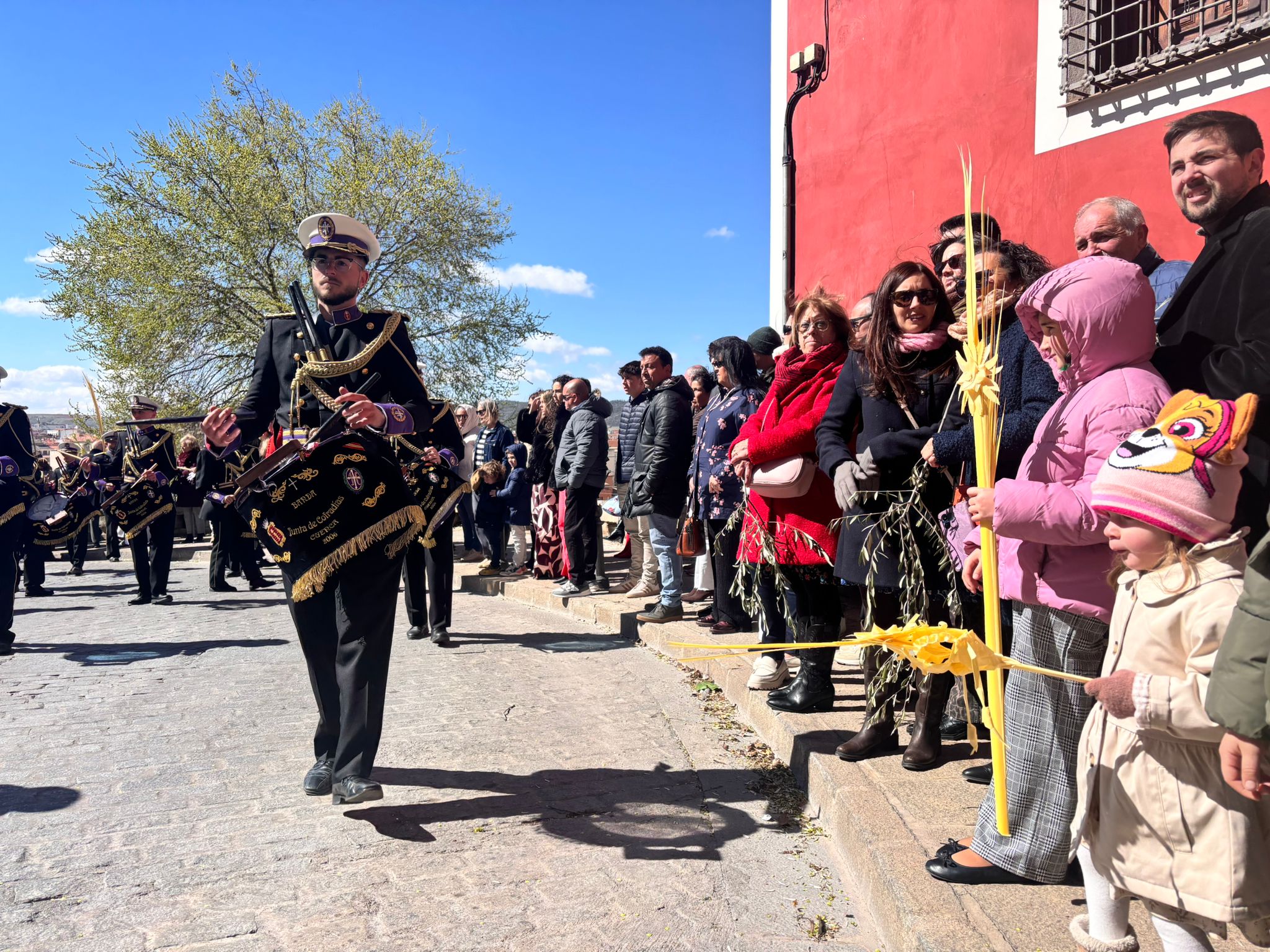 El sello de identidad del Domingo de Ramos de Cuenca son sus niños y niñas, este año bien abrigaditos para hacer frente a un frío que conspiraba con la fatiga. Los comentarios por la temperatura se multiplicaban en las aceras, pobladas pese a todo, porque la gente de esta tierra, como su ciudad, es impertérrita y hace falta algo más que un bravucón viento de componente norte para que un conquense se pierda la procesión del Hosanna.