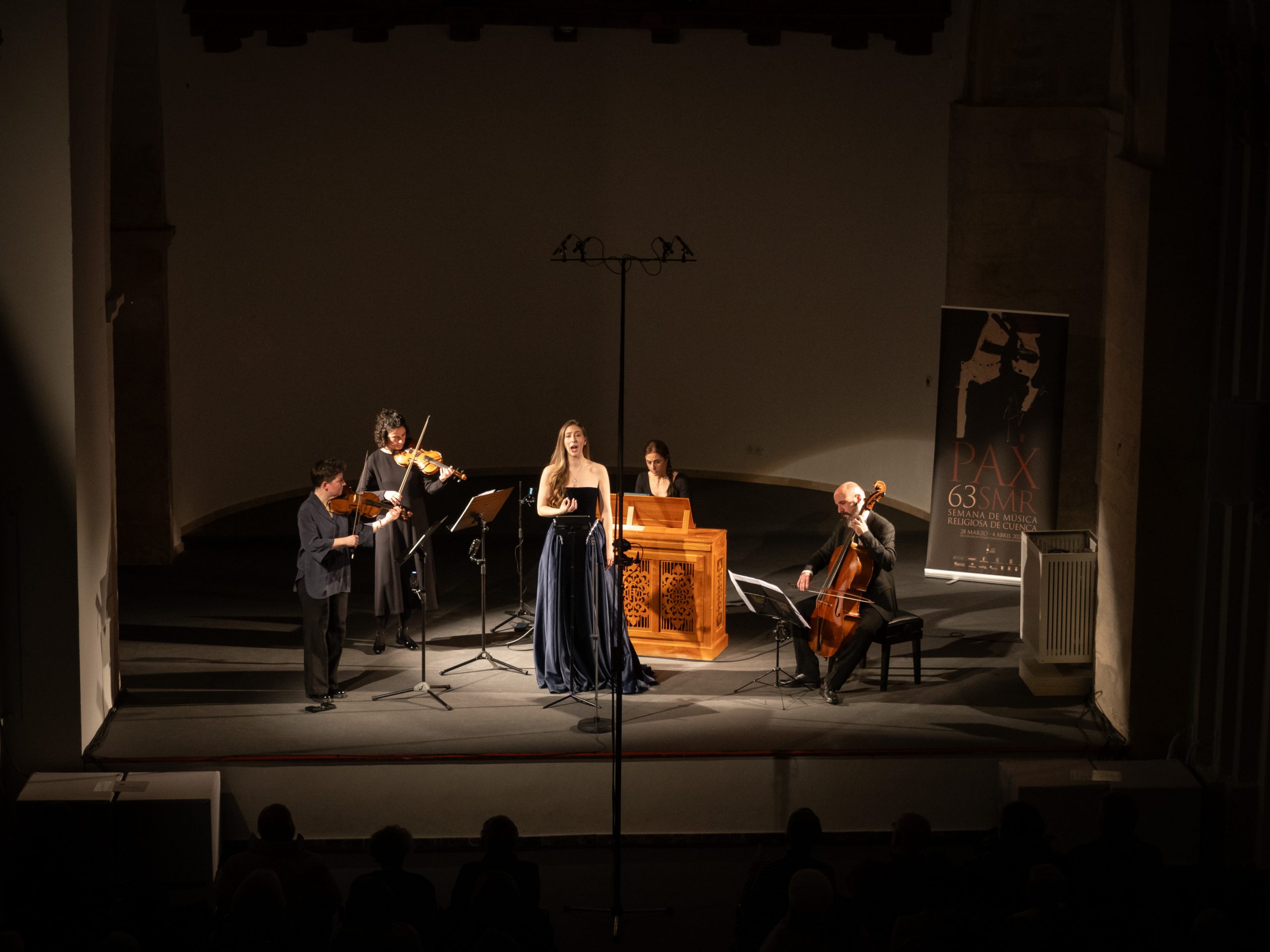 La soirée musical, confeccionada por cuatro motetes intercalados por dos sonatas, la Seconda e Terza, nos permite apreciar la exigente escritura vocal, de canto florido, comparable a Monteverdi, como la instrumental, con solos de violin tan cercanos a Corelli. Y una vez más, nos preguntamos por qué su mera condición femenina la resignó a ser eclipsada para la posteridad por sus coetáneos masculinos, siendo su arte compositivo tan excelso como único fue su periplo vital de monja ursulina, libre y muy bien conectada socialmente para ser, ya en su represiva época, tan apreciada artísticamente. Afortunadamente, 350 años más tarde, la SMR de Cuenca nos regala su música, magníficamente bien servida.
