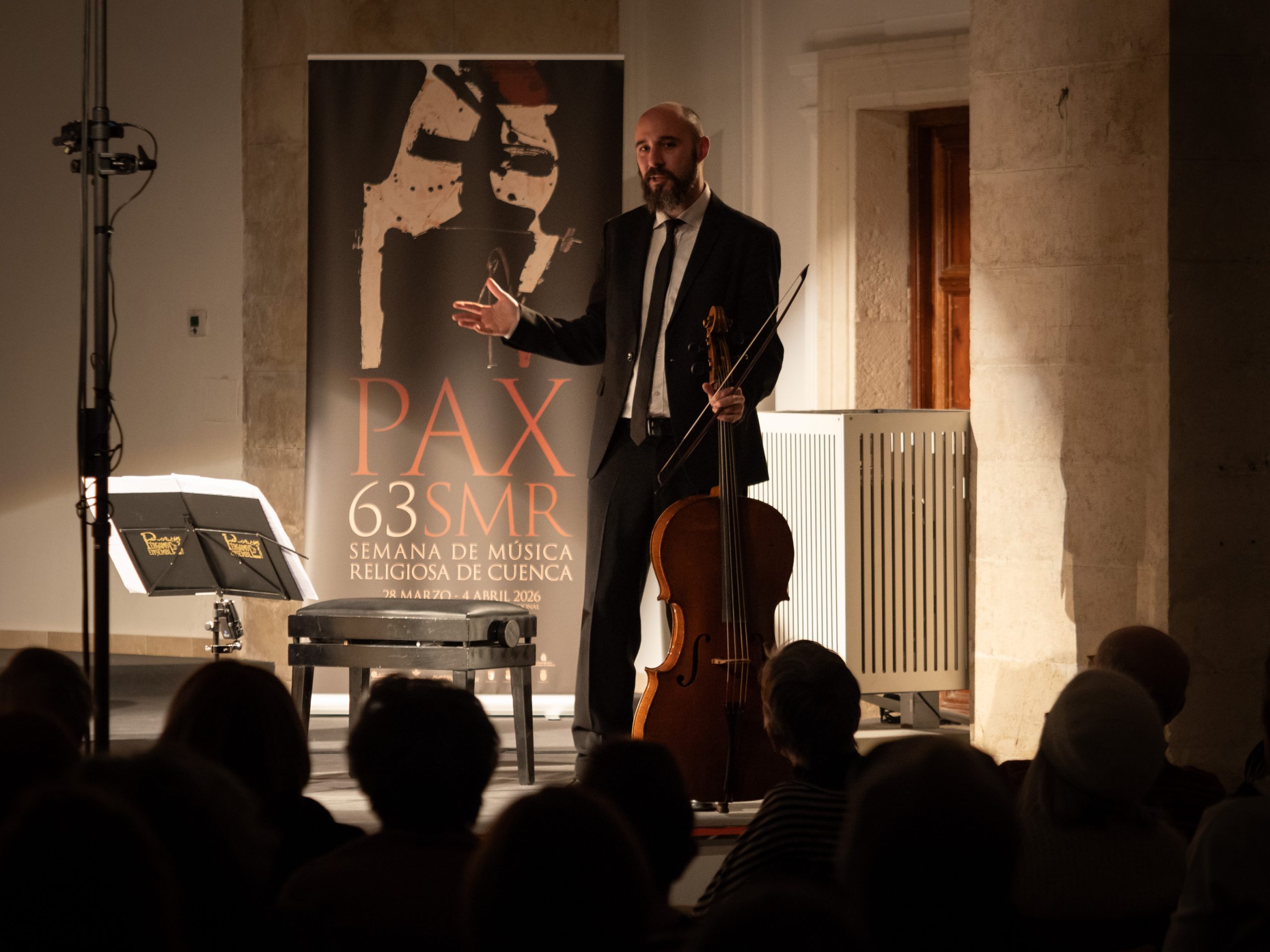 Dos citas componen la programación del martes 31 de marzo de la Semana de Música Religiosa de Cuenca. La primera de ellas tendrá lugar a las 17:00 horas en la Fundación Antonio Pérez, donde el violonchelista granadino Guillermo Pastrana presentará un programa que ha bautizado como Diálogo por la paz.