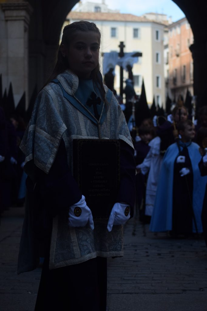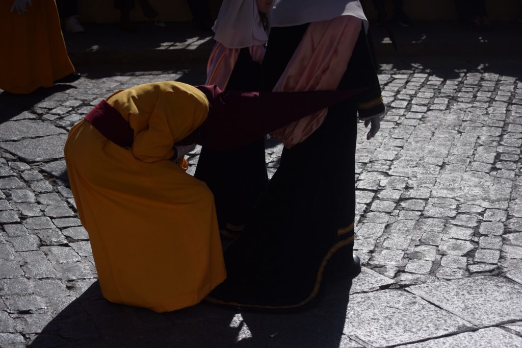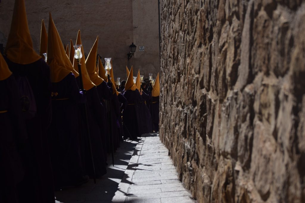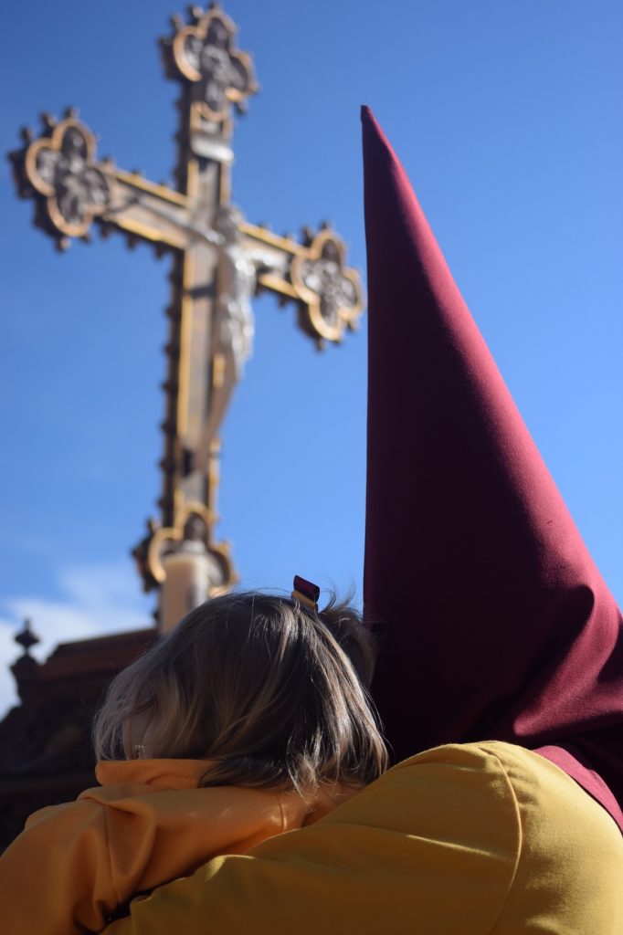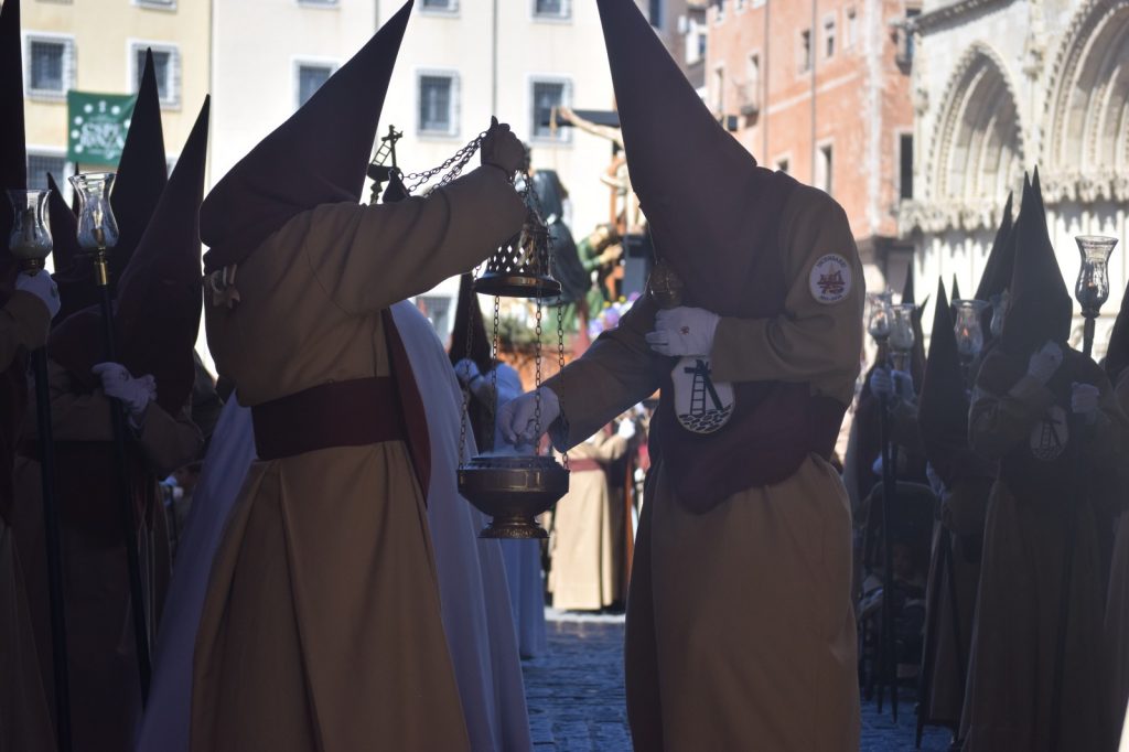 El Viernes Santo conquense, antes de ponerse el luto, viste hábitos de colores para que en Calvario, el Cristo que la ciudad ve perecer pueda marcharse con una última luz al otro lado.