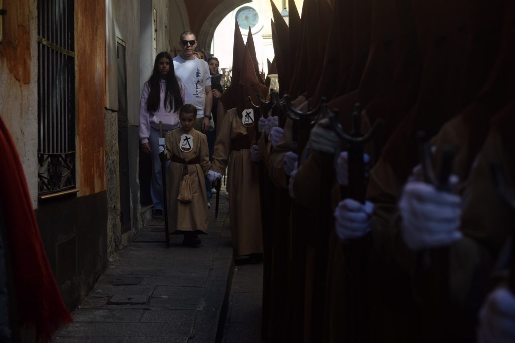 El dolor por los que se han ido se mitiga con la esperanza que se abre al ver las filas del Viernes Santo tan cargadas de niños, algunos tan precoces como la pequeña de Sara, que con apenas 26 días en el mundo ya viste de nazarena.