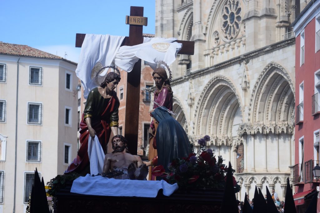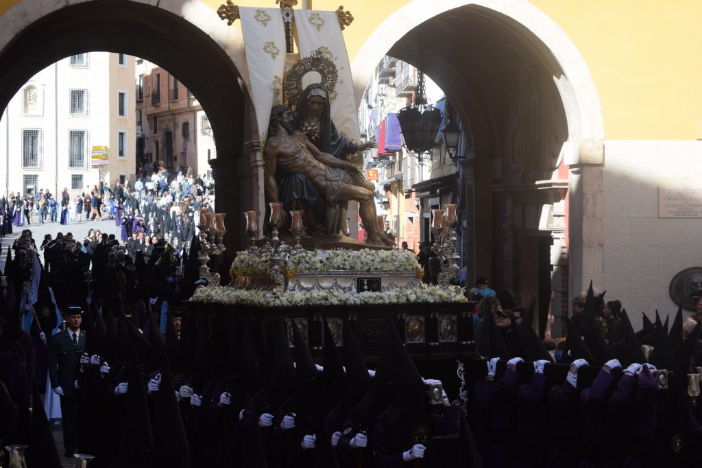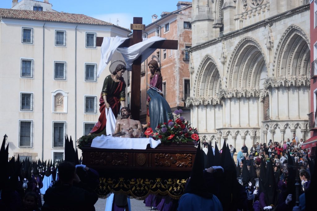 El desfile culminó en Las Concepcionistas, donde hay tantas personas como penas. Incluso el río Huécar parece dolido y gime cuando el Descendido y la Virgen de las Angustias se marchan. La procesión se vació y no quedaba ni rastro del color que había maquillado la tragedia. Se había impuesto el luto en la ciudad de Cuenca.