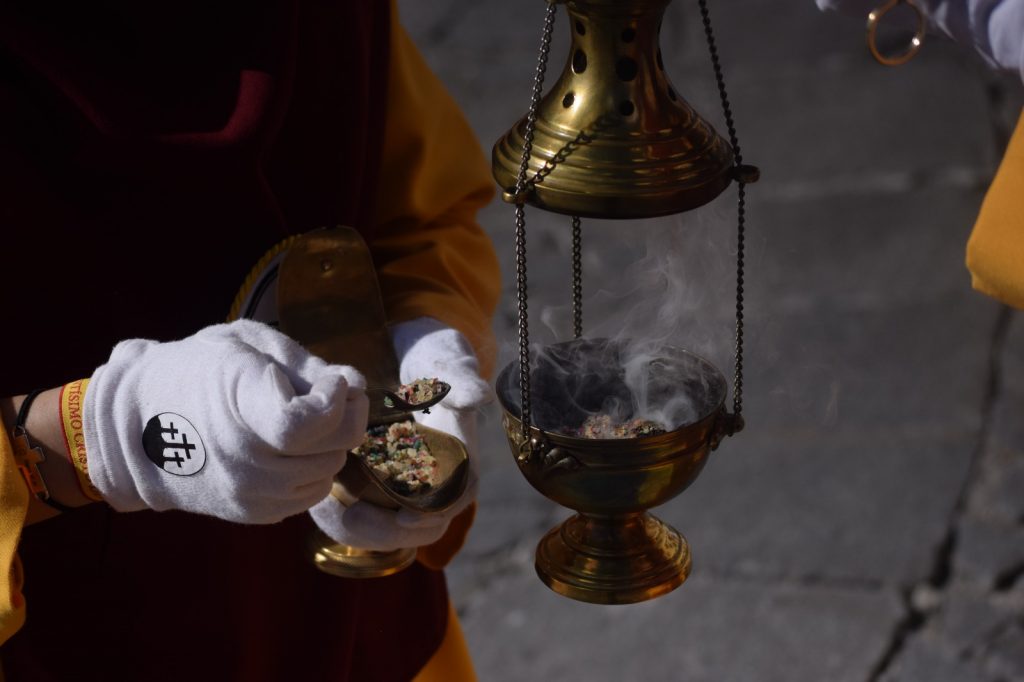 Como es habitual, la Virgen de las Angustias, que cerraba el cortejo, cruzó la plaza hasta el Palacio Episcopal para tomarse un descanso. Porque una madre puede llevar la pérdida de un hijo con infinita entereza, pero al final también necesita un minuto para llorar sin que nadie la vea.