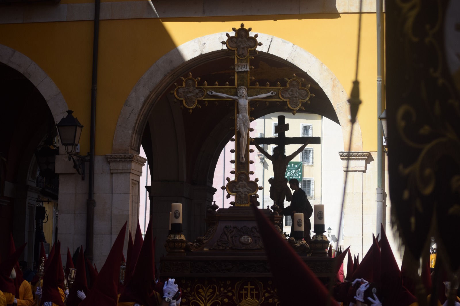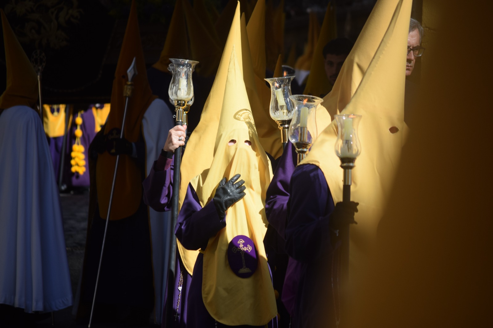El cortejo ha quedado al completo con la salida de la hermandad del Cristo de la Luz, con las imágenes de La Lanzada y el Cristo de los Espejos, que ocupan su lugar para que la procesión complete su orden narrativo. Con todos los pasos en su sitio, se descubría el drama que trataba de pasar desapercibido entre capuces, cetros e incienso.