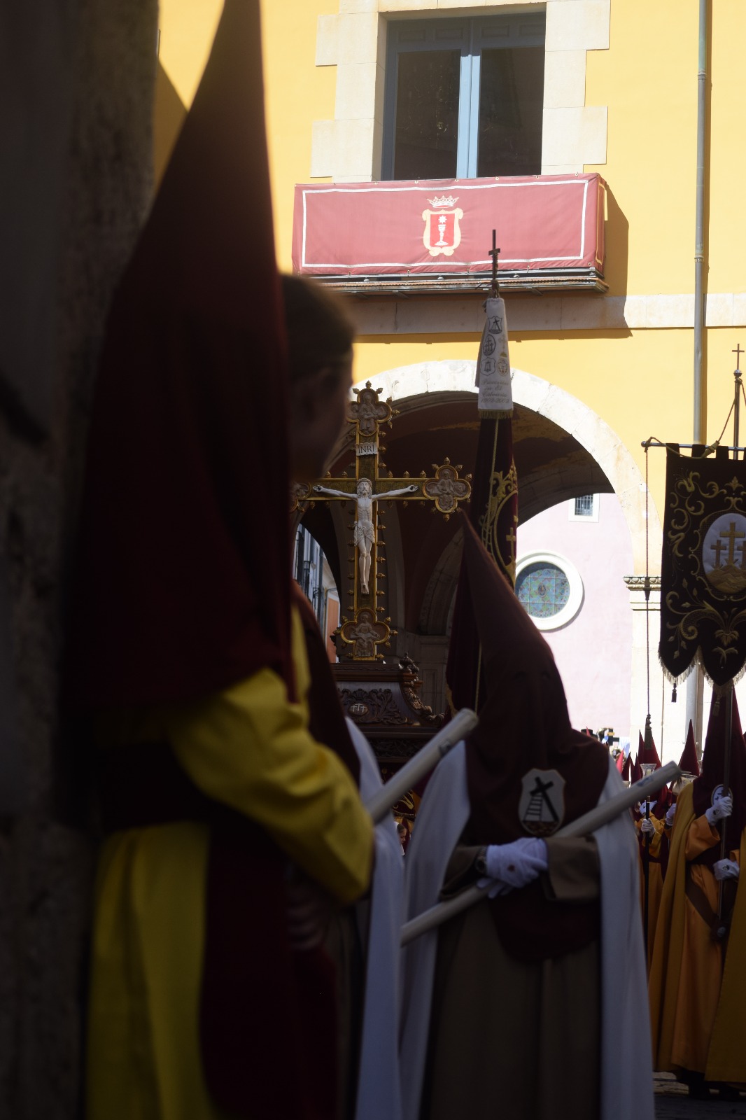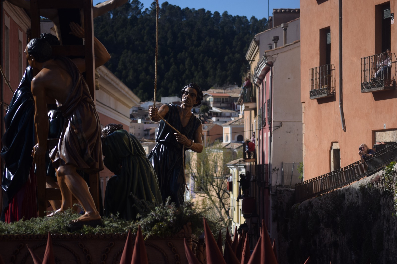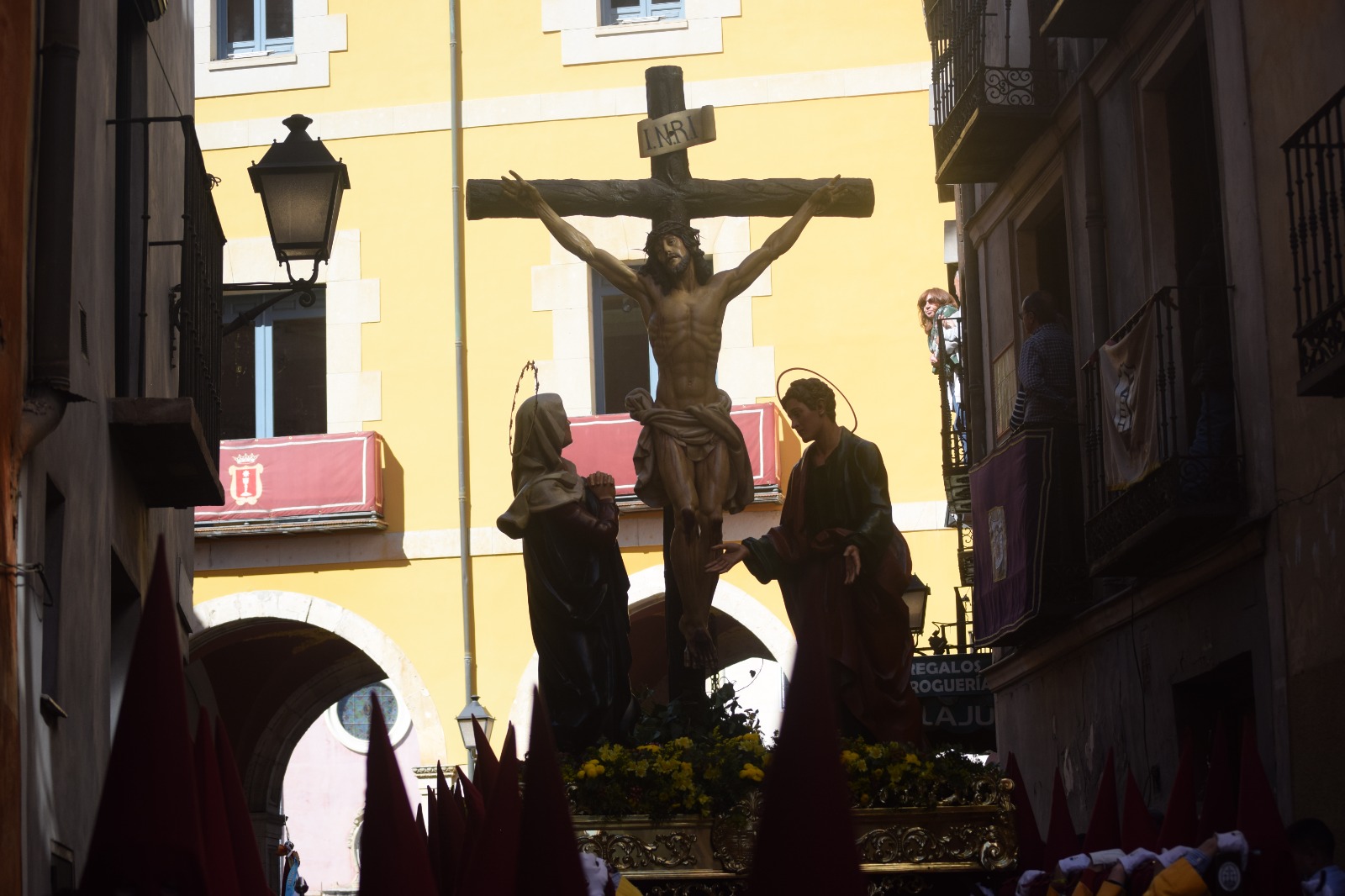 El Viernes Santo conquense, antes de ponerse el luto, viste hábitos de colores para que en Calvario, el Cristo que la ciudad ve perecer pueda marcharse con una última luz al otro lado.