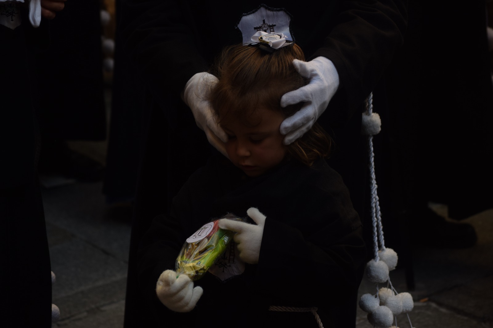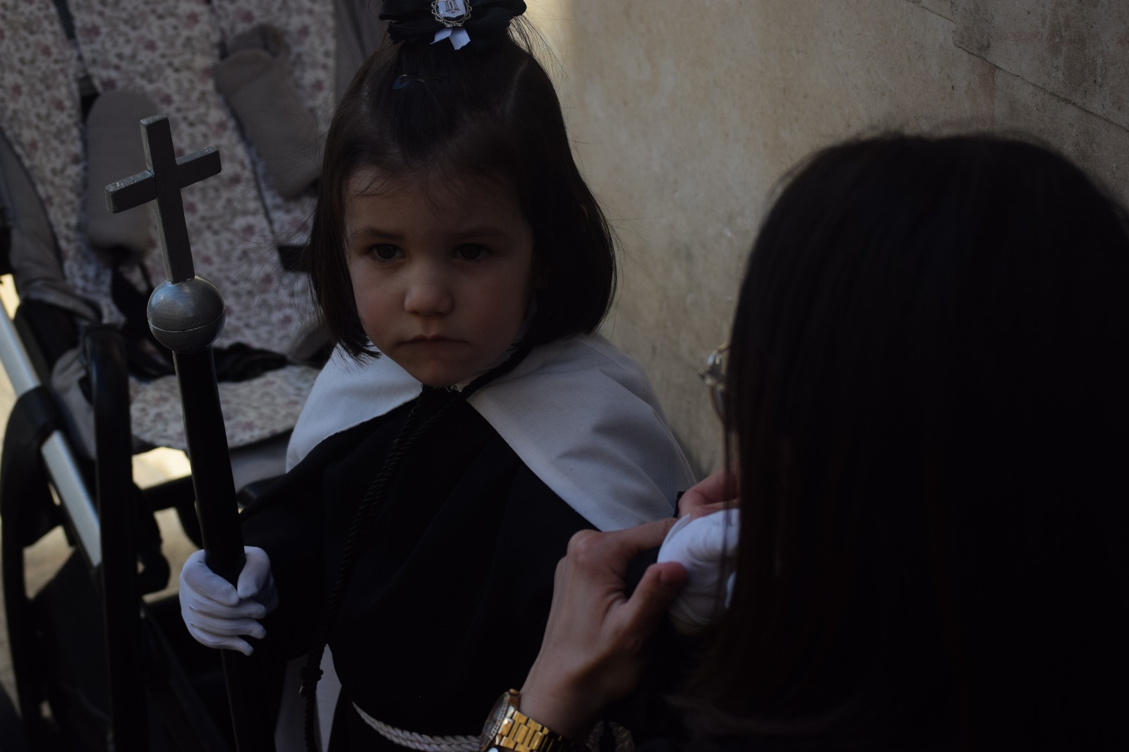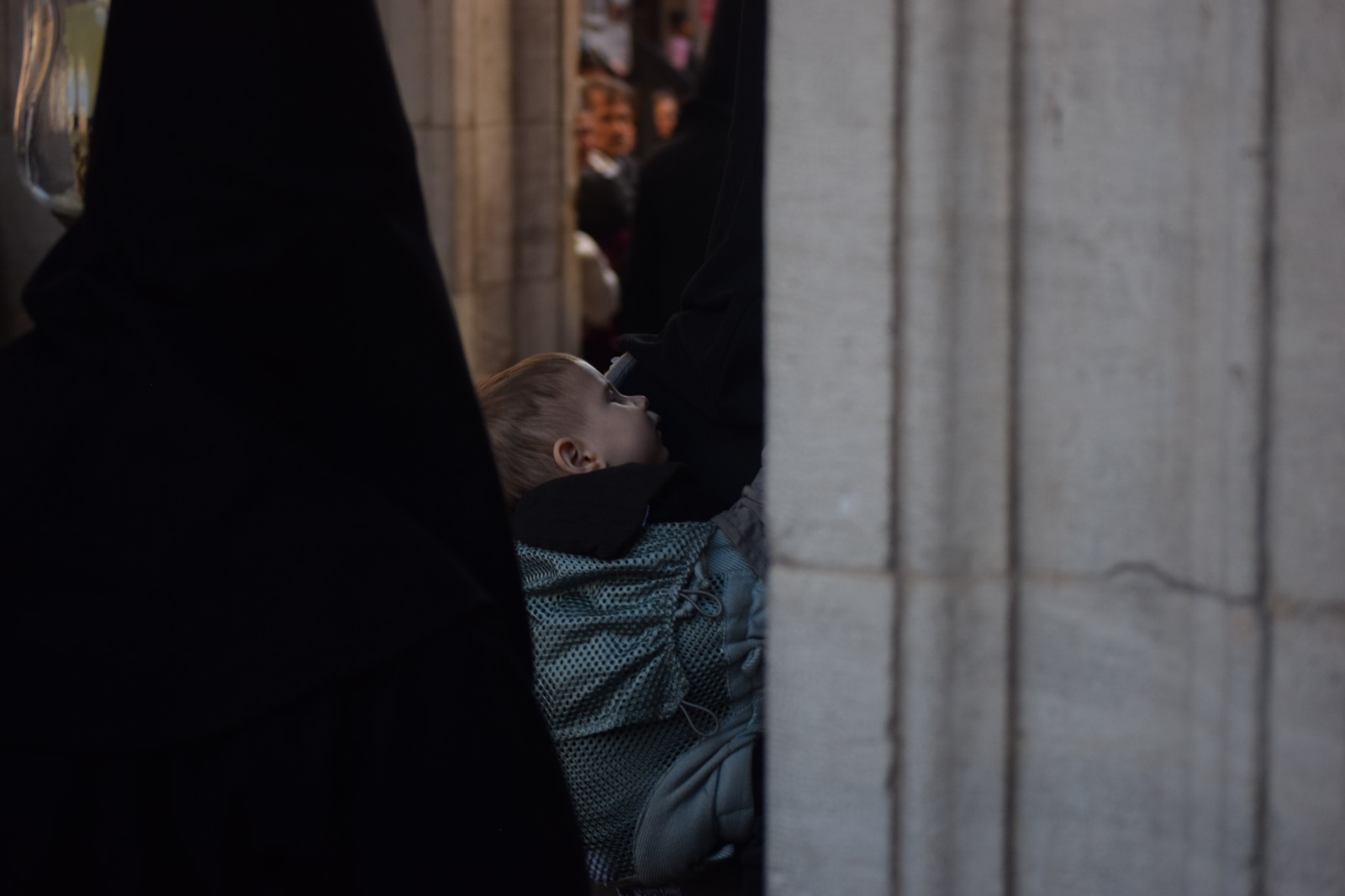 El dolor por los que se han ido se mitiga con la esperanza que se abre al ver las filas del Viernes Santo tan cargadas de niños, algunos tan precoces como la pequeña de Sara, que con apenas 26 días en el mundo ya viste de nazarena.