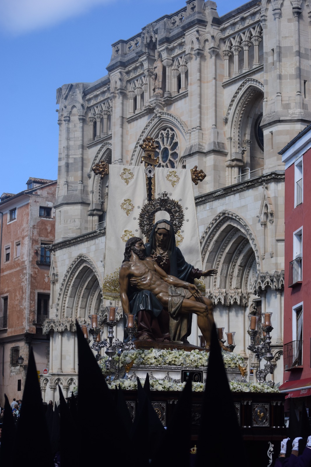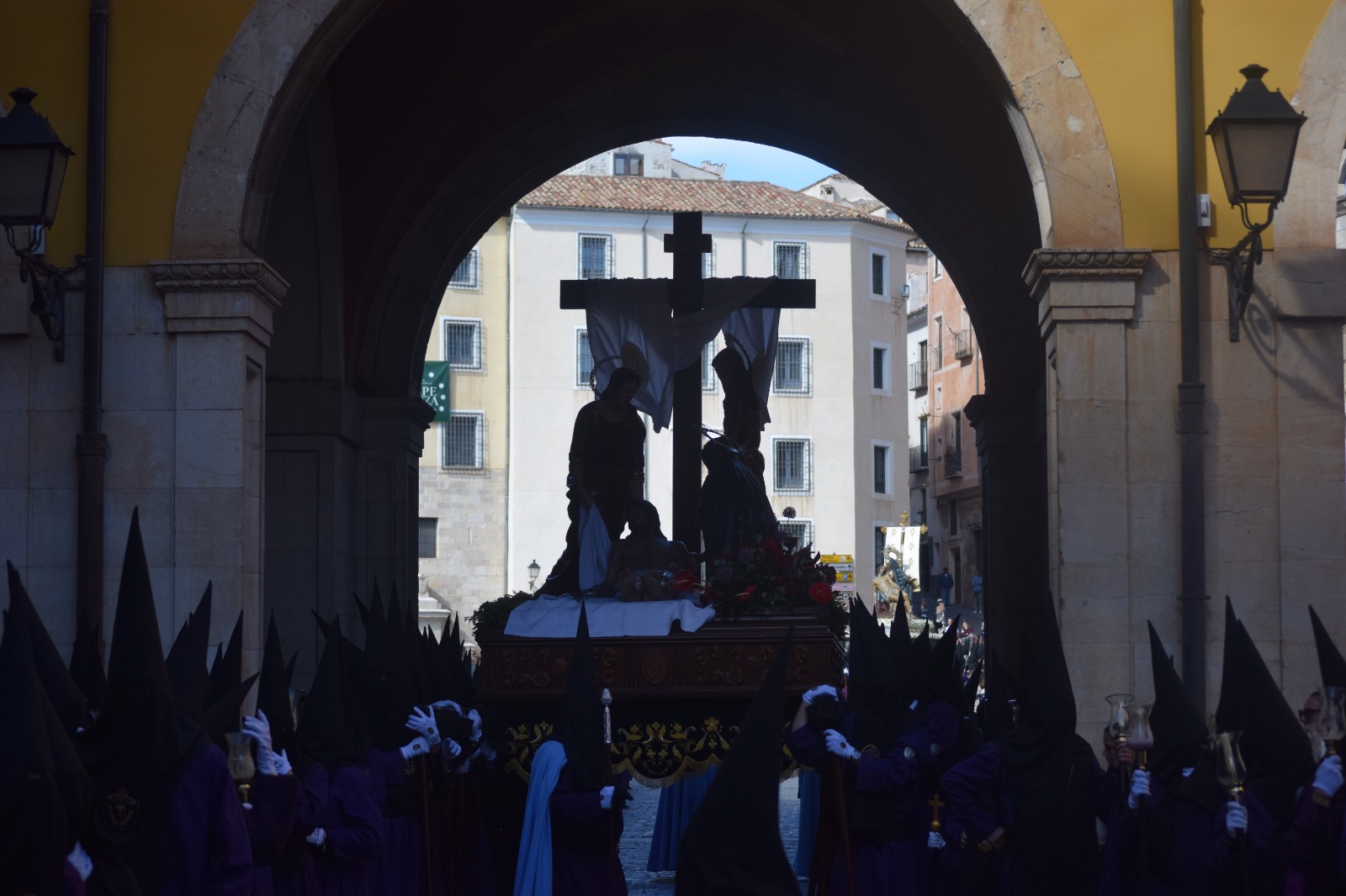 El desfile culminó en Las Concepcionistas, donde hay tantas personas como penas. Incluso el río Huécar parece dolido y gime cuando el Descendido y la Virgen de las Angustias se marchan. La procesión se vació y no quedaba ni rastro del color que había maquillado la tragedia. Se había impuesto el luto en la ciudad de Cuenca.