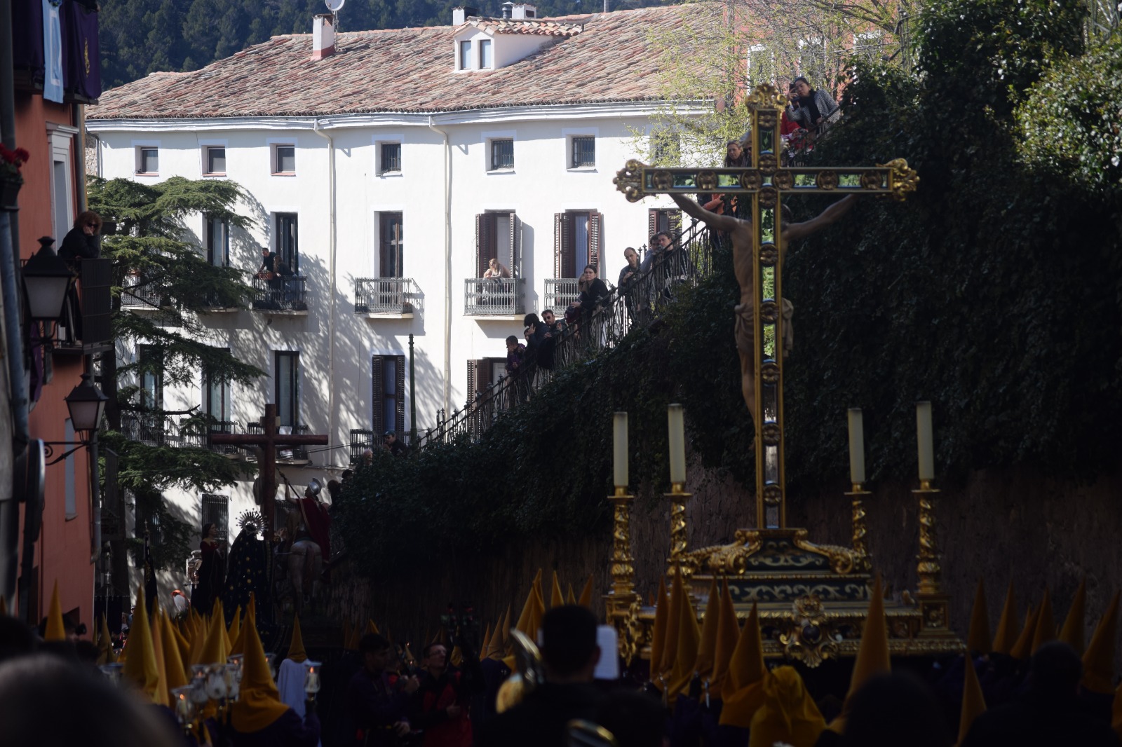 Durante su recorrido, la procesión ha dedicado pequeños momentos a algunos de los nazarenos que hoy contemplan el calvario desde el cielo, como Javier de León, Pedro Malo y Jesús Soriano. La Semana de Cuenca es su fe, su imaginería y su gente.