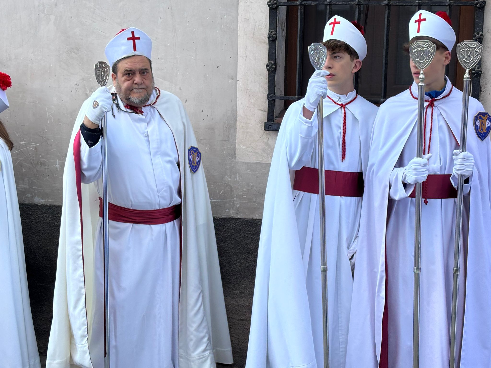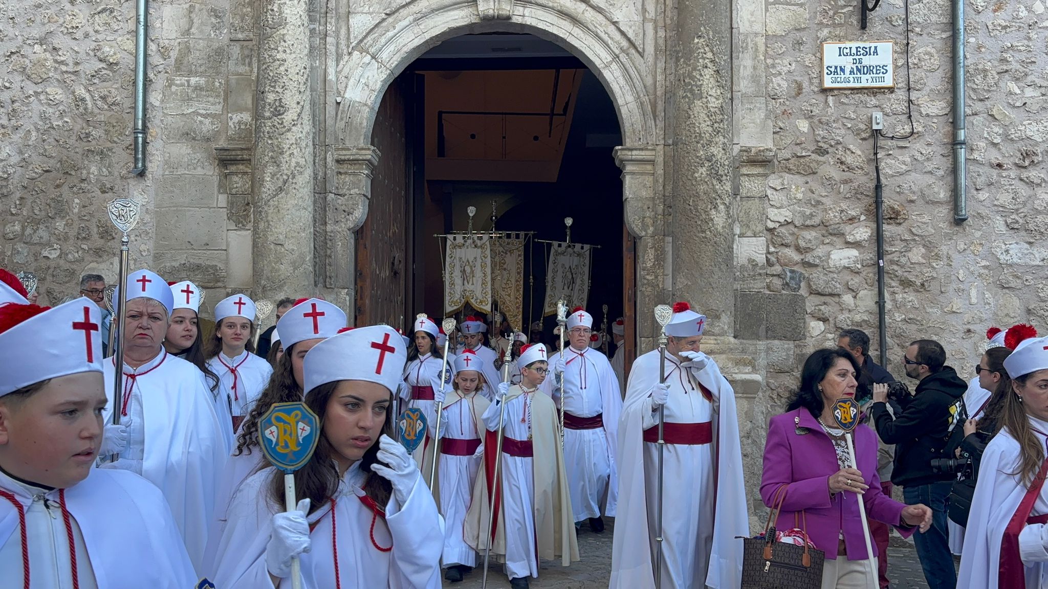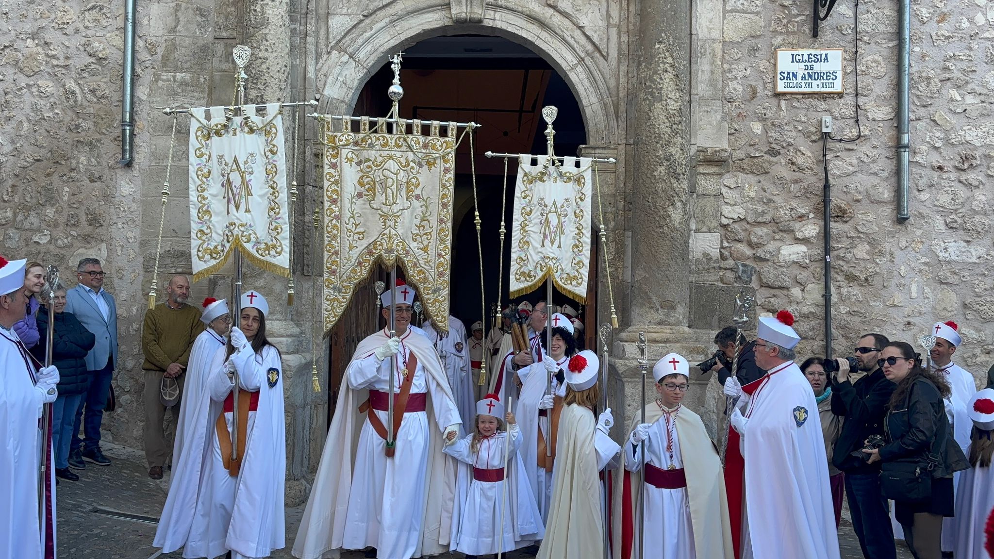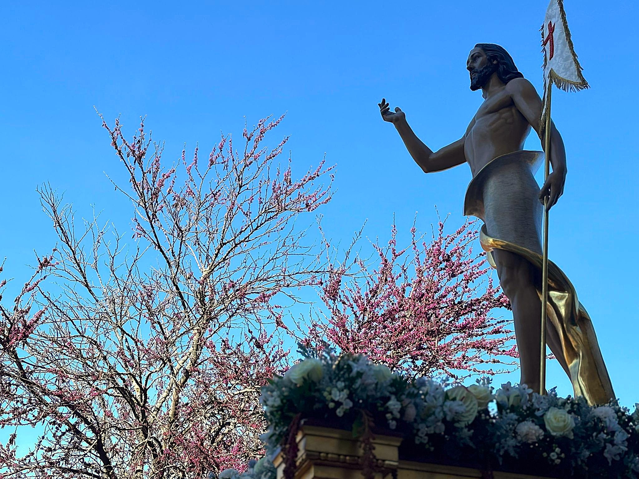 El Domingo de Resurrección es jubiloso por naturaleza, pero todavía es más alegre cuando una Semana Santa se cierra sin lágrimas perdidas en la lluvia. En San Andrés se concentran otras emociones: el encuentro antes de El Encuentro con los hermanos, los balances provisionales del resto de procesiones, los nervios entre bambalinas antes del desfile… Los rostros de la hermandad del Jesús Resucitado y la Virgen del Amparo son hoy los rostros de todos los nazarenos de Cuenca.