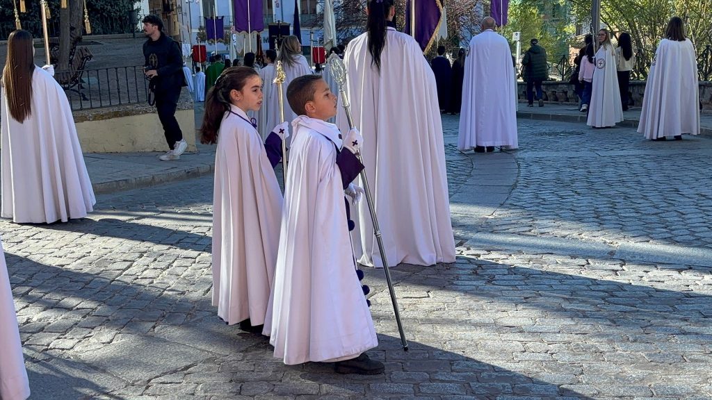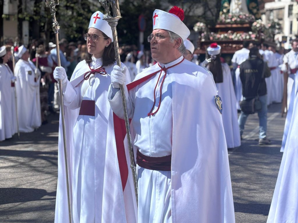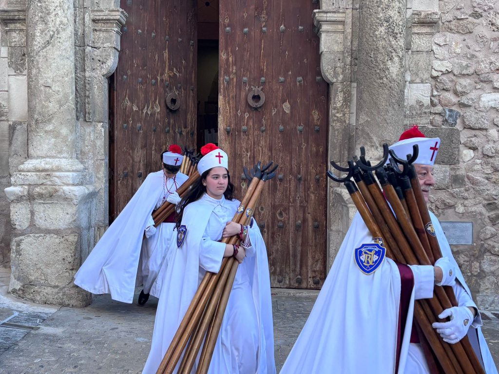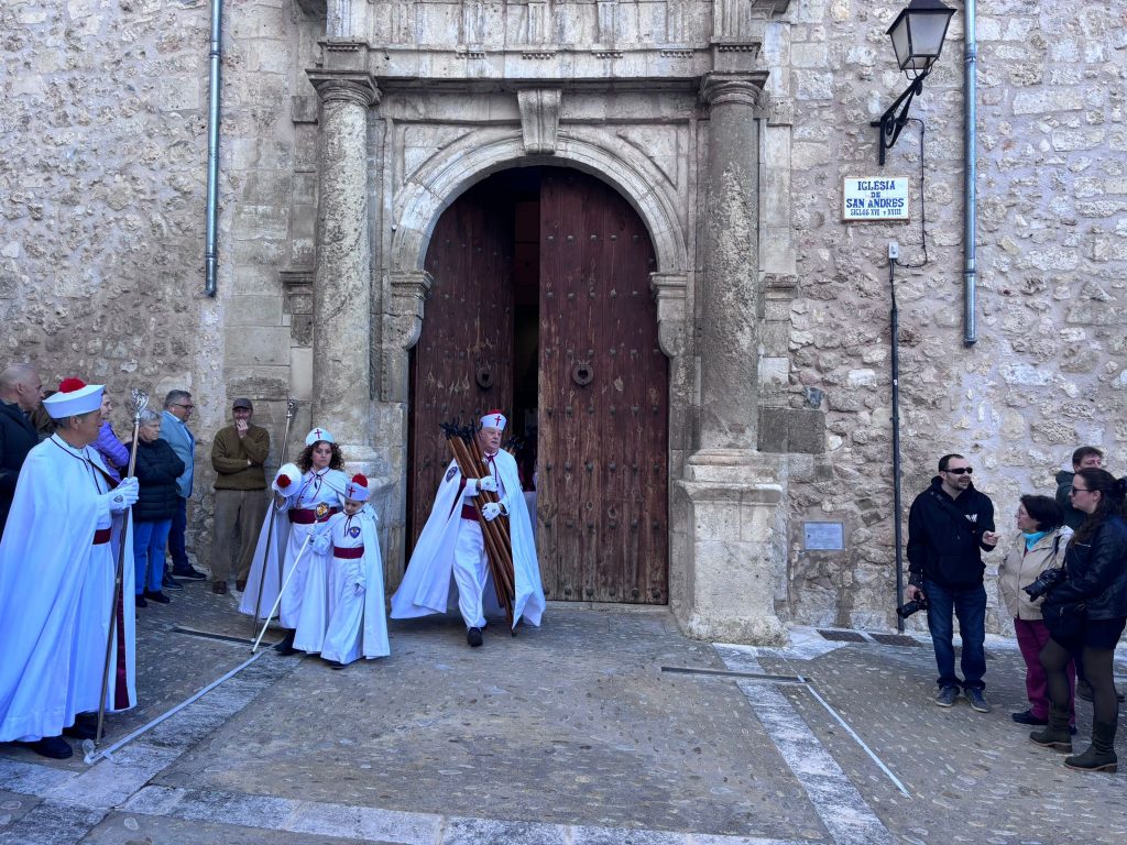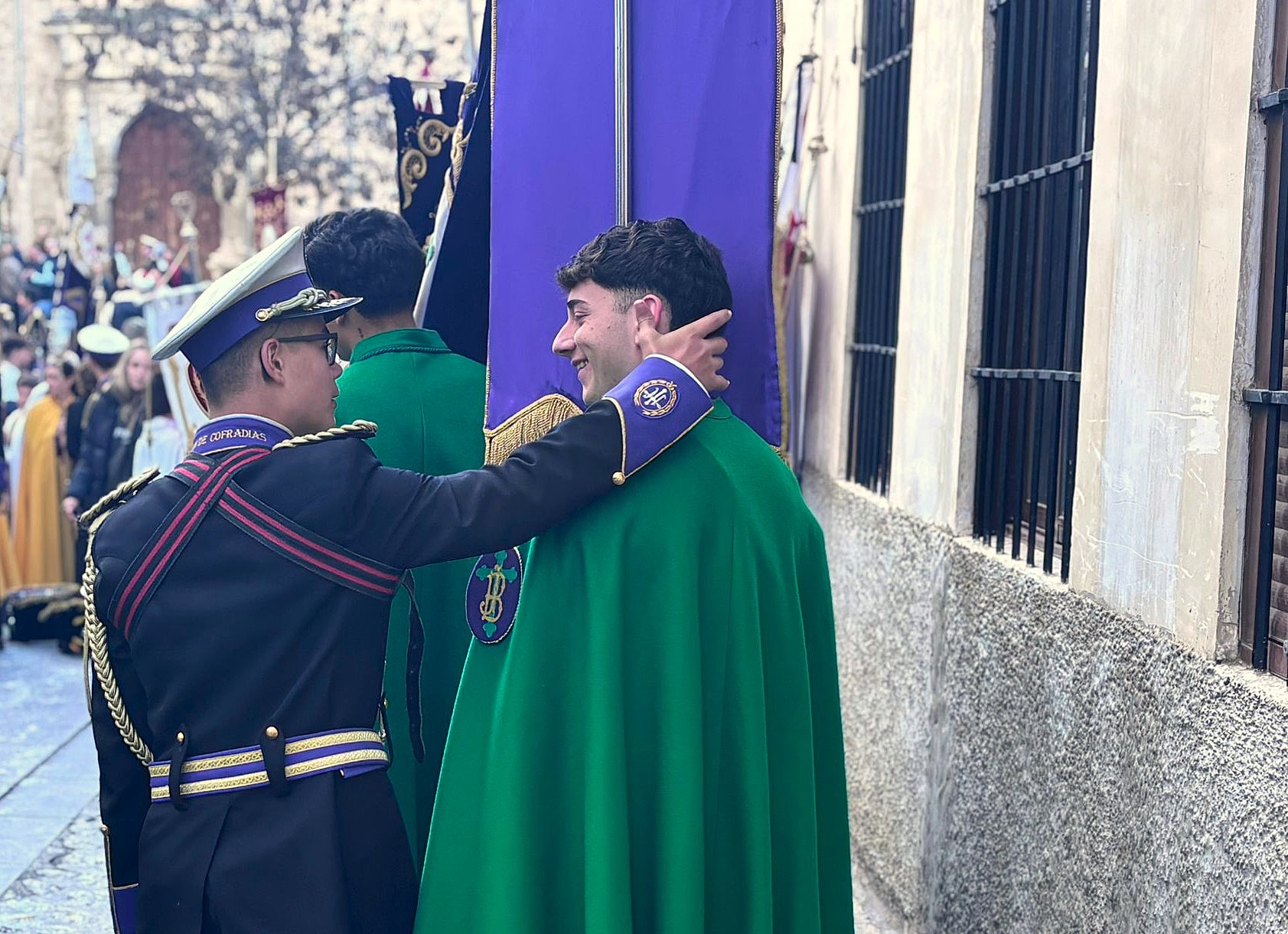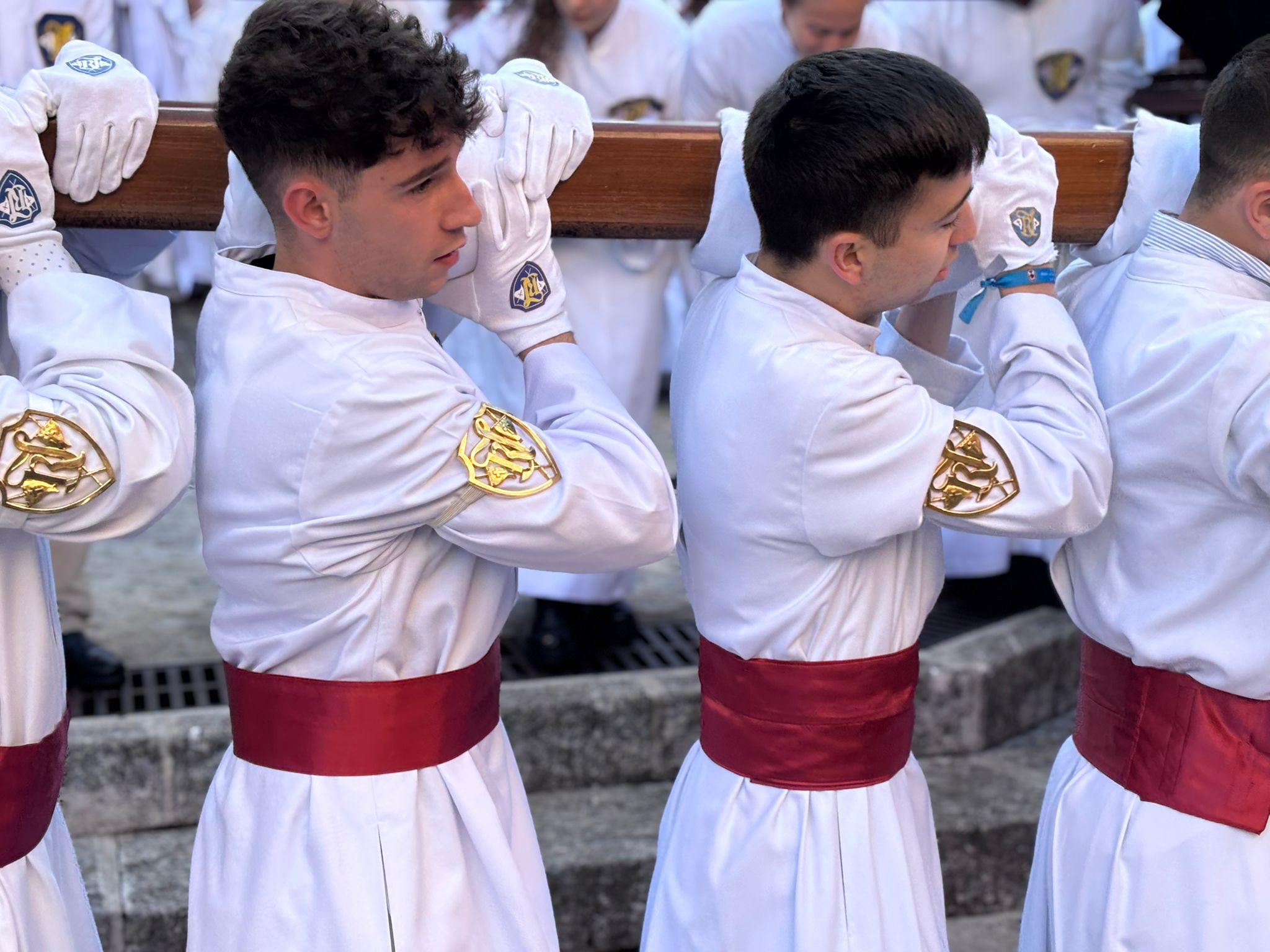 El Domingo de Resurrección es jubiloso por naturaleza, pero todavía es más alegre cuando una Semana Santa se cierra sin lágrimas perdidas en la lluvia. En San Andrés se concentran otras emociones: el encuentro antes de El Encuentro con los hermanos, los balances provisionales del resto de procesiones, los nervios entre bambalinas antes del desfile… Los rostros de la hermandad del Jesús Resucitado y la Virgen del Amparo son hoy los rostros de todos los nazarenos de Cuenca.