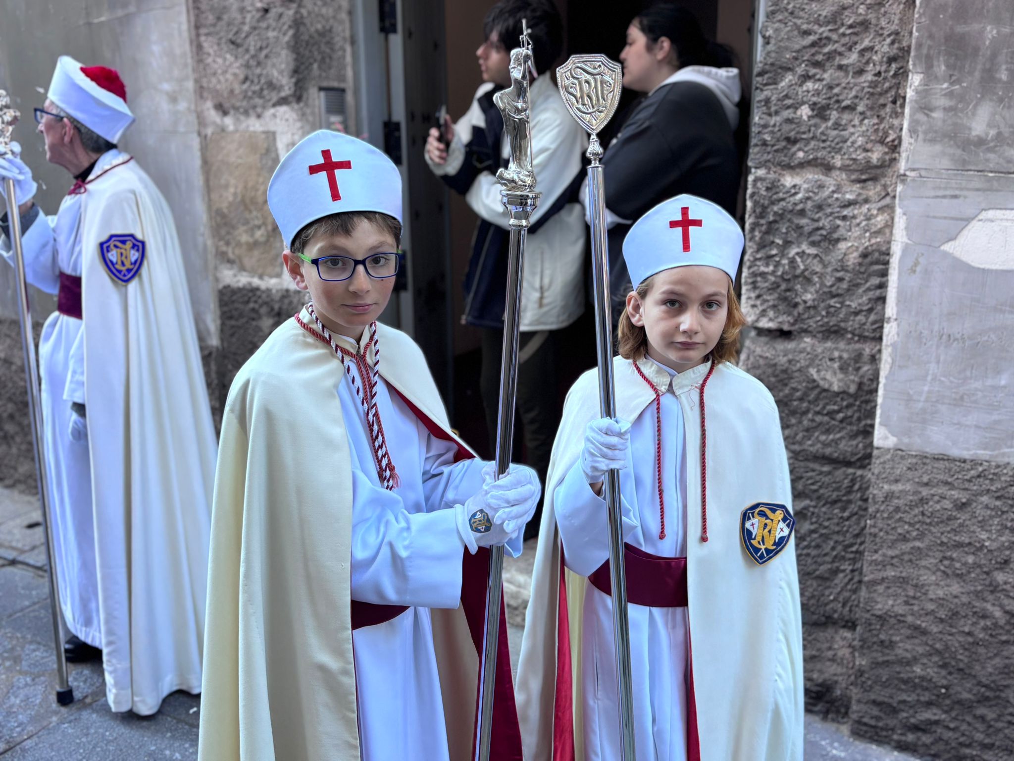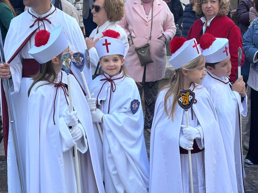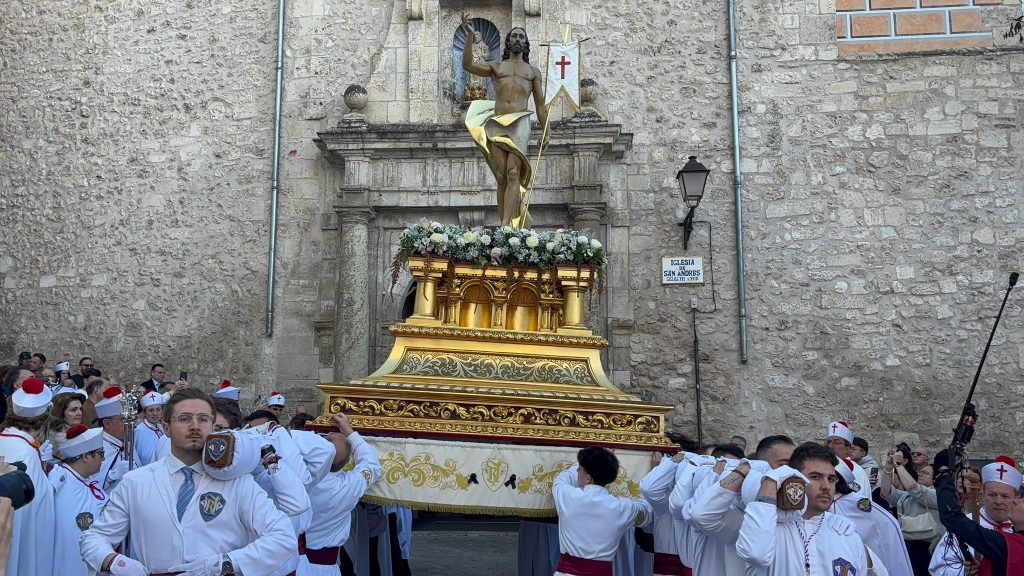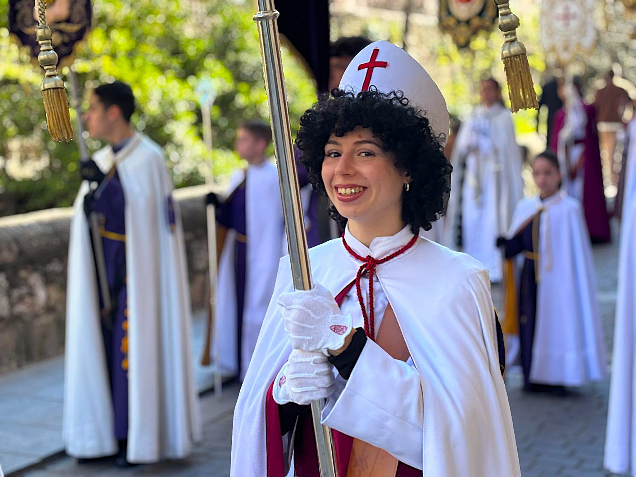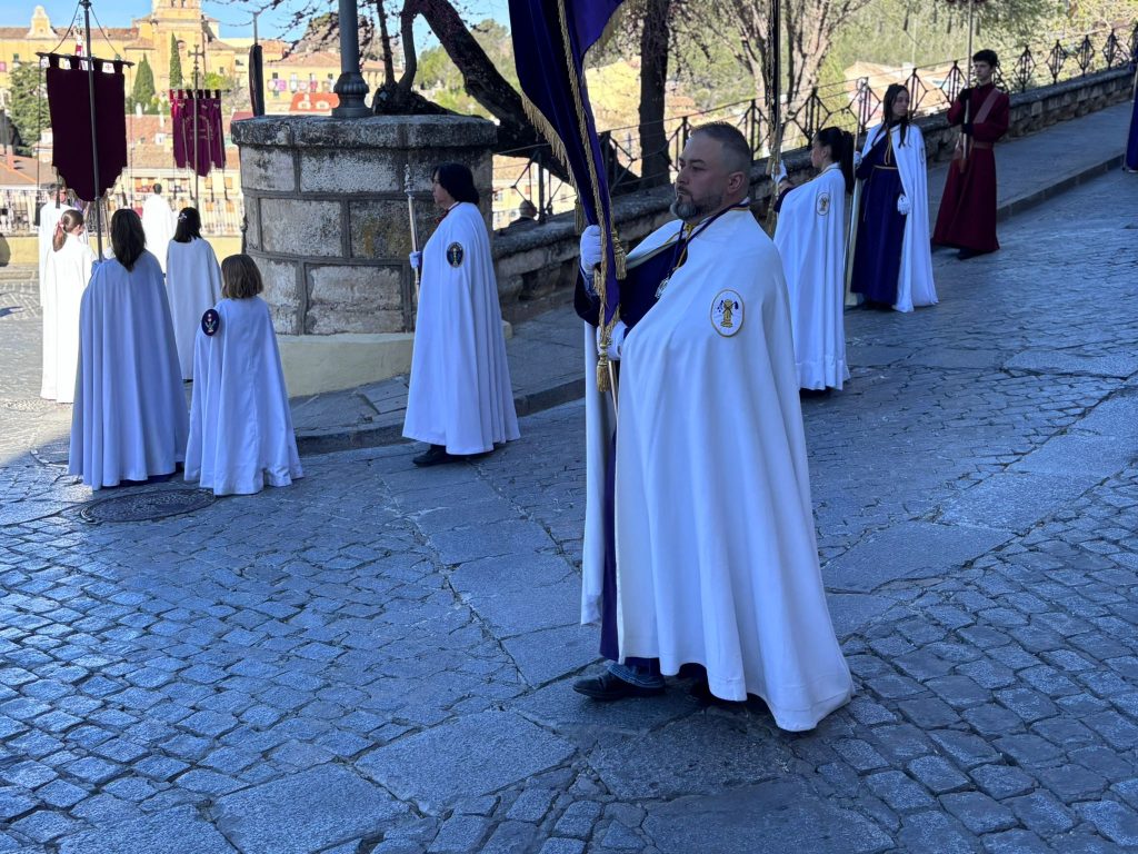 El Domingo de Resurrección es jubiloso por naturaleza, pero todavía es más alegre cuando una Semana Santa se cierra sin lágrimas perdidas en la lluvia. En San Andrés se concentran otras emociones: el encuentro antes de El Encuentro con los hermanos, los balances provisionales del resto de procesiones, los nervios entre bambalinas antes del desfile… Los rostros de la hermandad del Jesús Resucitado y la Virgen del Amparo son hoy los rostros de todos los nazarenos de Cuenca.