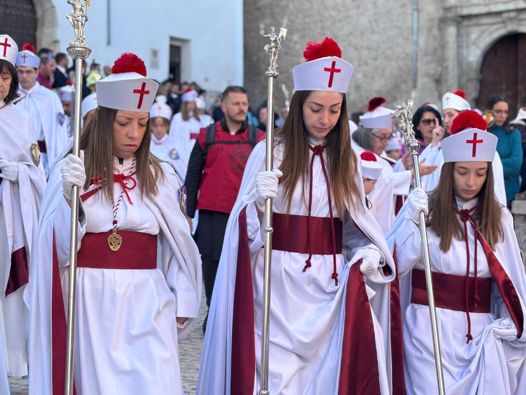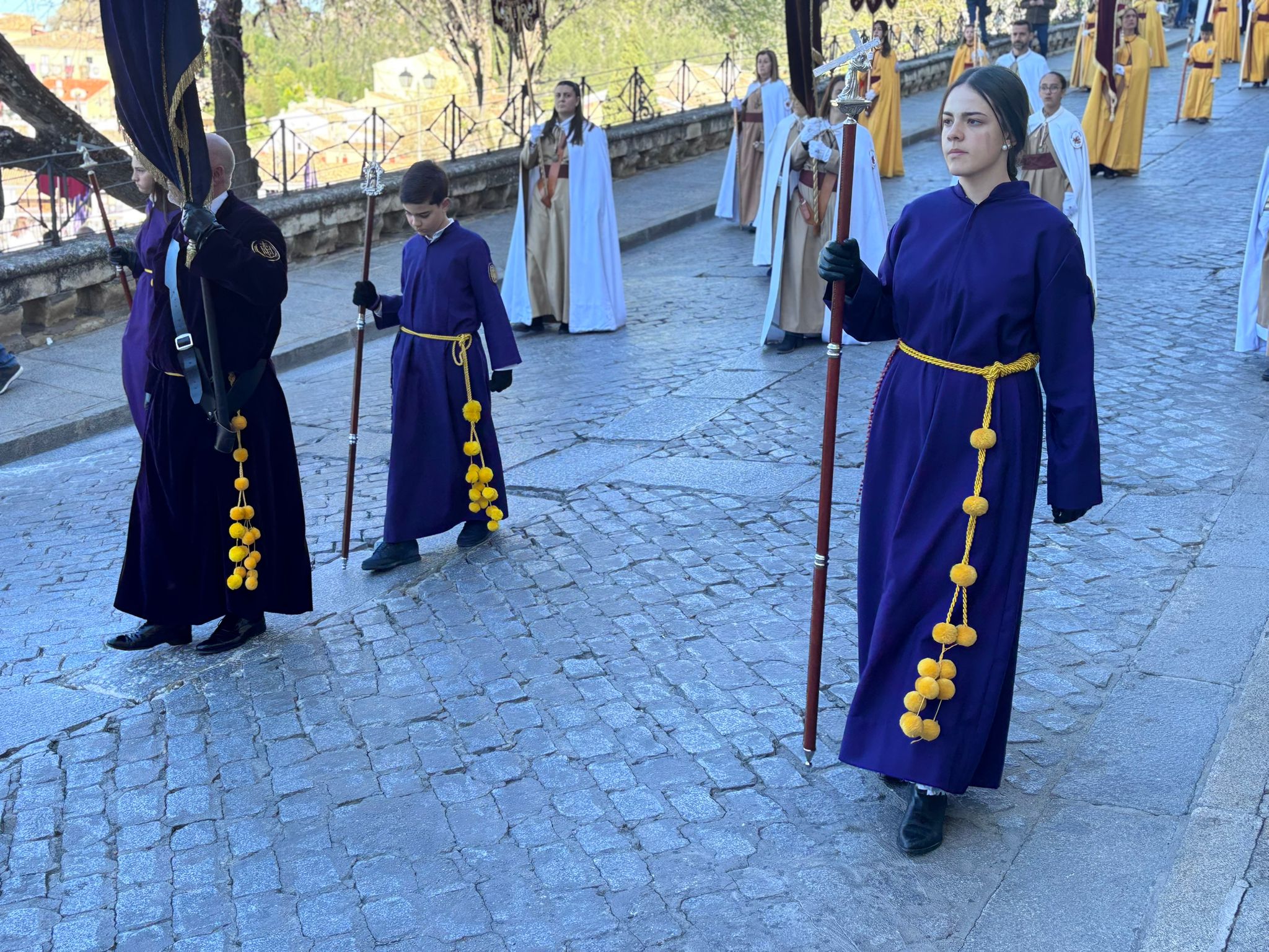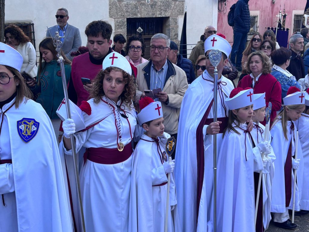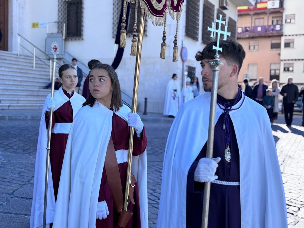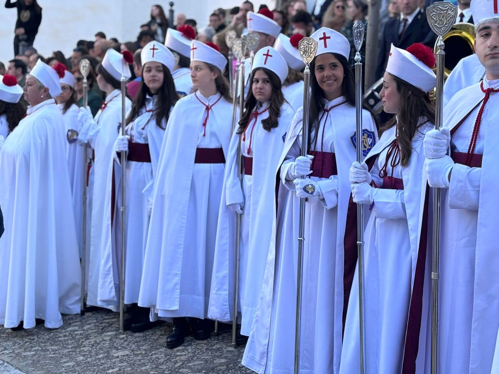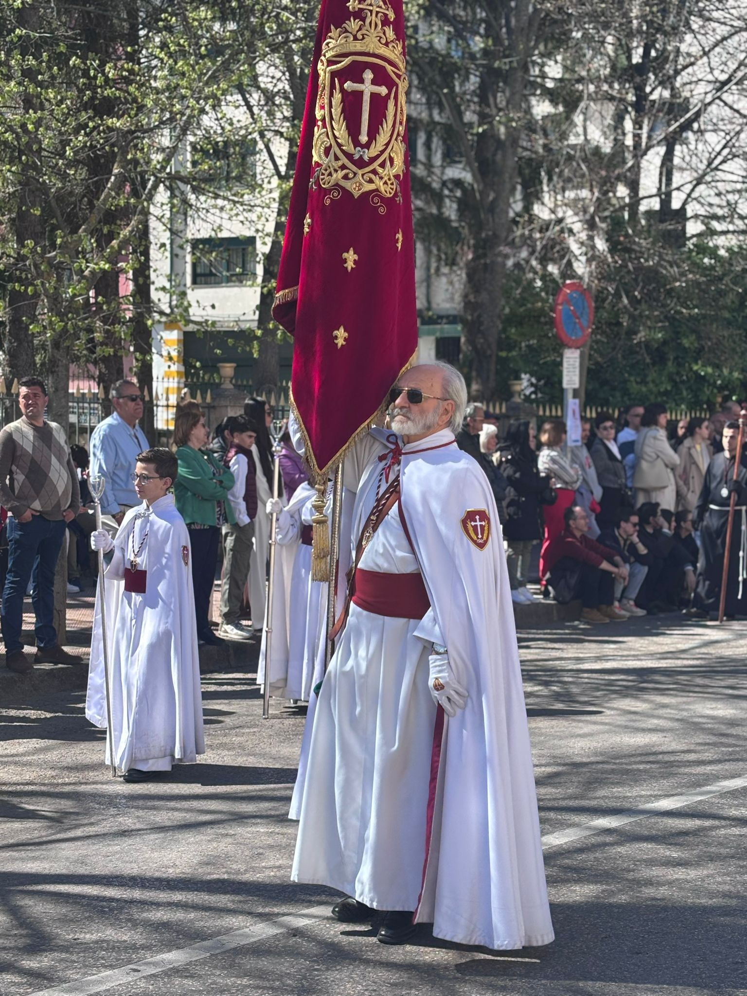 El Domingo de Resurrección es jubiloso por naturaleza, pero todavía es más alegre cuando una Semana Santa se cierra sin lágrimas perdidas en la lluvia. En San Andrés se concentran otras emociones: el encuentro antes de El Encuentro con los hermanos, los balances provisionales del resto de procesiones, los nervios entre bambalinas antes del desfile… Los rostros de la hermandad del Jesús Resucitado y la Virgen del Amparo son hoy los rostros de todos los nazarenos de Cuenca.