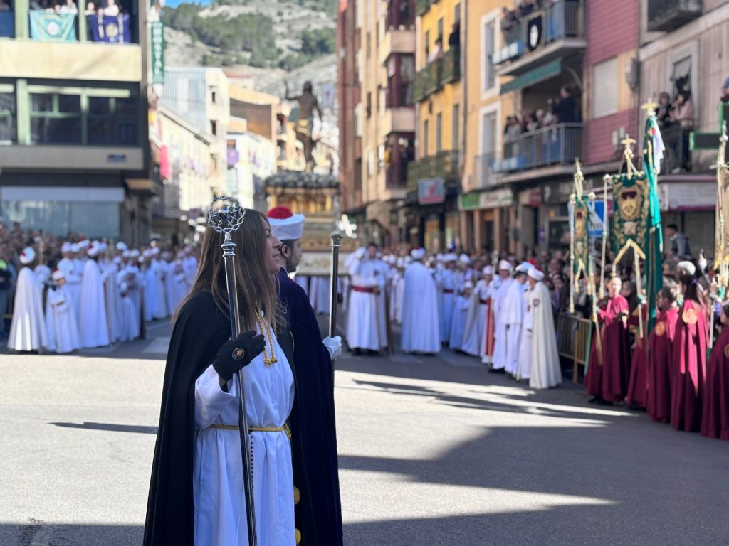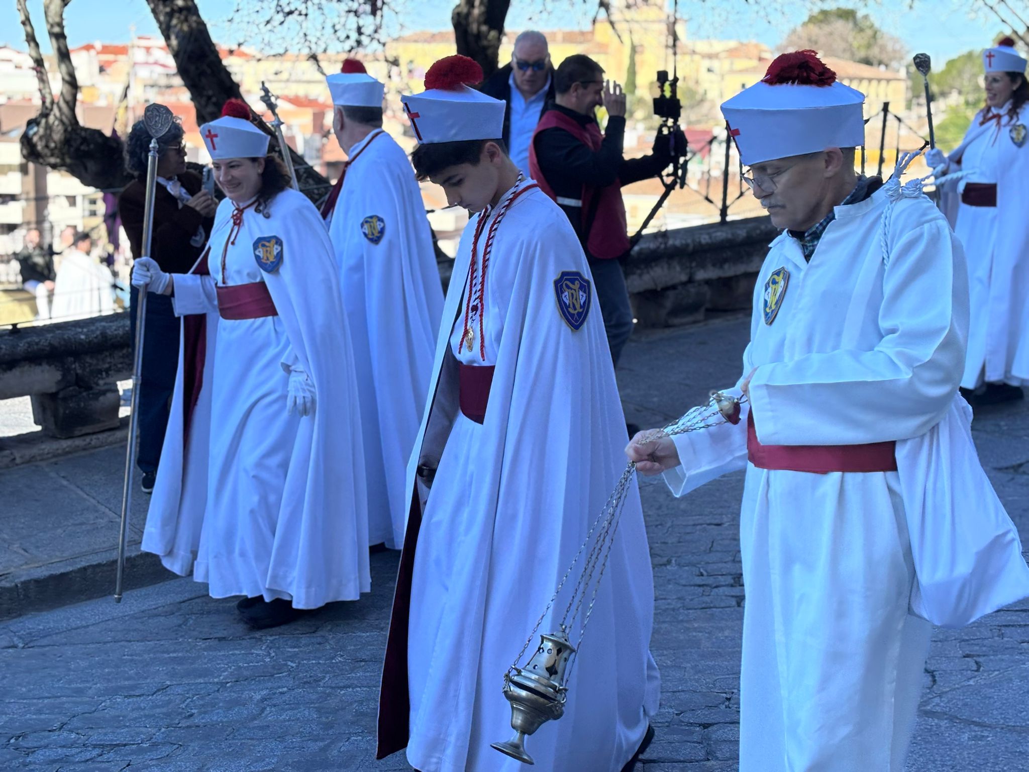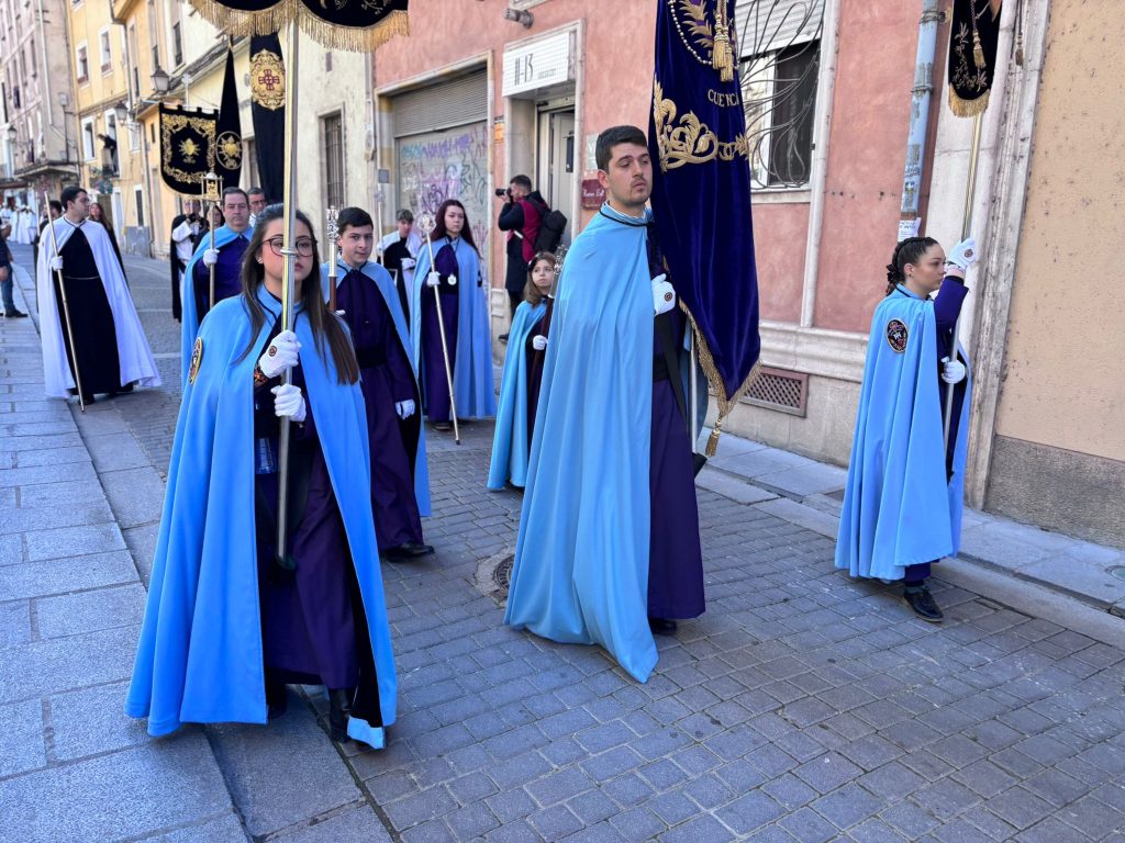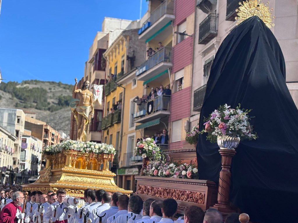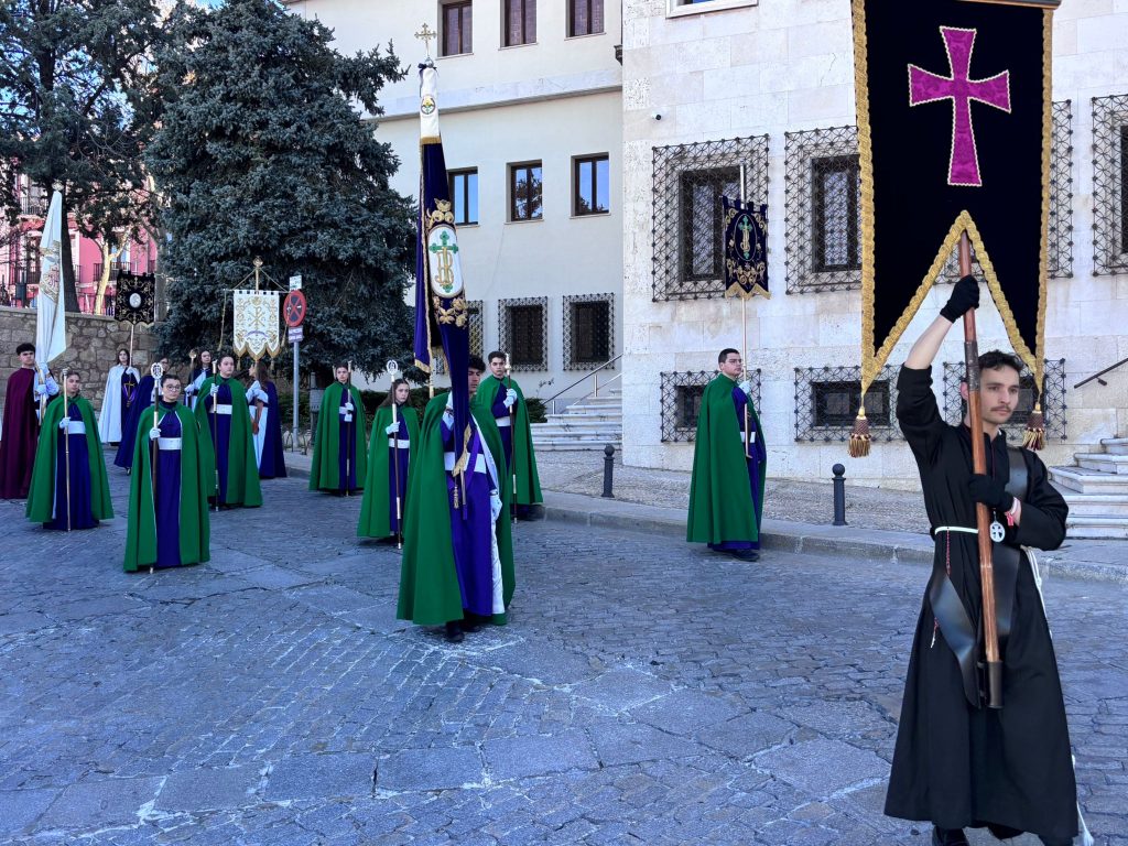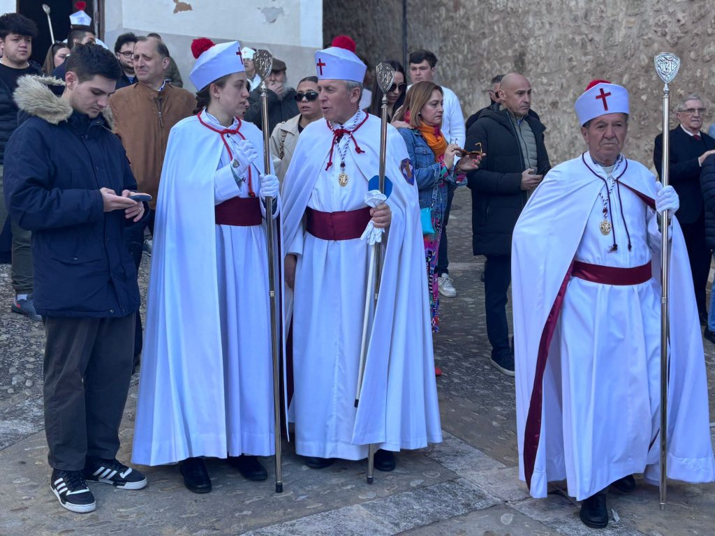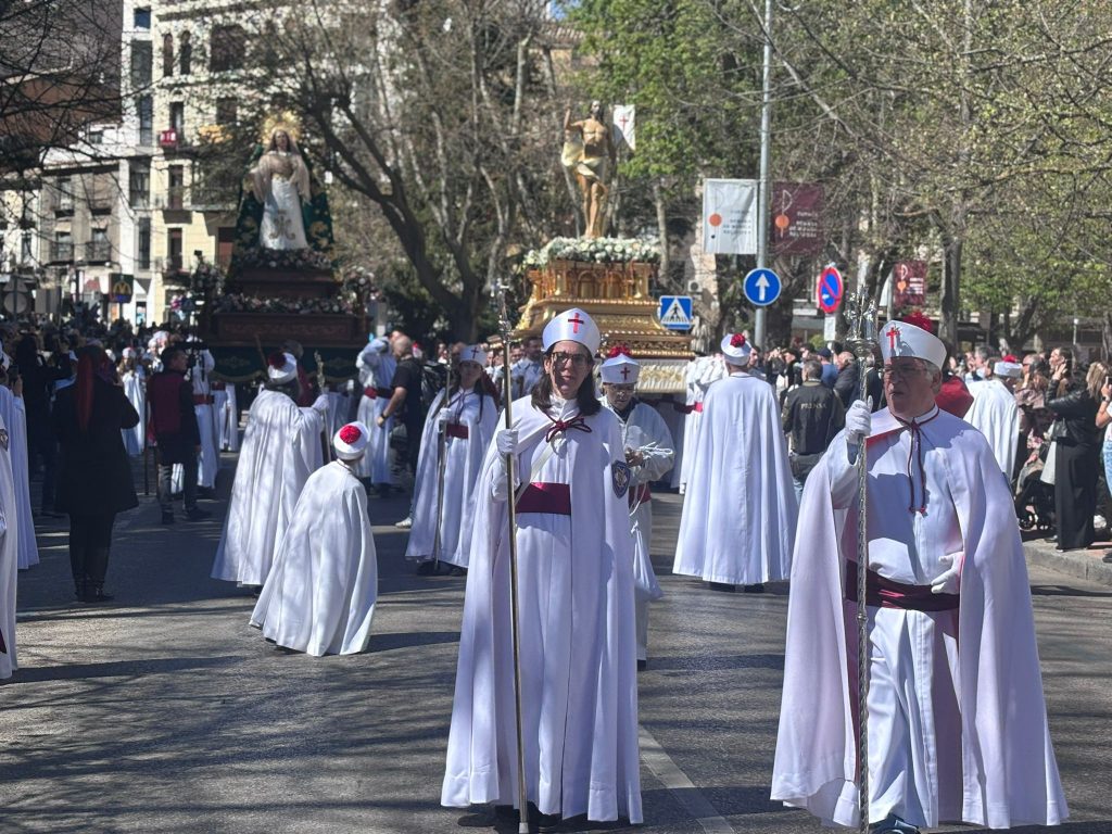 Las Sagradas Imágenes eligen caminos distintos. El Resucitado avanza por calles amplias para empaparse de la luz y el aire que echaba en falta en el sepulcro. Sigue la estela de color que forman los representantes de las hermandades de Cuenca, reunidas por este gran acontecimiento.