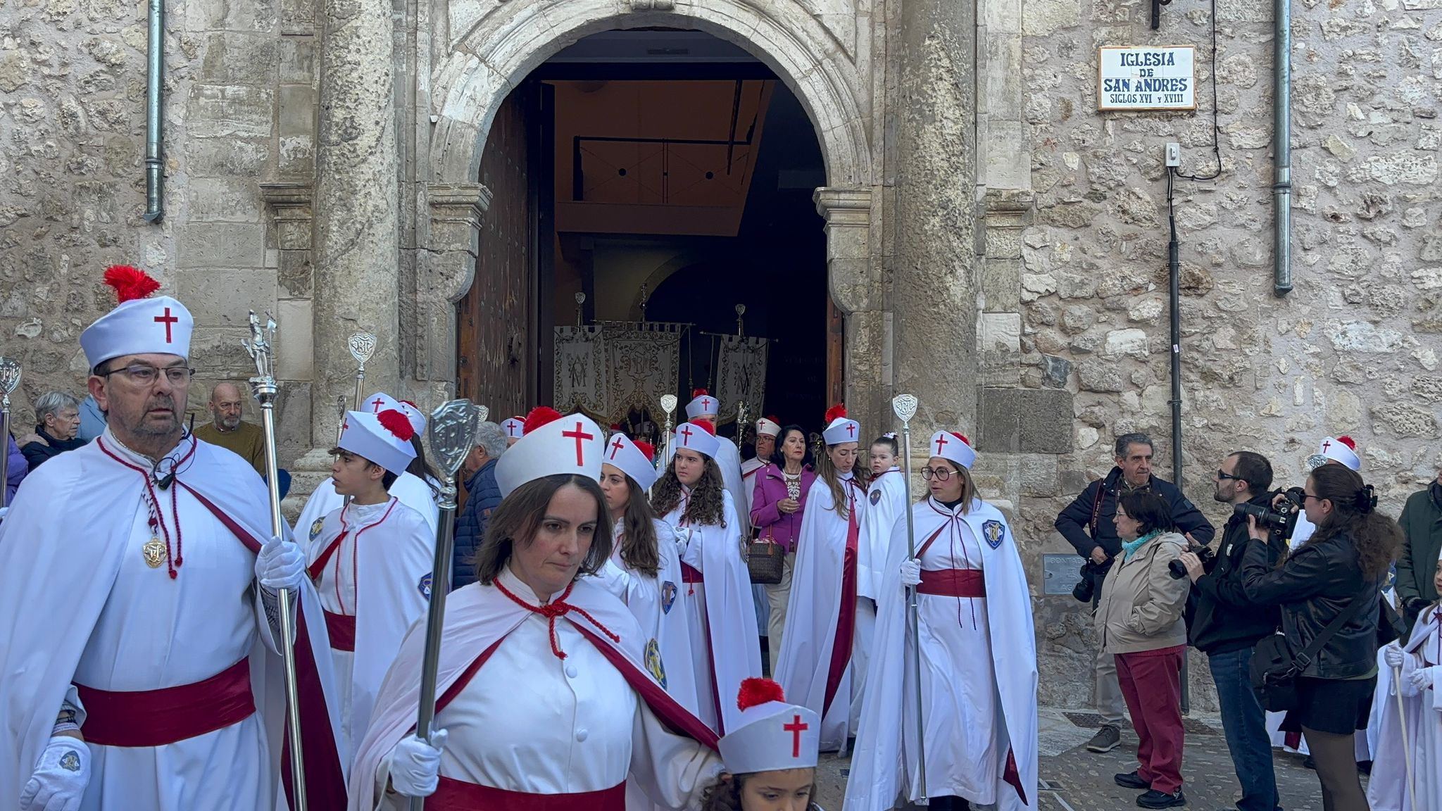 La procesión concluye en su lugar de origen, San Andrés. El primero en volver al templo es el Resucitado, al que vemos despedirse con la mano del pueblo de Cuenca, que ha estado con él en lo bueno y en lo malo.