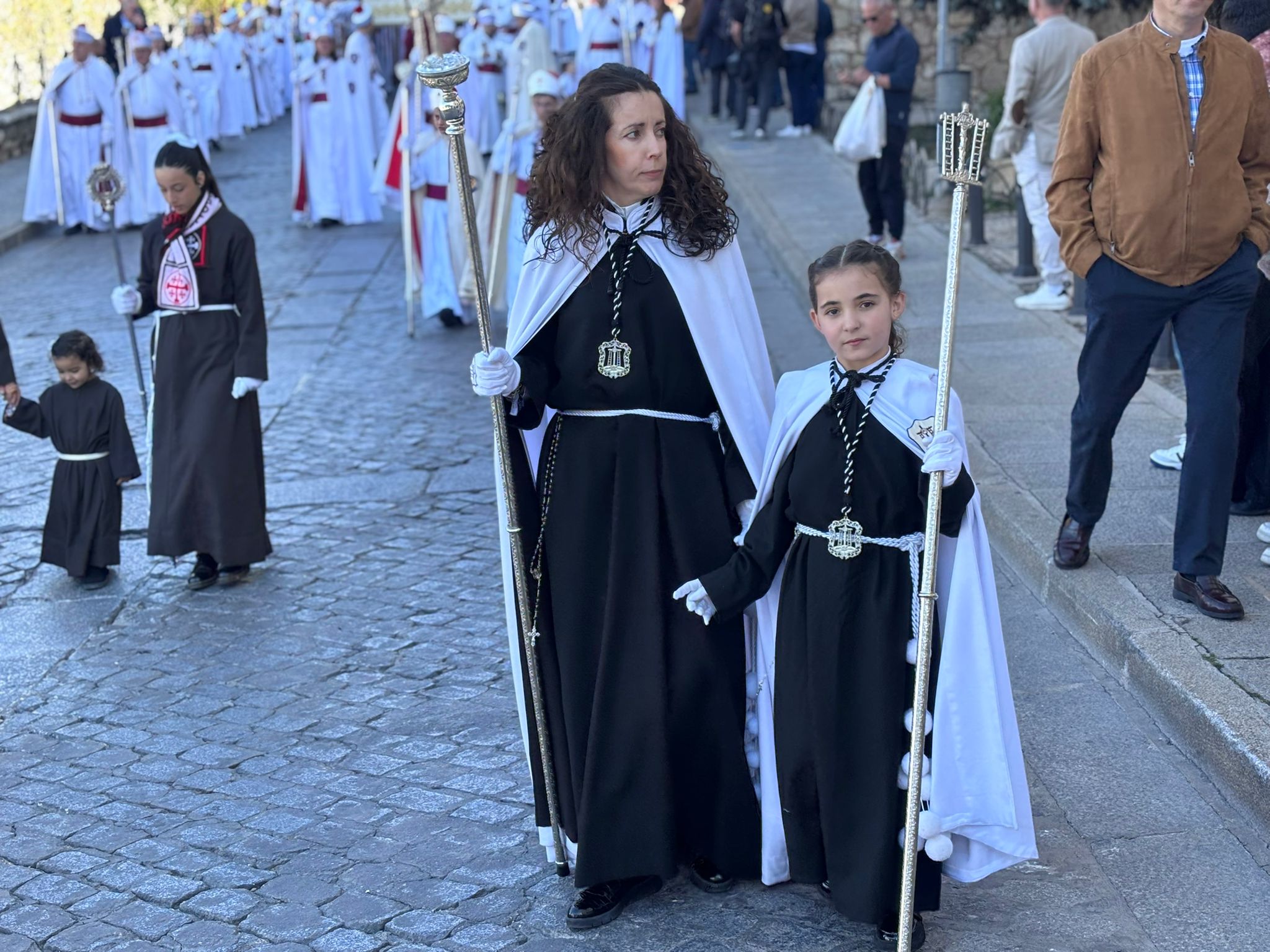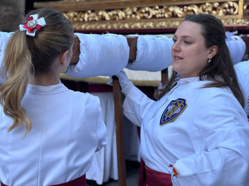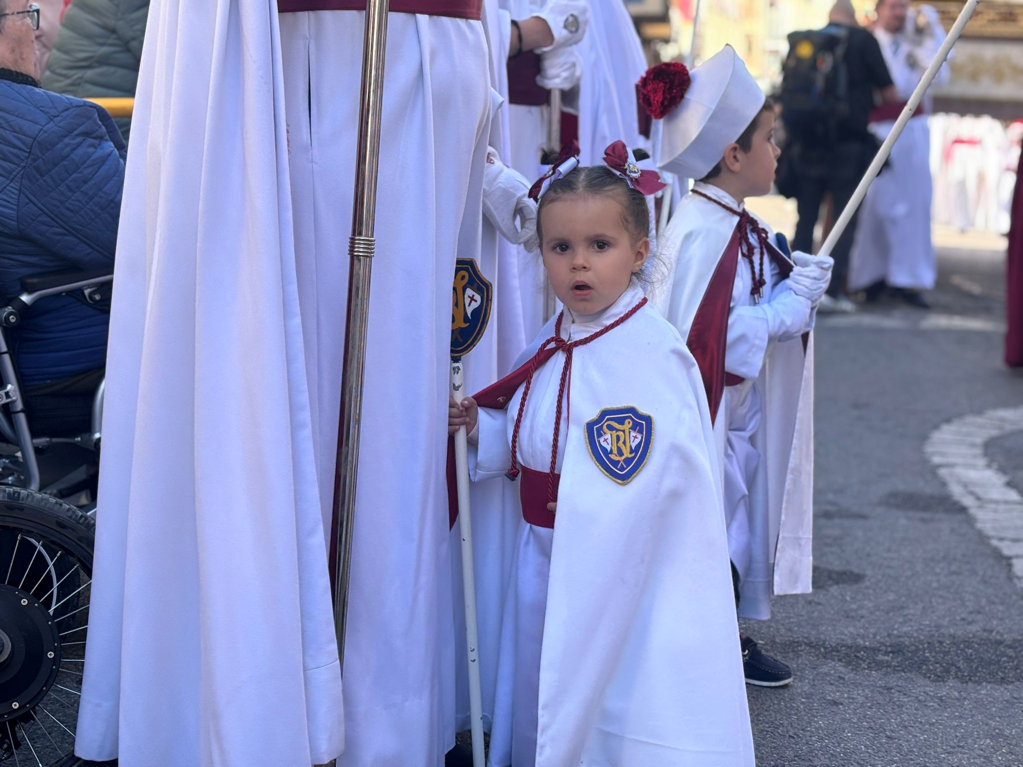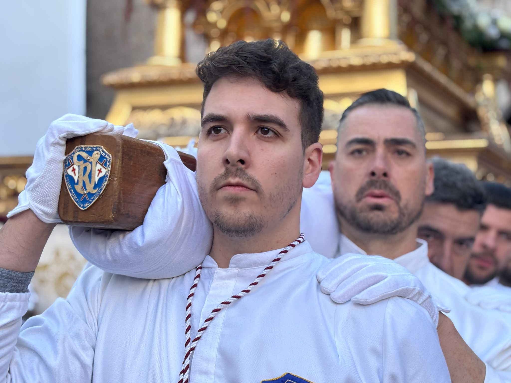 La procesión se reanuda con ambas imágenes unidas. Es un momento alegre, pero la felicidad no tiene por qué reñir con la memoria- Por eso los pasos recuerdan, con un crespón negro en las gualdrapas, a los nazarenos que hoy comparten esta dicha desde el cielo.