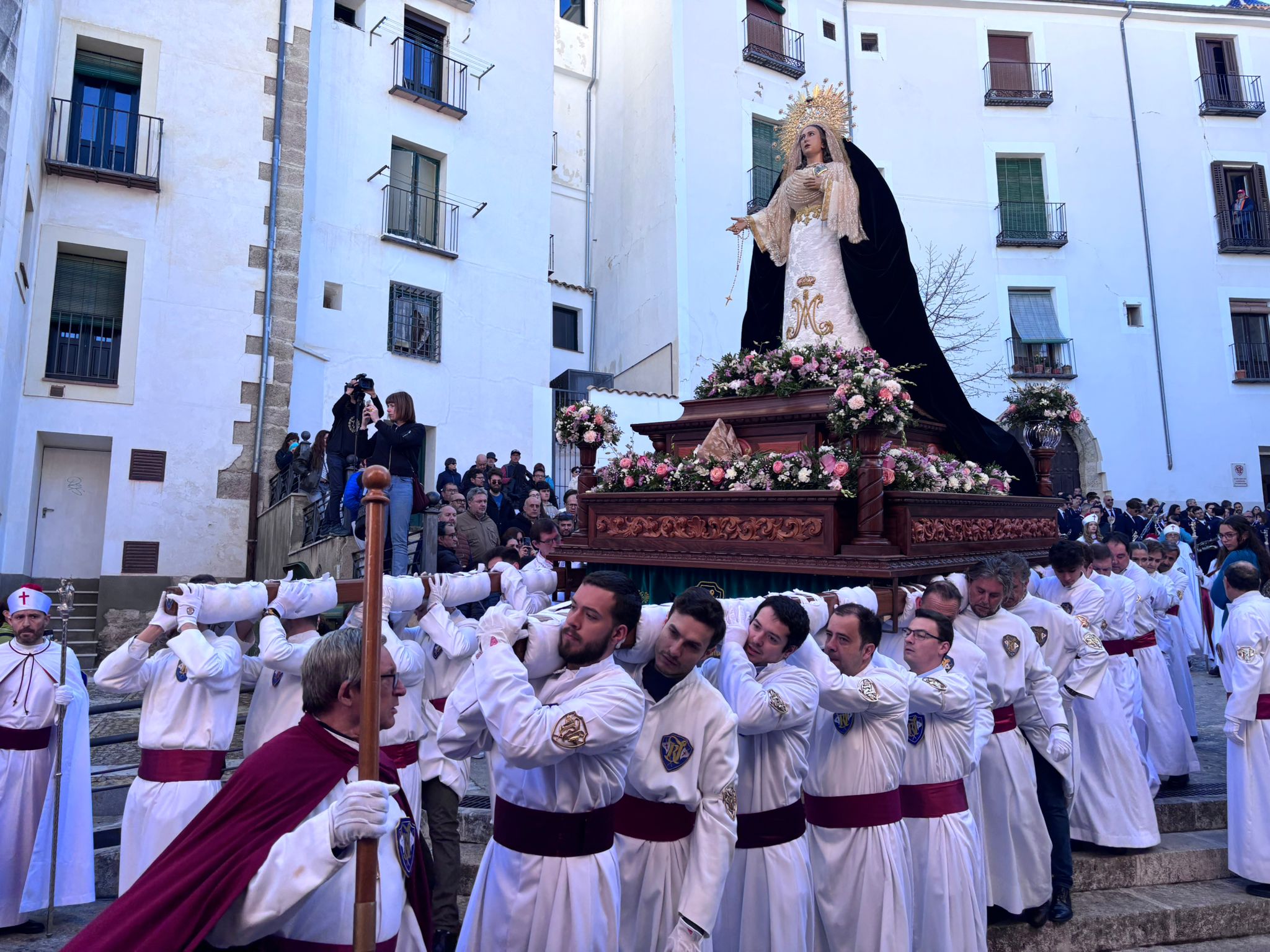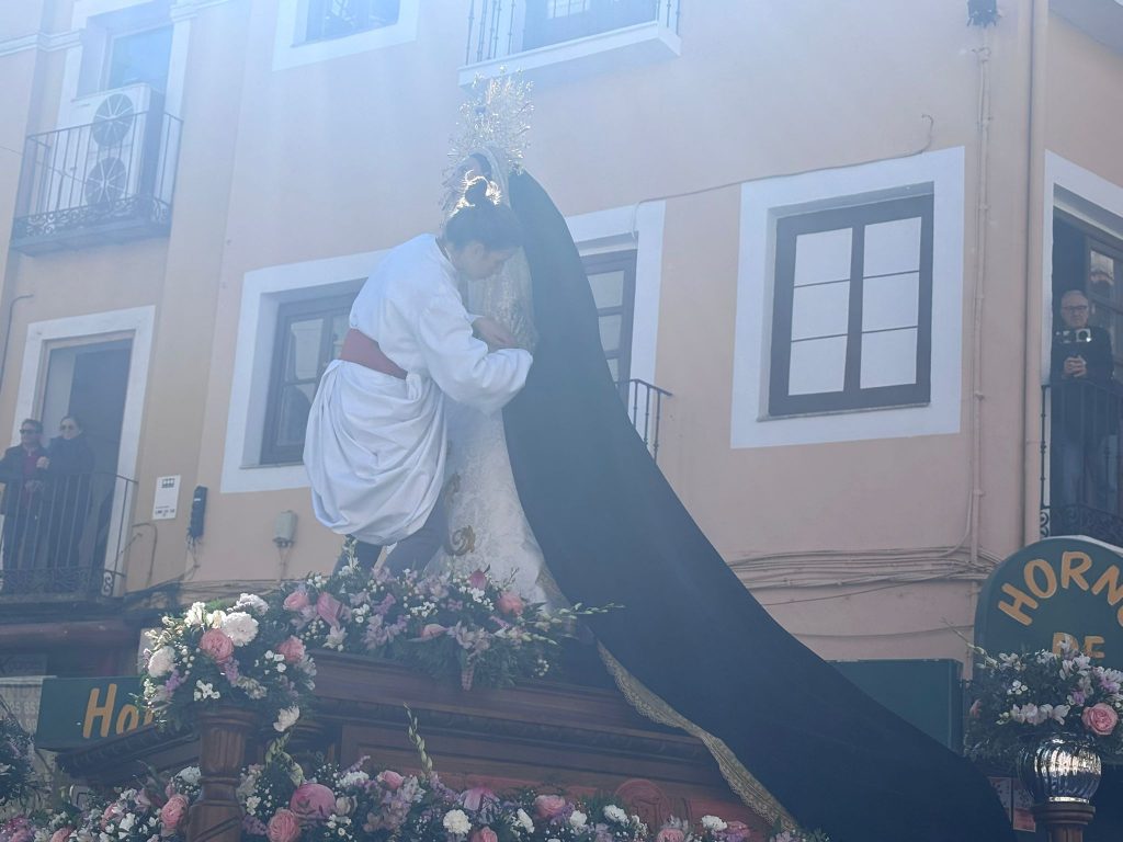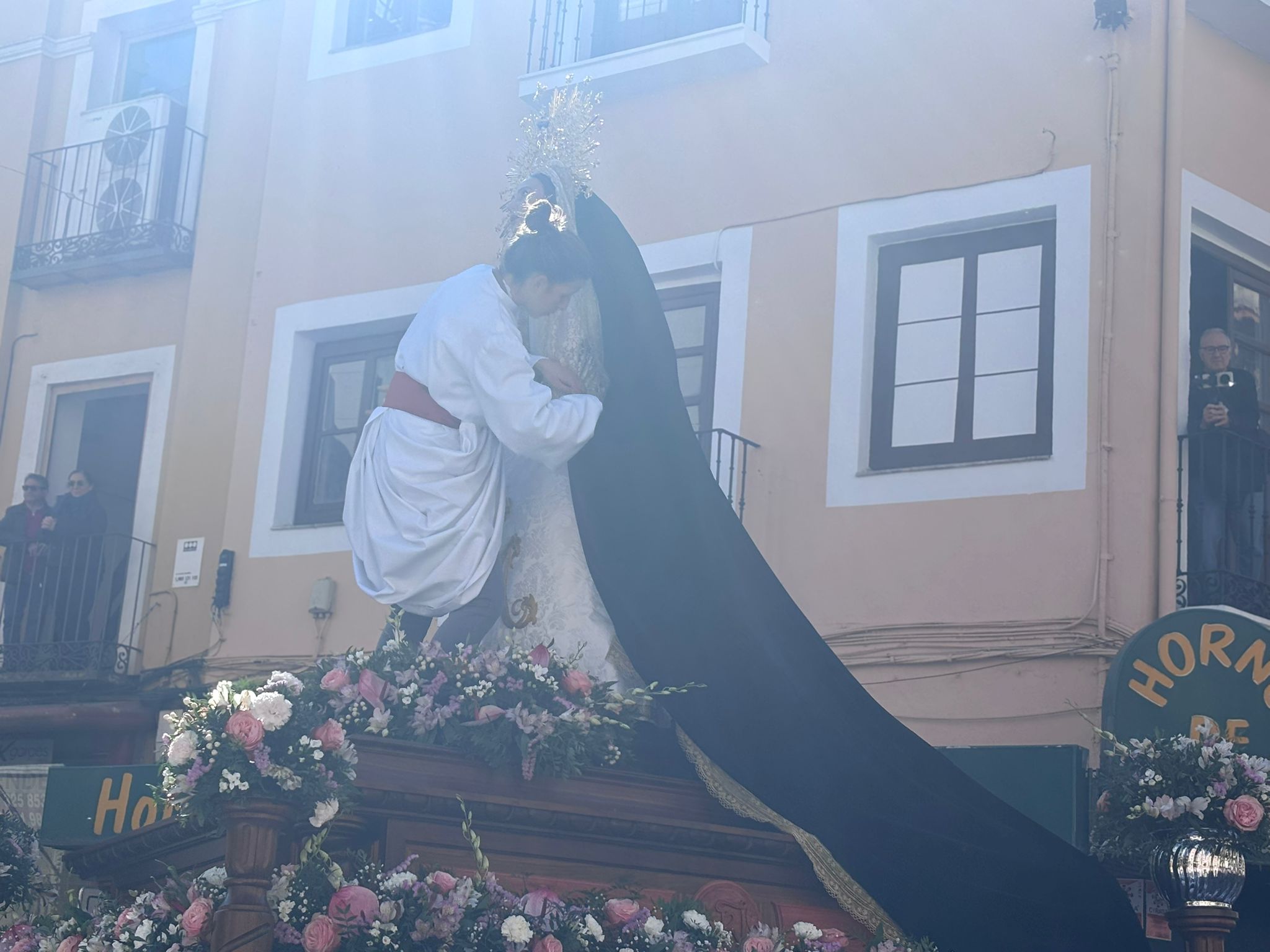 Después llega la despedida de la Virgen, que avanza primero en silencio, contenida, hasta que suena la marcha de Infantes y baila para los conquenses como despedida. La felicidad de una Madre, la felicidad más merecida, pone fin a esta Semana Santa que recordaremos siempre por sus cielos azules.