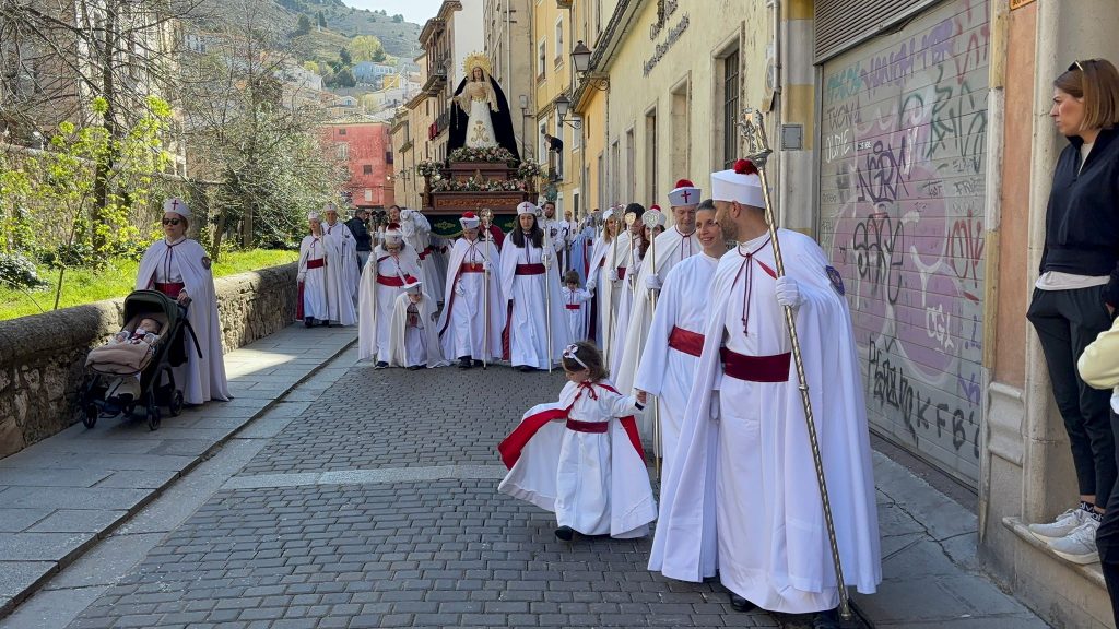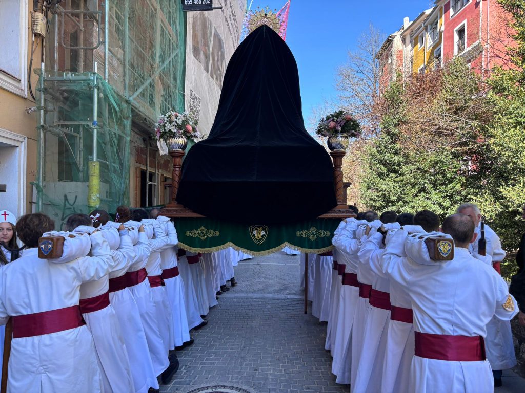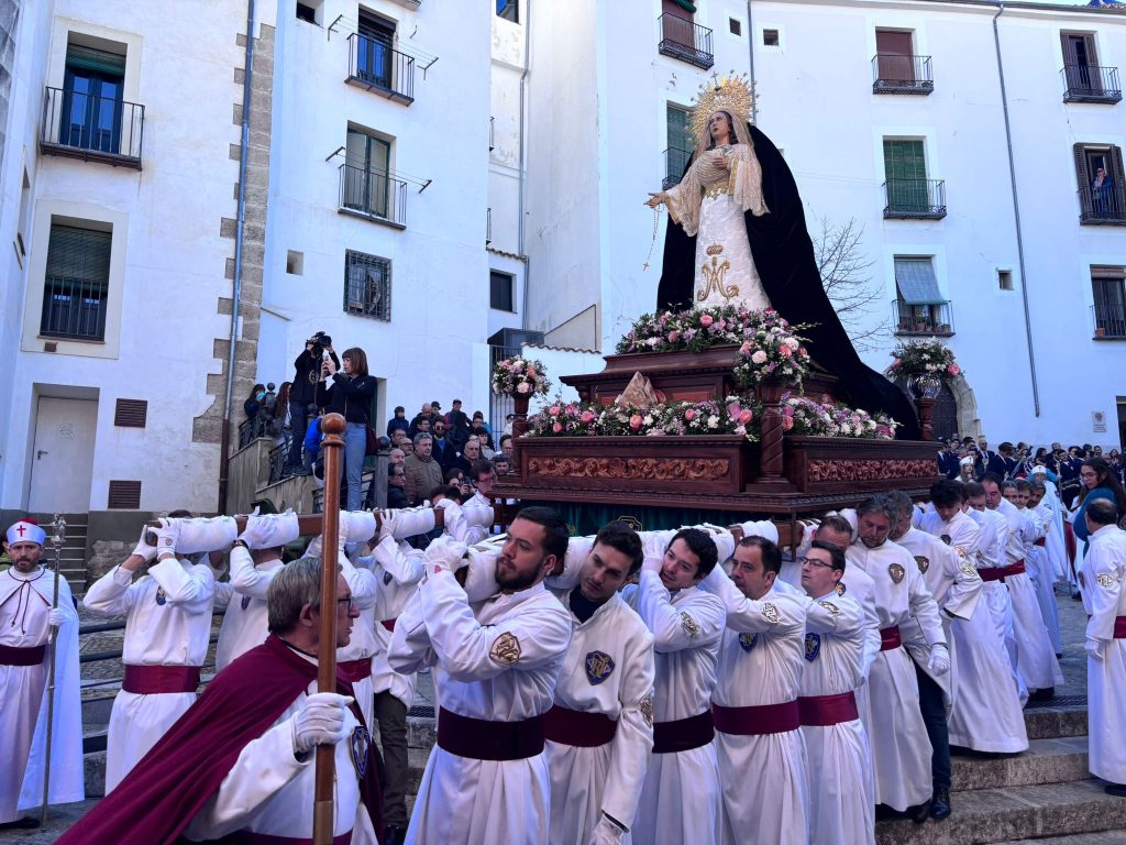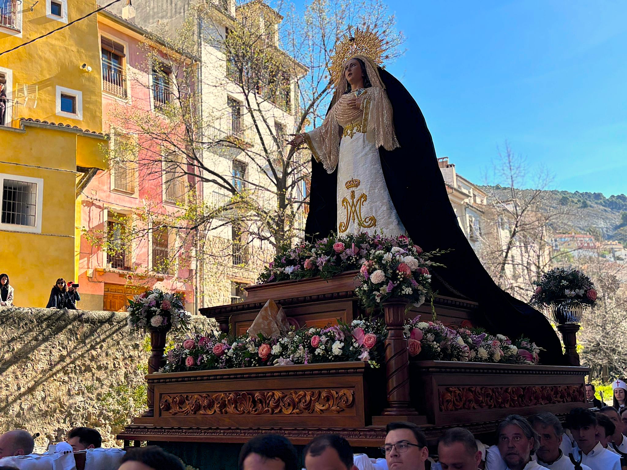 Después llega la despedida de la Virgen, que avanza primero en silencio, contenida, hasta que suena la marcha de Infantes y baila para los conquenses como despedida. La felicidad de una Madre, la felicidad más merecida, pone fin a esta Semana Santa que recordaremos siempre por sus cielos azules.