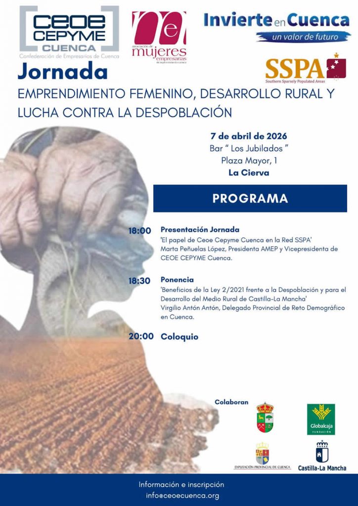 La jornada está organiza por la Asociación de Mujeres Empresarias de la provincia y CEOE CEPYME Cuenca con la implicación de los proyectos Invierte en Cuenca y la Red SSPA, contando además con la colaboración de la Junta de Comunidades de Castilla-La Mancha, la Diputación Provincial de Cuenca, la Fundación Globalcaja y el Ayuntamiento de La Cierva.