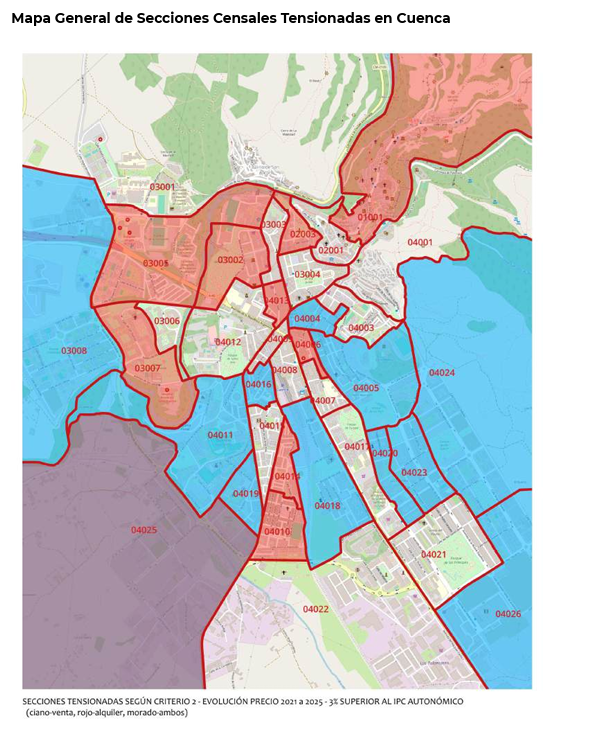 En este caso, esta situación sí se cumple en más de la mitad de la ciudad de Cuenca, particularmente en todo el Distrito 4 y con zonas especialmente disparadas como Las Quinientas, Reyes Católicos y La Hípica.