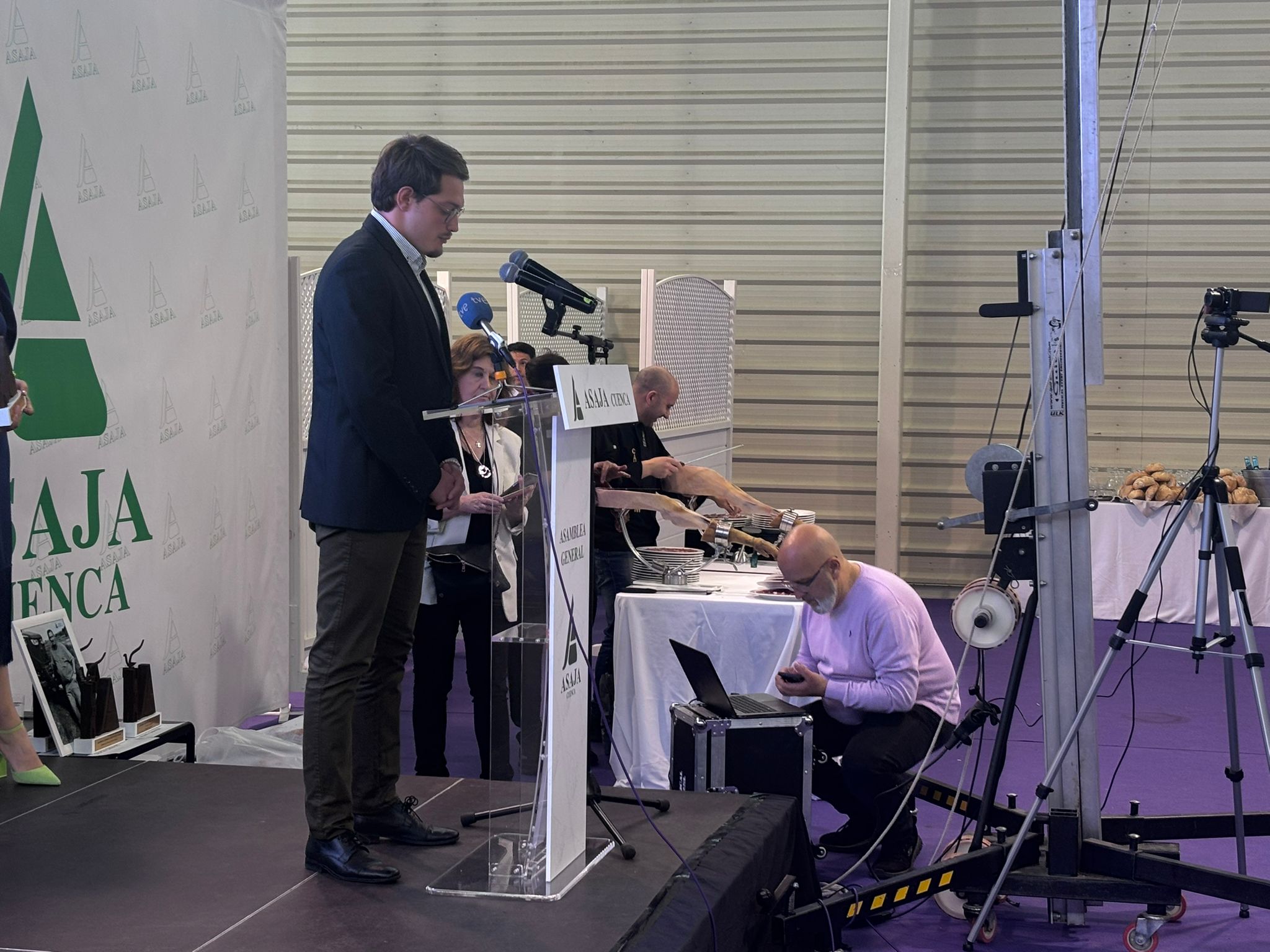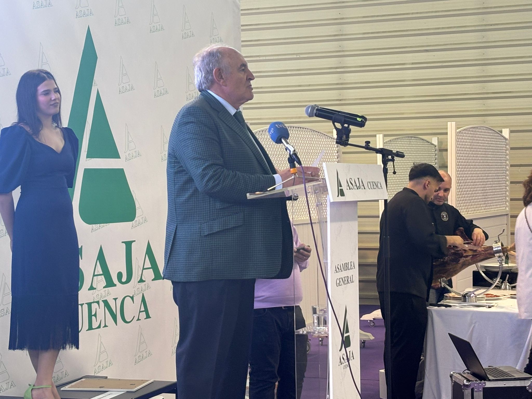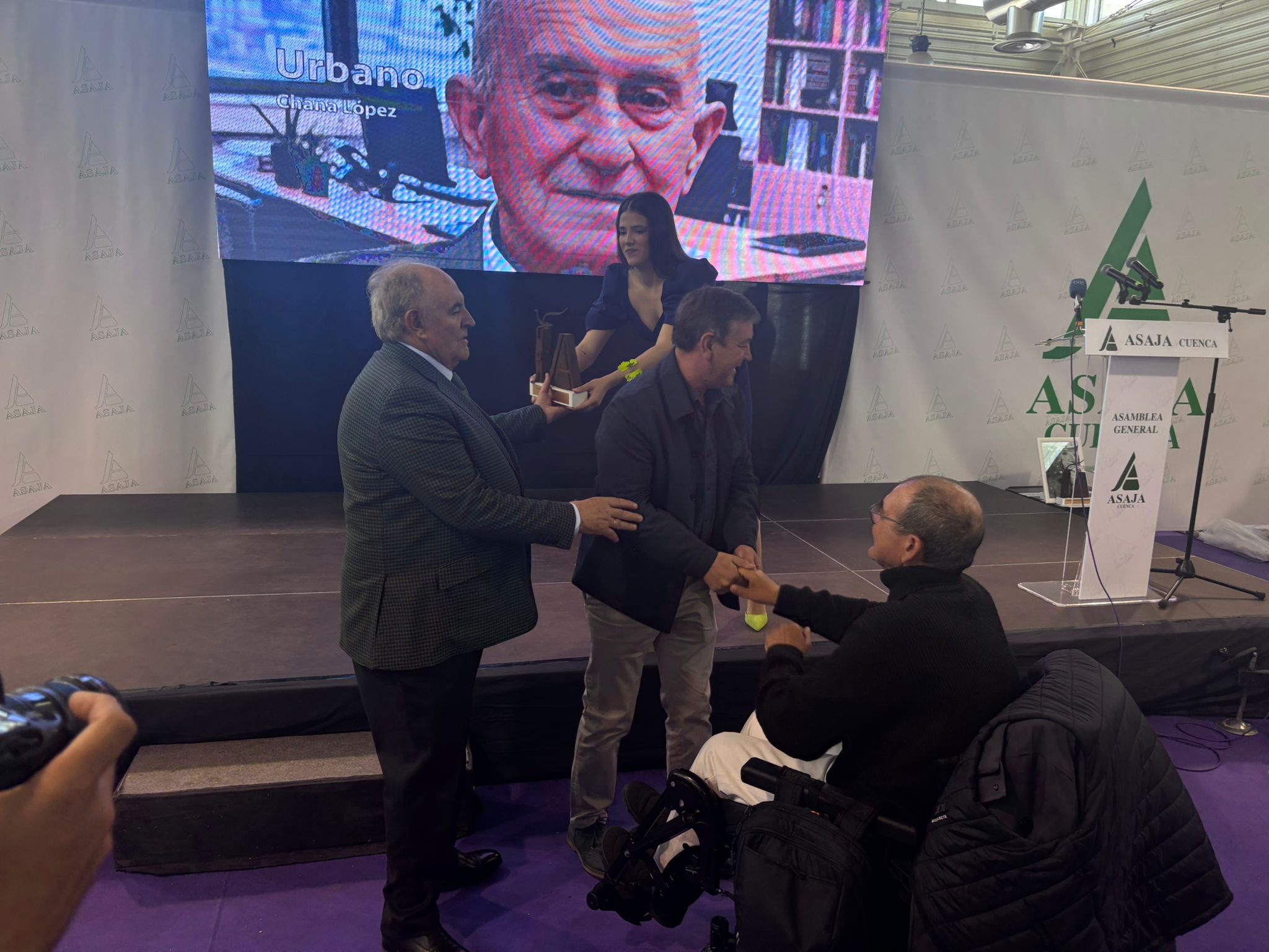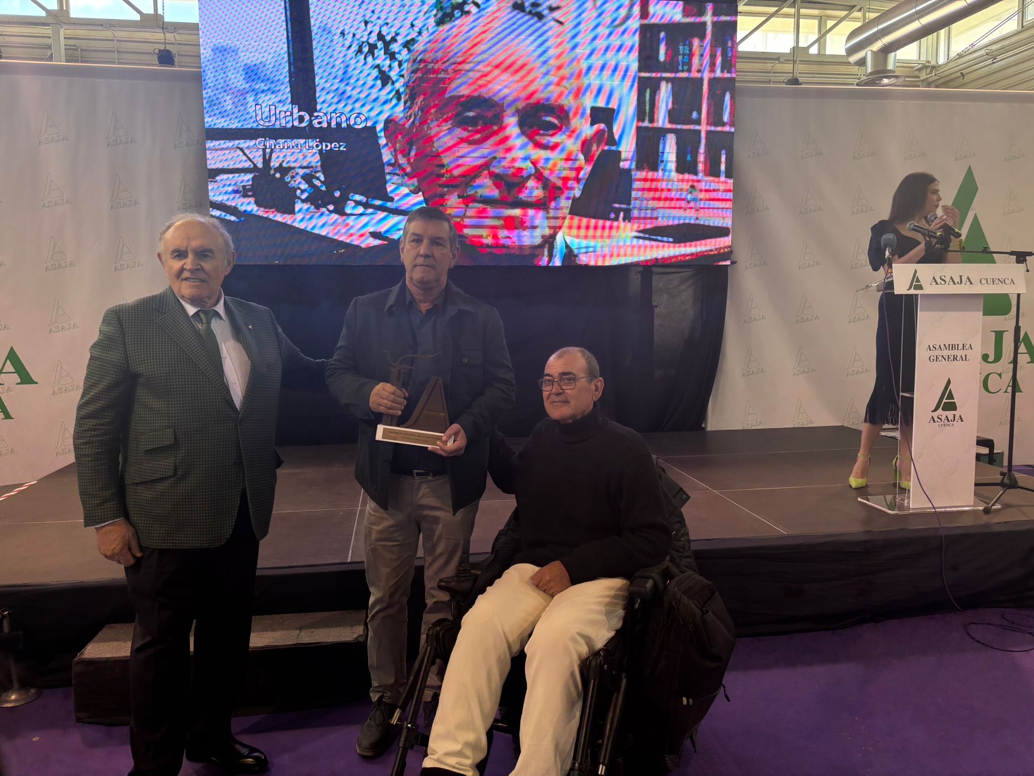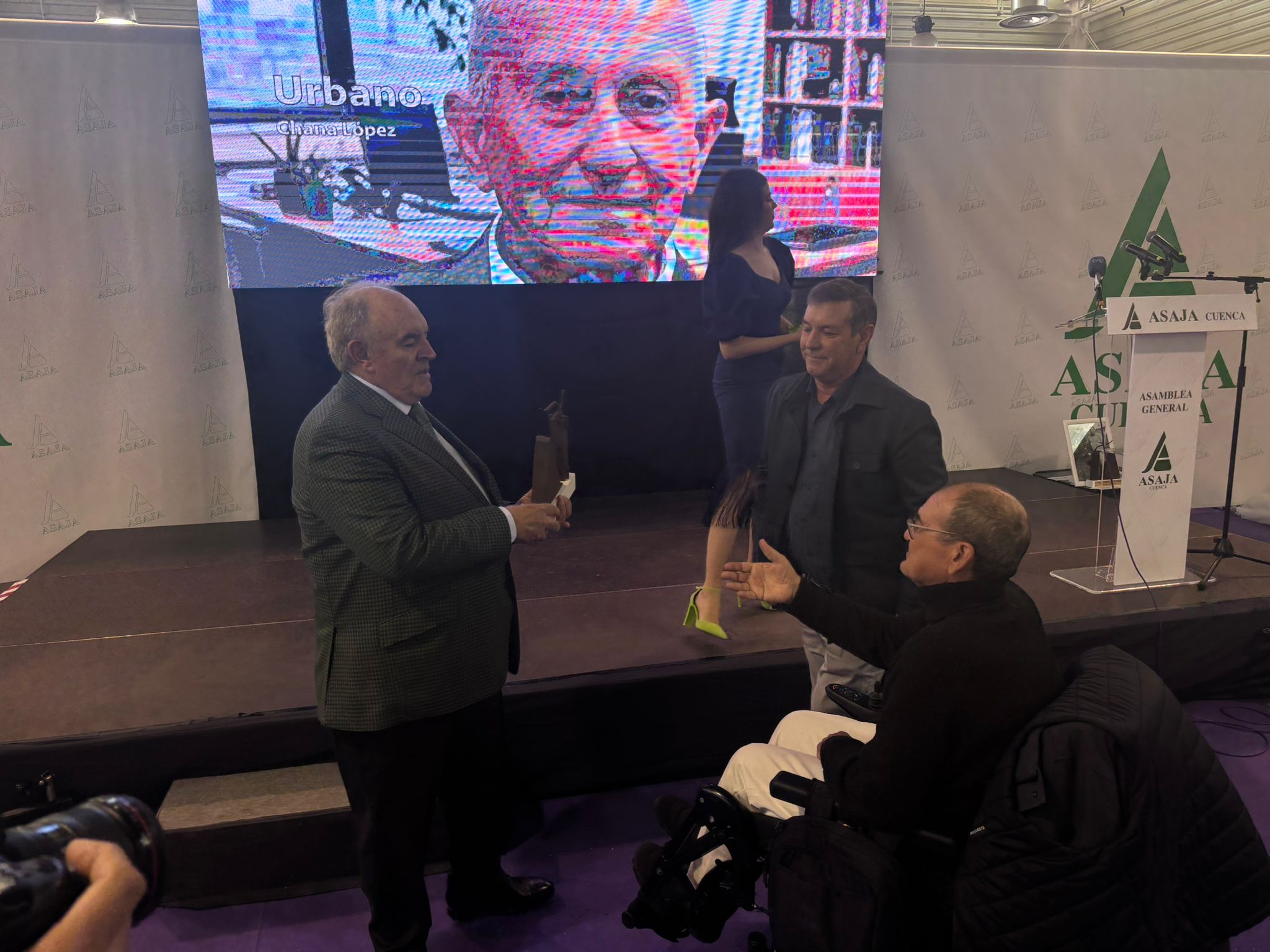 El recinto ferial La Hípica ha acogido esta asamblea, que ha tenido como momento más emotivo la entrega de los reconocimientos Asaja, concedidos al periodista Carlos de la Morena, el joven ganadero de San Clemente Cristian Cuélliga, el agricultor de Buenache de la Sierra y miembro de la ejecutiva de Asaja Vicente Caja, la exviceconsejera de Política Agraria Común Gracia Canales y dos reconocimientos, a título póstumo, para el cerealista Urbano Chana, fundador de Chanagar y para Fernando Guijarro, agricultor de Altarejos que también formó parte de la dirección de la organización agraria.