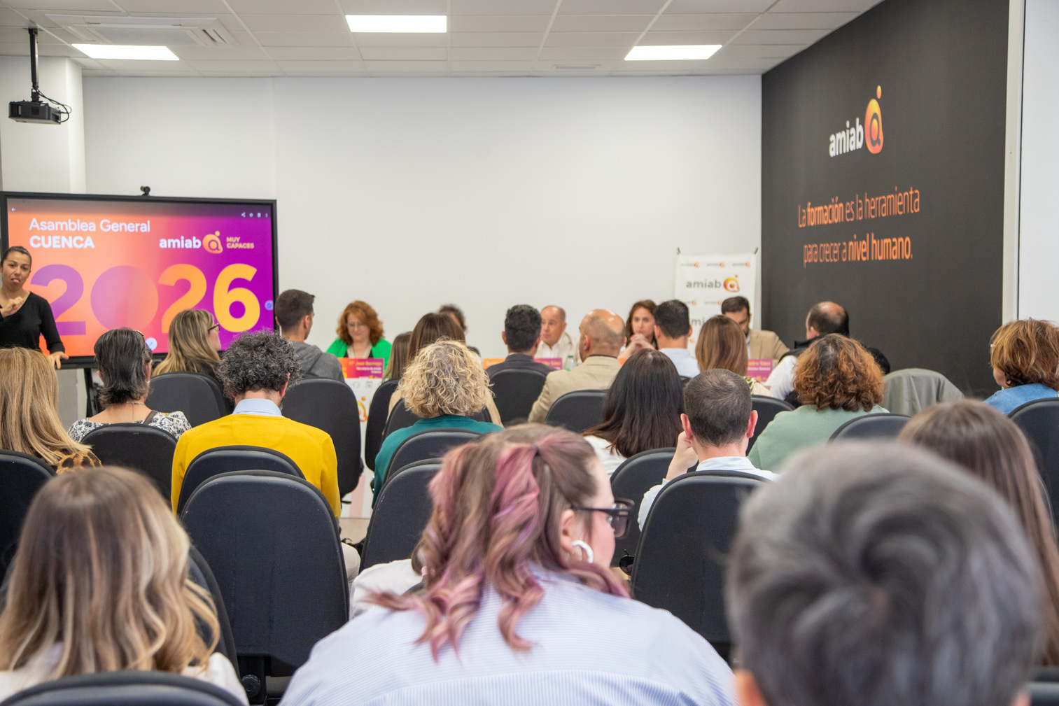 Paula Urango, delegada de amiab Cuenca, y Marta Montero, subdelegada, así como María José Bermejo, secretaria, han participado de la Asamblea, siendo Urango la que ha dado las claves de lo conseguido en 2025, así como el director general de amiab, Pedro Sáez.