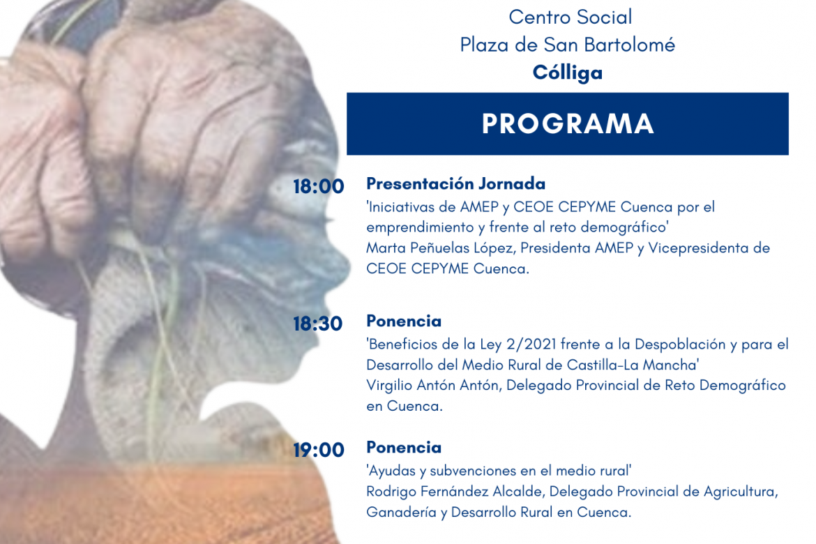 Las charlas comenzarán a las 18 horas con la presentación de la jornada por la vicepresidenta de la Confederación de Empresarios de Cuenca y presidenta de AMEP, Marta Peñuelas que hablará sobre ‘Las iniciativas de AMEP y CEOE CEPYME Cuenca por el emprendimiento y frente al reto demográfico’