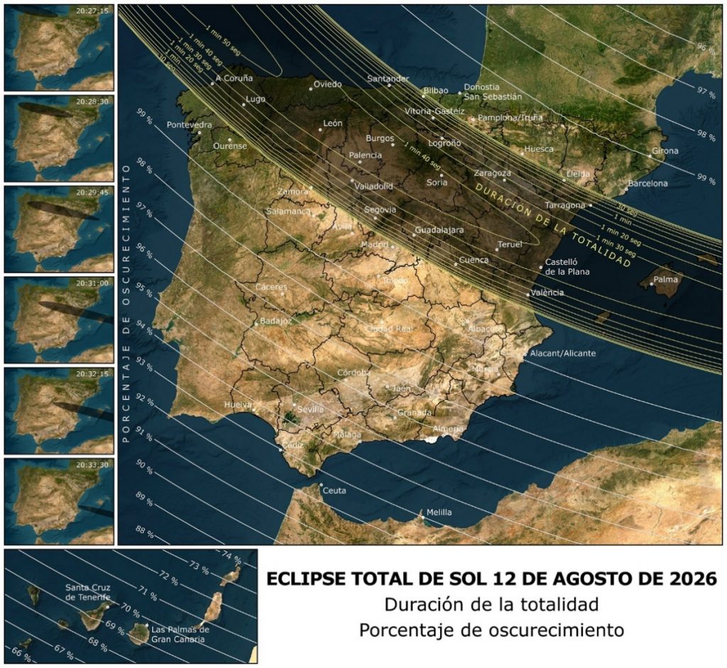 El próximo 12 de agosto tendrá lugar el primero de los tres eclipses solares que se podrán ver en la península, que será total en gran parte de las provincias de Cuenca y Guadalajara, y el próximo 28, 29 y 30 de abril podremos hacer un ensayo para comprobar si lo veremos desde el lugar elegido.