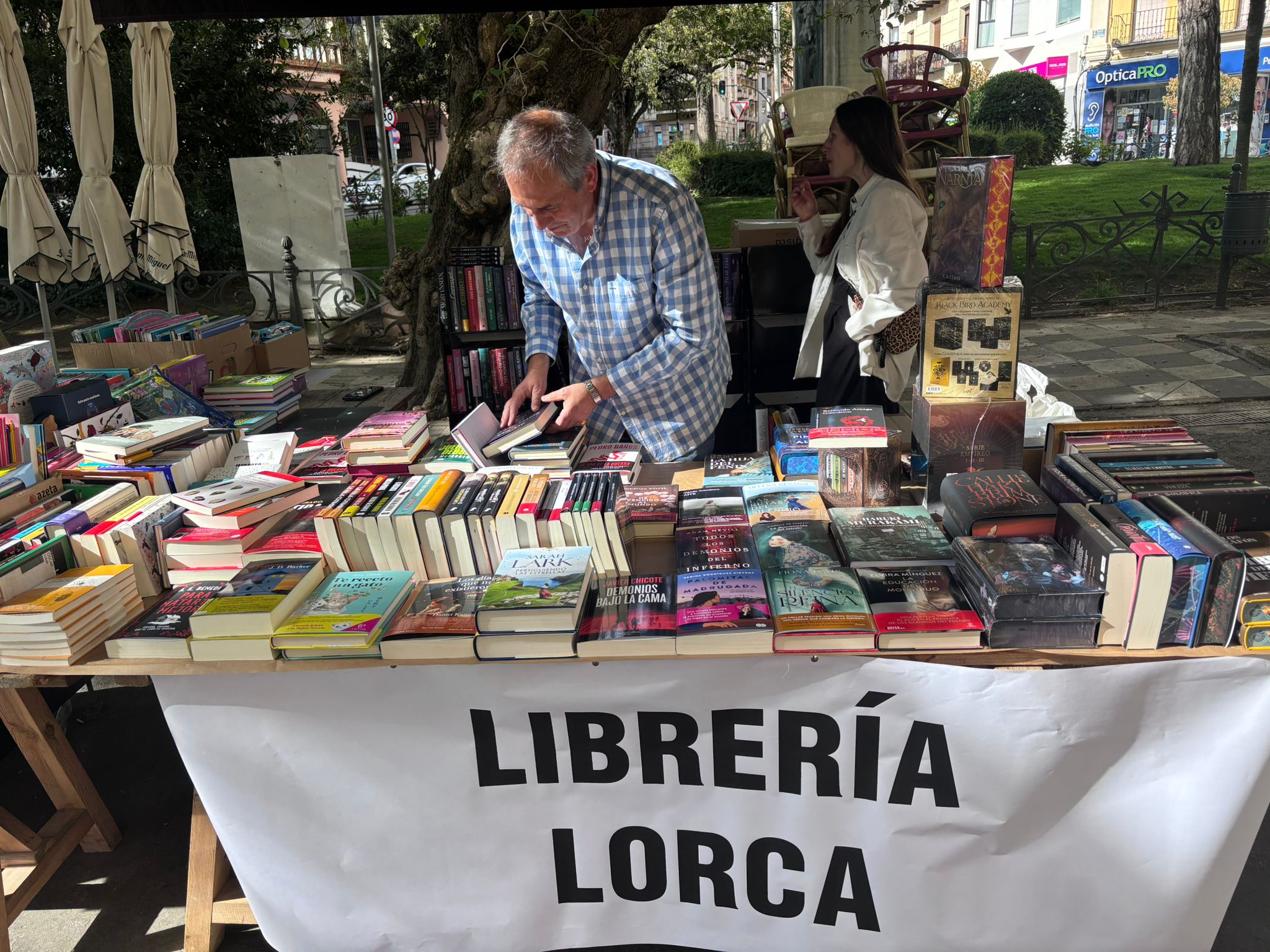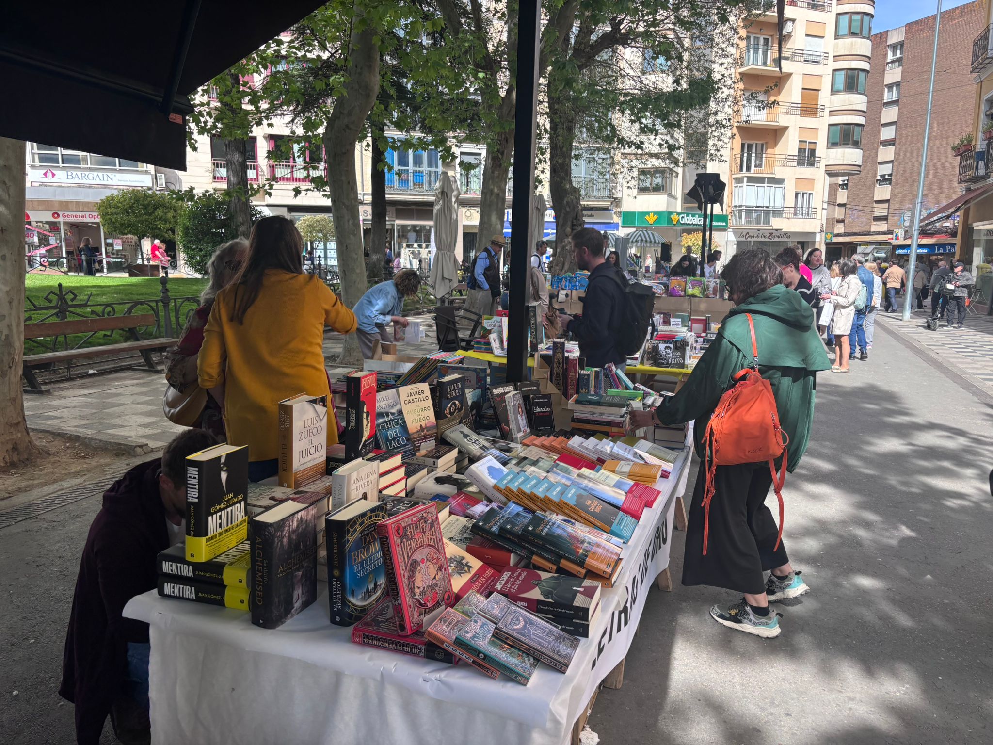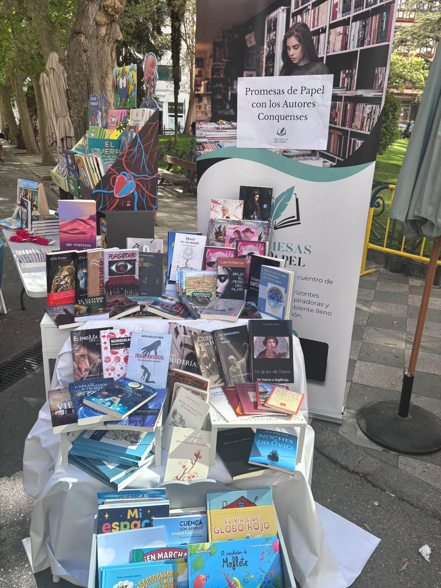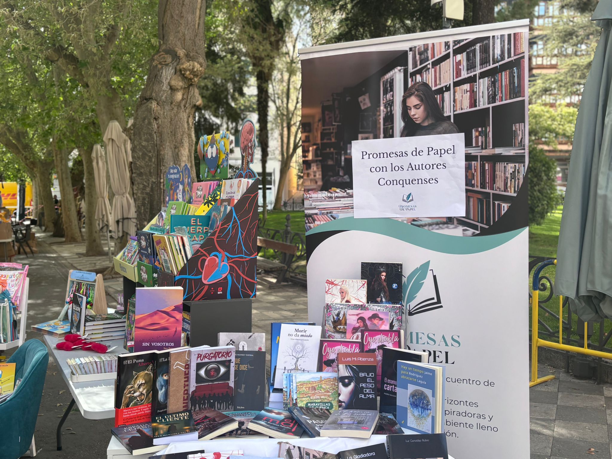 El buen tiempo ha acompañado este 23 de abril a los profesionales de la lectura y a los conquenses que, desde primera hora de la mañana, han empezado a hacer sus compras. En casi todos los puestos, junto a los últimos lanzamientos, había también un hueco para los escritores y escritoras de esta tierra, representados tambén a través de la Asociación de Autores Conquenses, que este año también ha contado con un espacio en la Plaza de la Hispanidad.