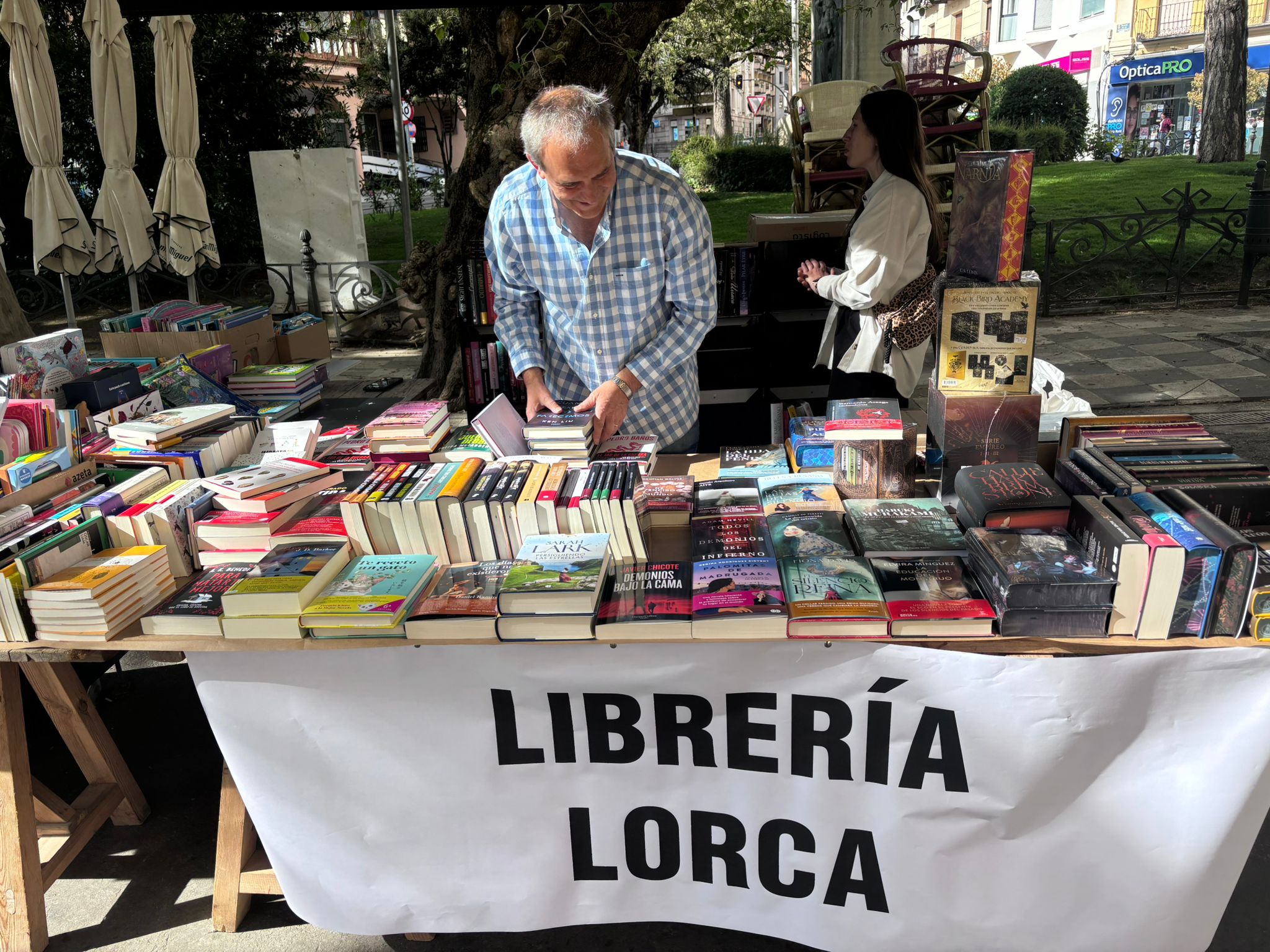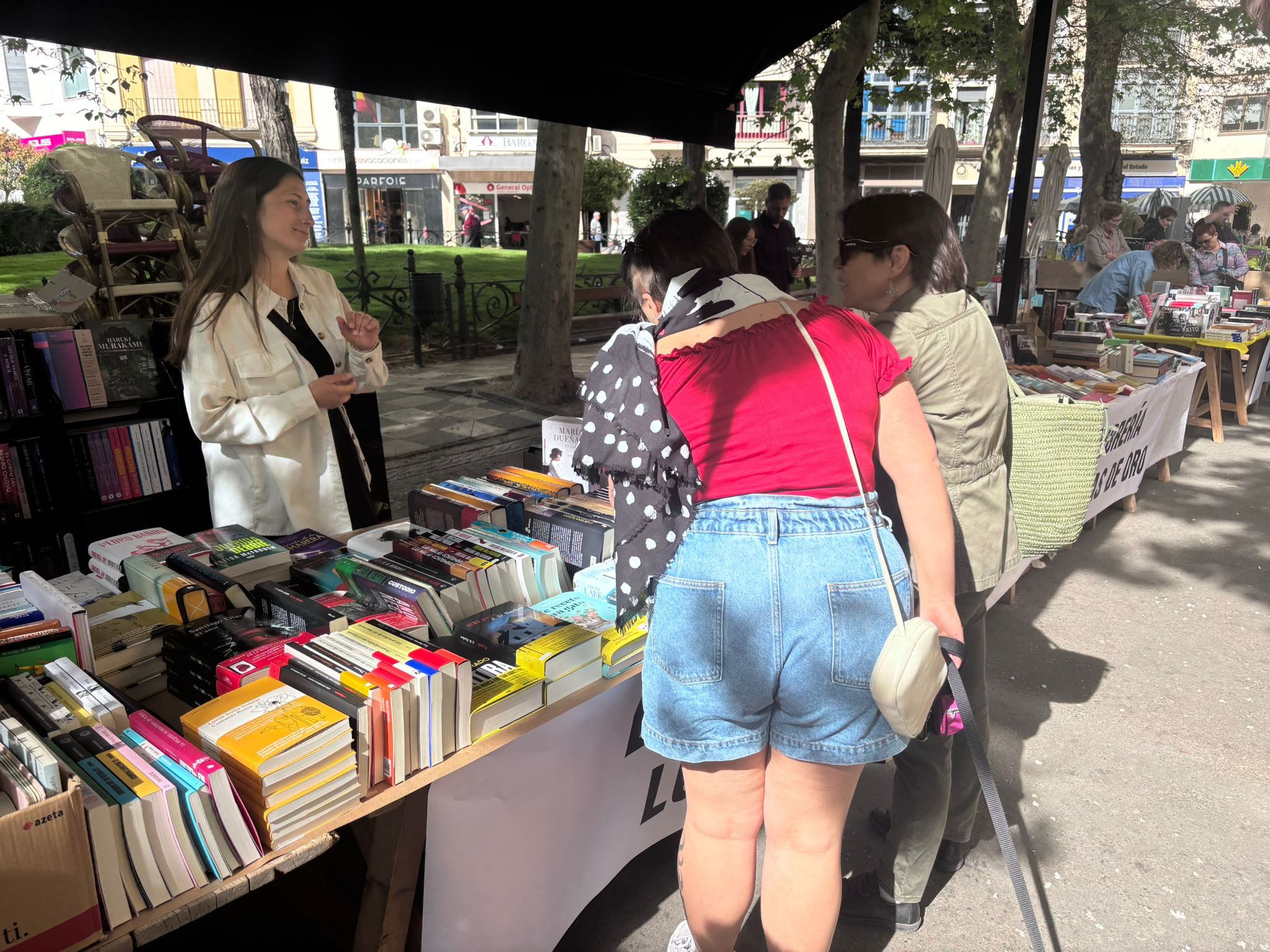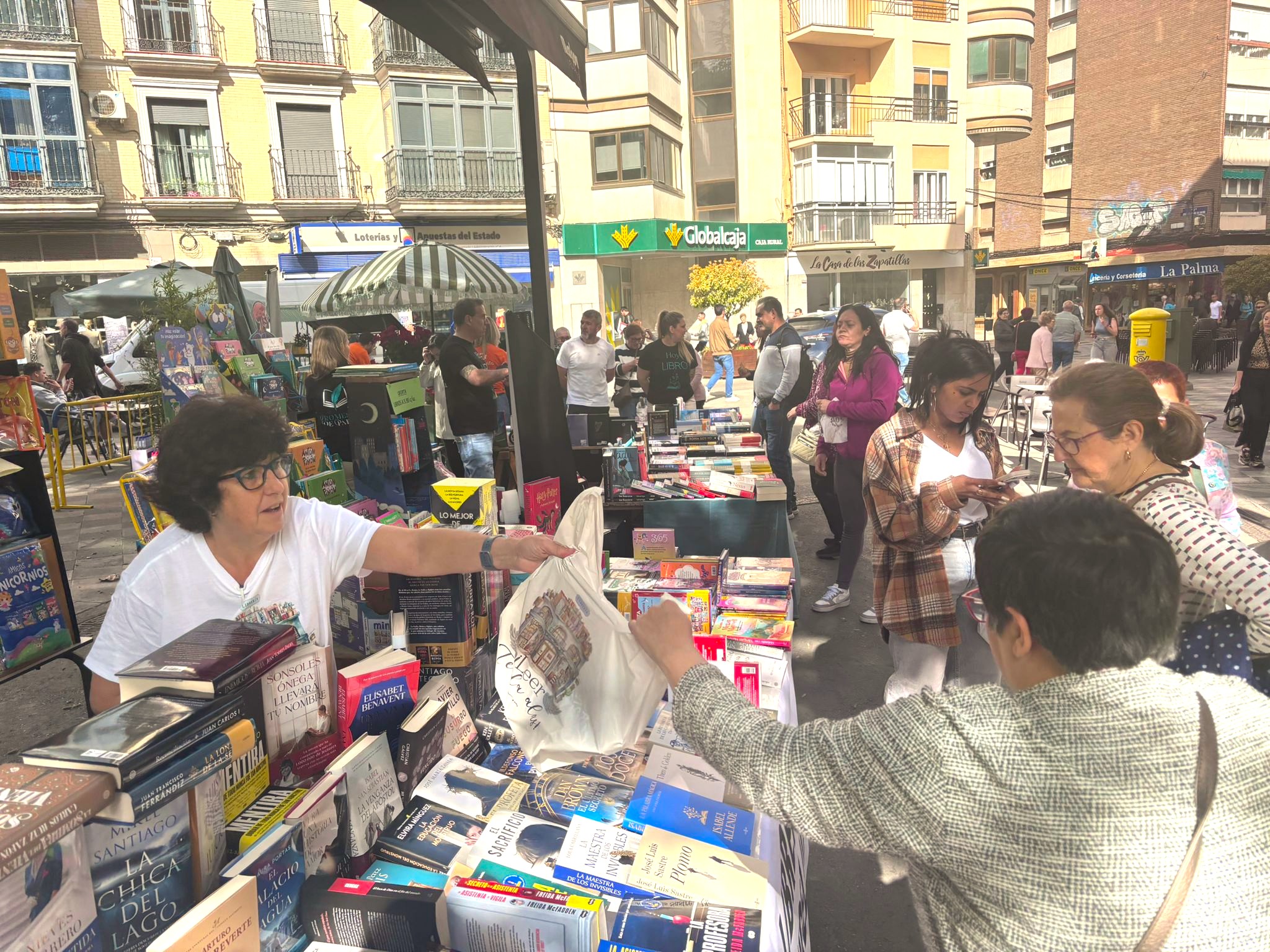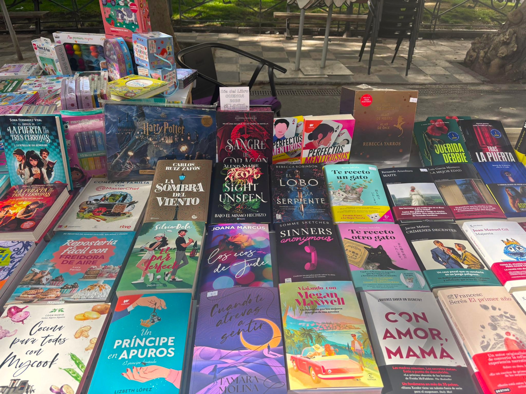 El buen tiempo ha acompañado este 23 de abril a los profesionales de la lectura y a los conquenses que, desde primera hora de la mañana, han empezado a hacer sus compras. En casi todos los puestos, junto a los últimos lanzamientos, había también un hueco para los escritores y escritoras de esta tierra, representados tambén a través de la Asociación de Autores Conquenses, que este año también ha contado con un espacio en la Plaza de la Hispanidad.
