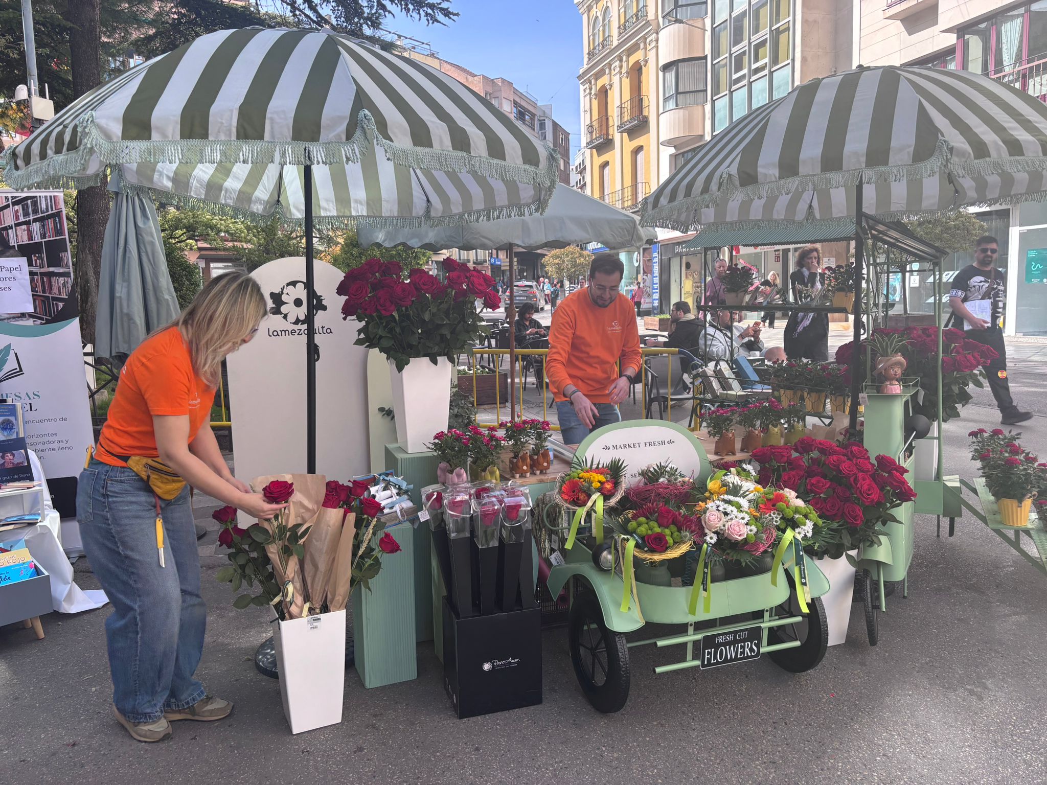 En total serían diez stands para el uso y disfrute de la lectura, los siete dedicados a la lectura, uno más para la compra de flores, además de tres más, donde tendrán cabida Viveros La Mezquita como floristería que acompaña a la venta de libros, la citada mesa de autores conquenses y otra que servirá de ludoteca para los más pequeños.